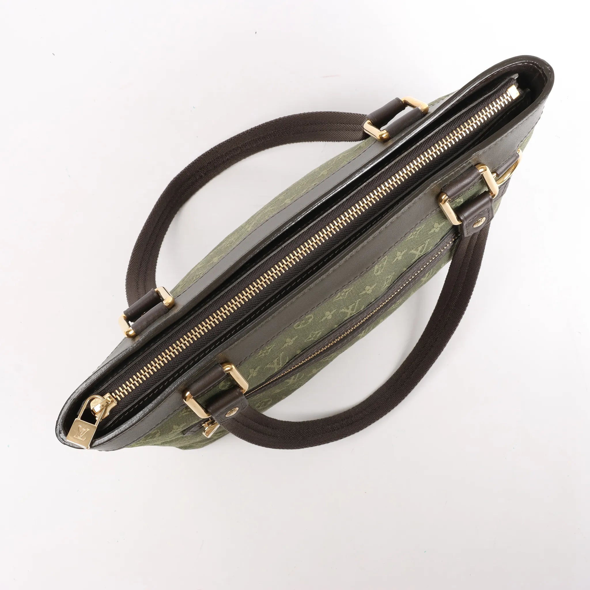 The Louis Vuitton Monogram Luceille PM Handbag M92682 in khaki is a stylish blend of casual and chic. Crafted from durable monogram mini lin canvas with leather trim, this compact tote features a front zip pocket and gold-tone accents for everyday elegance.