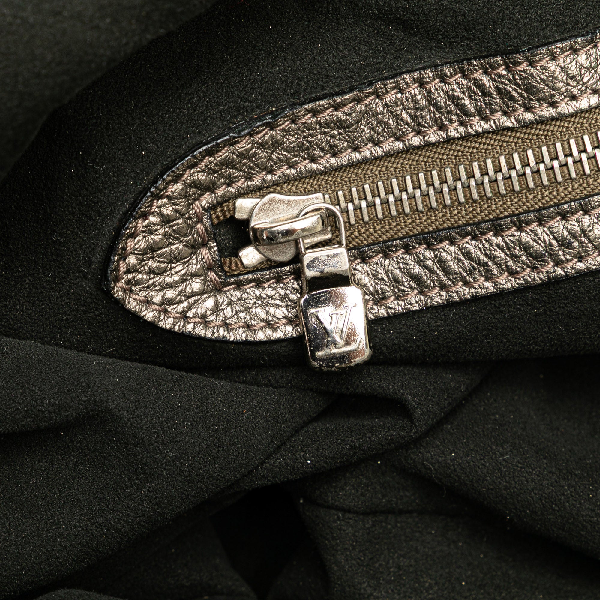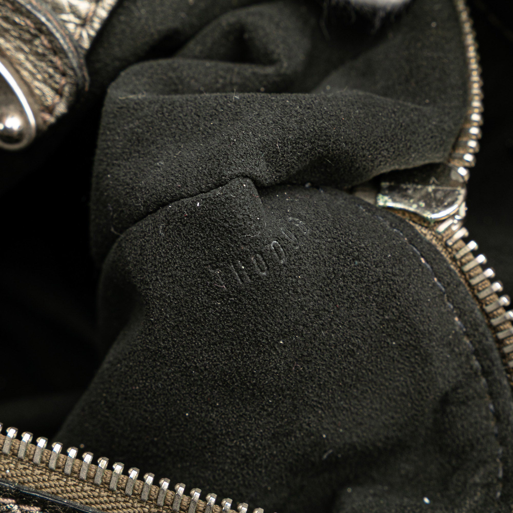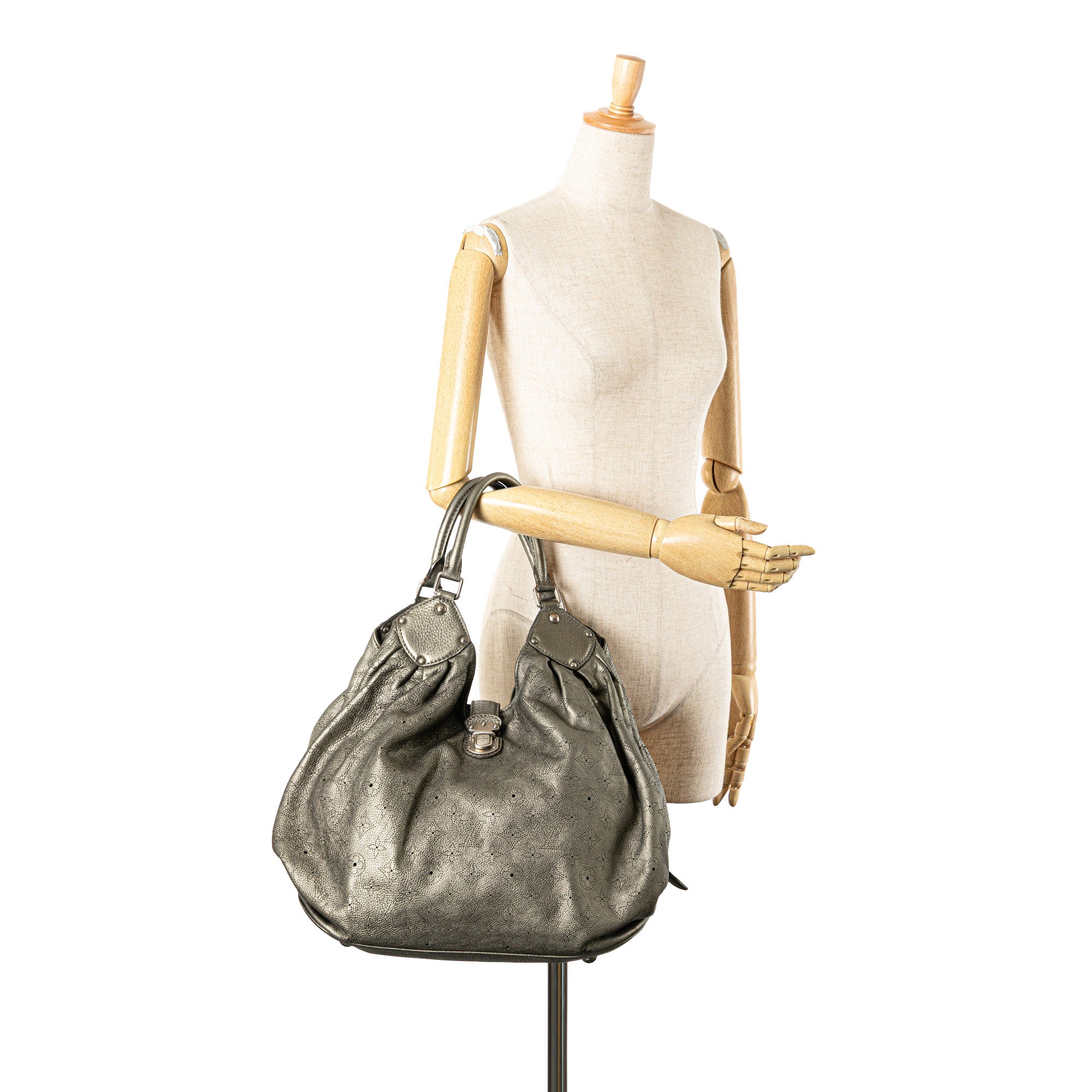 This hobo features a mahina leather body, rolled leather handles, an open top with a flat strap and push lock closure, and an interior zip pocket. Retail Price: 5250.00