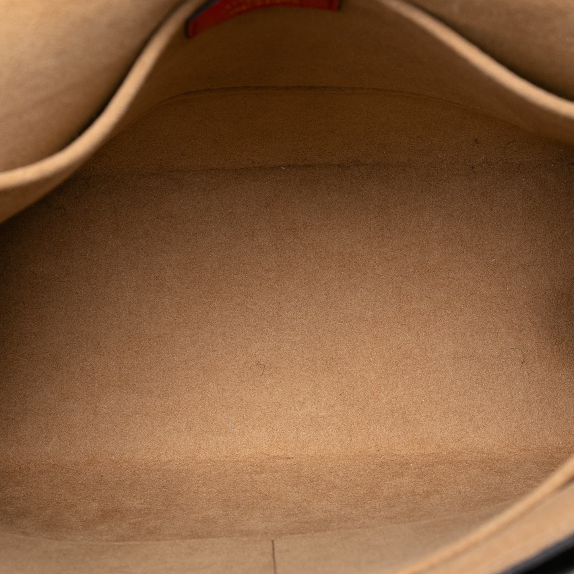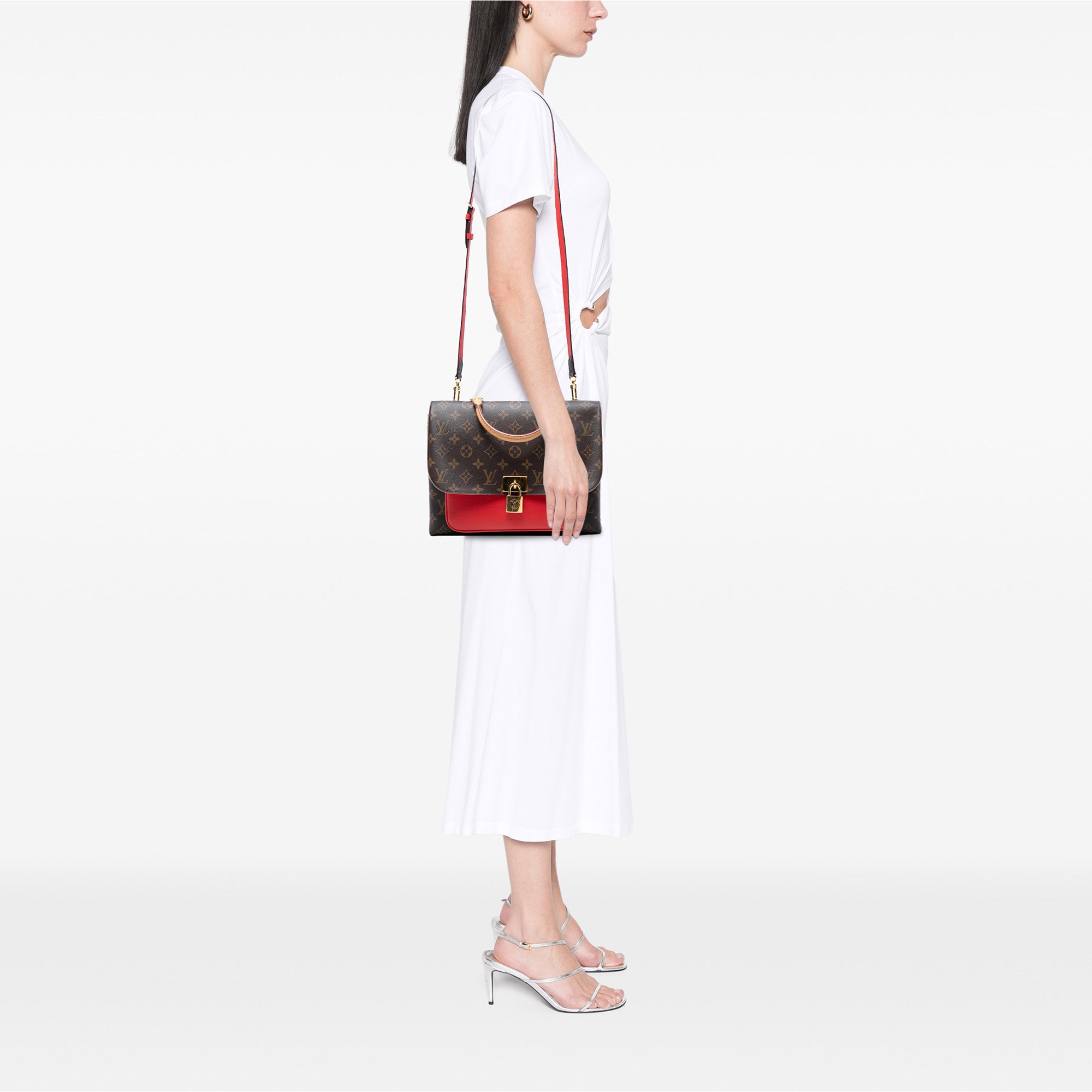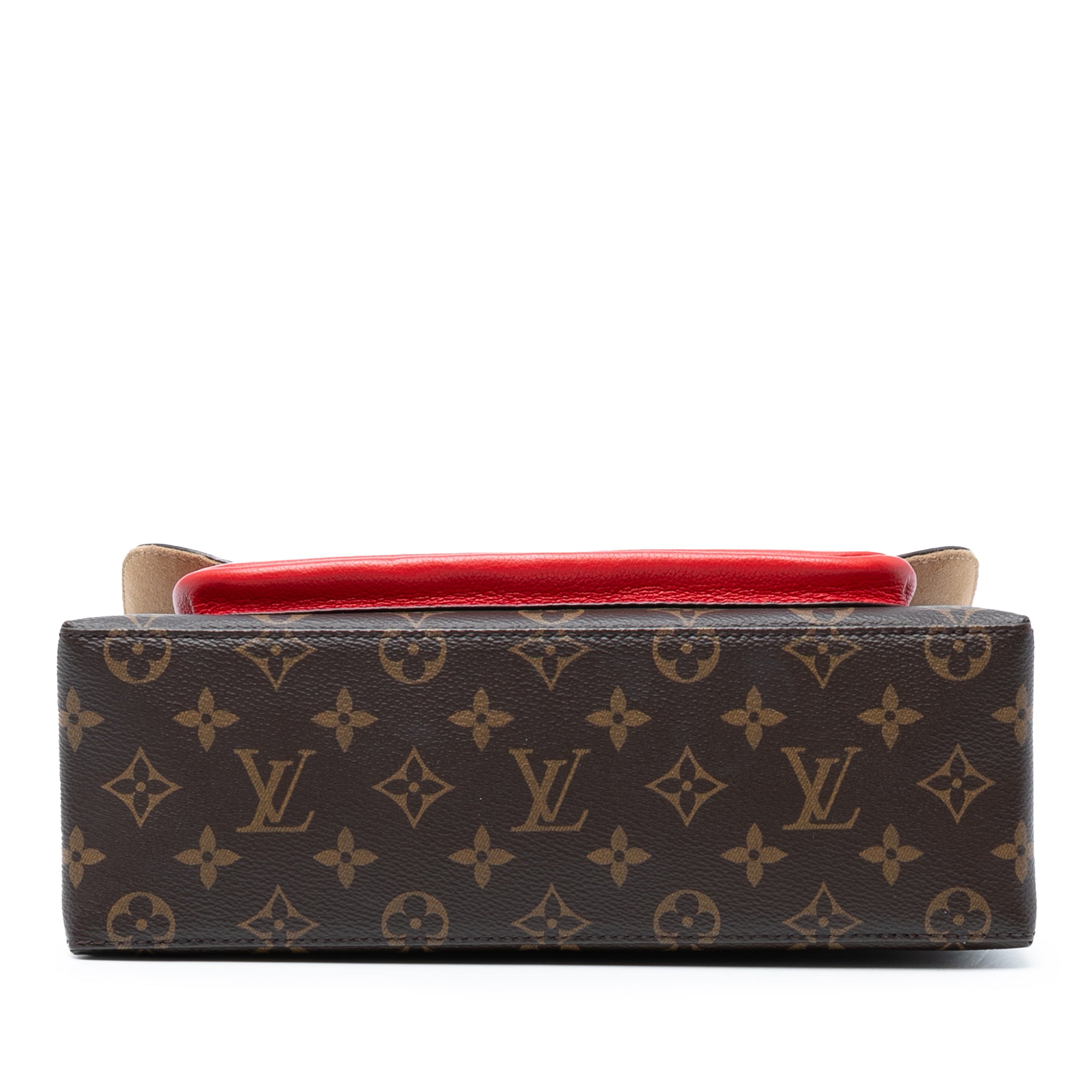 The Marignan features a monogram canvas body, a rolled leather top handle, a detachable flat leather strap, a front flap with magnetic snap button closure and interior pockets. Retail Price: 2230.00