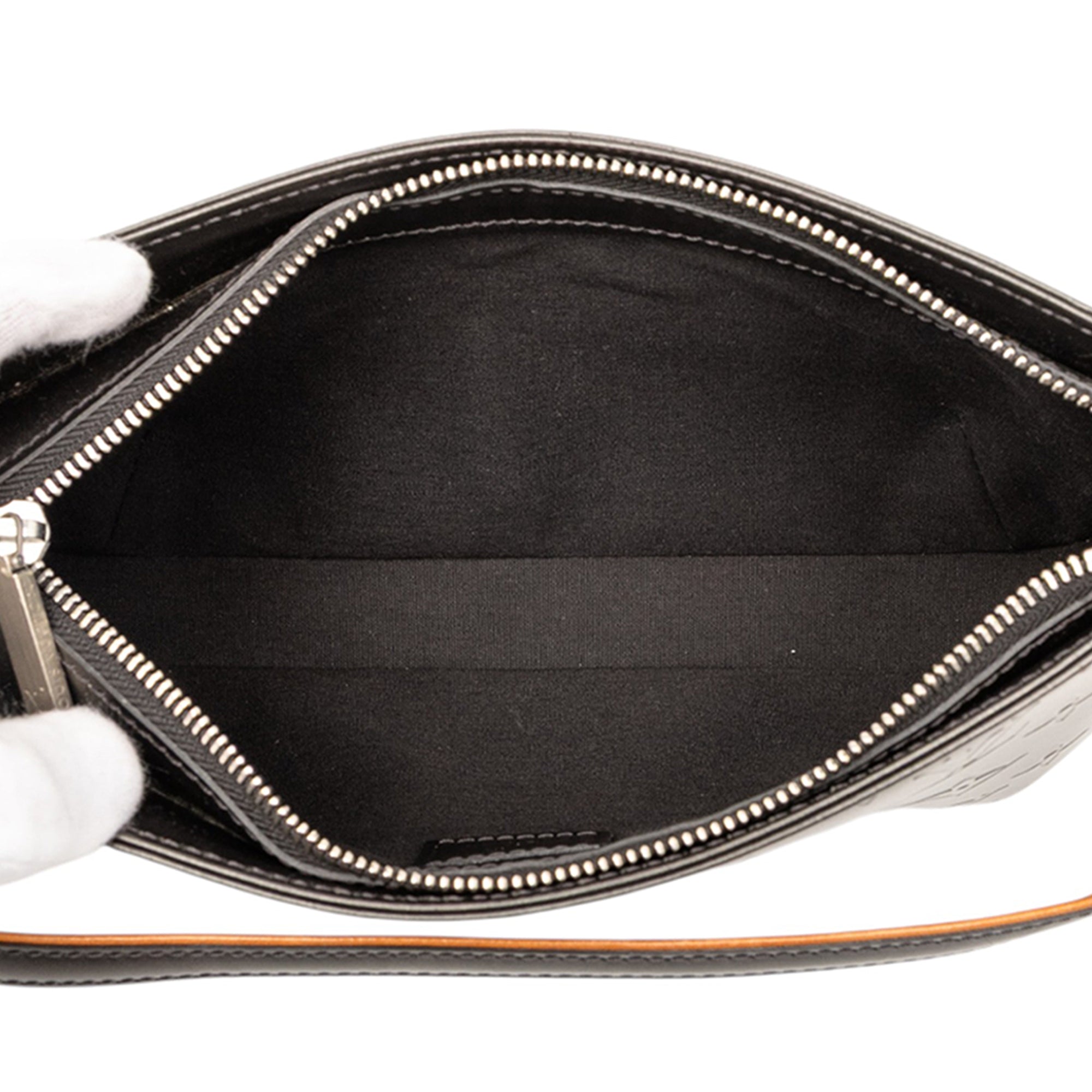 The Mat Fowler features a monogram leather body, a flat leather shoulder strap, and a top zip closure. Retail Price: 750.00