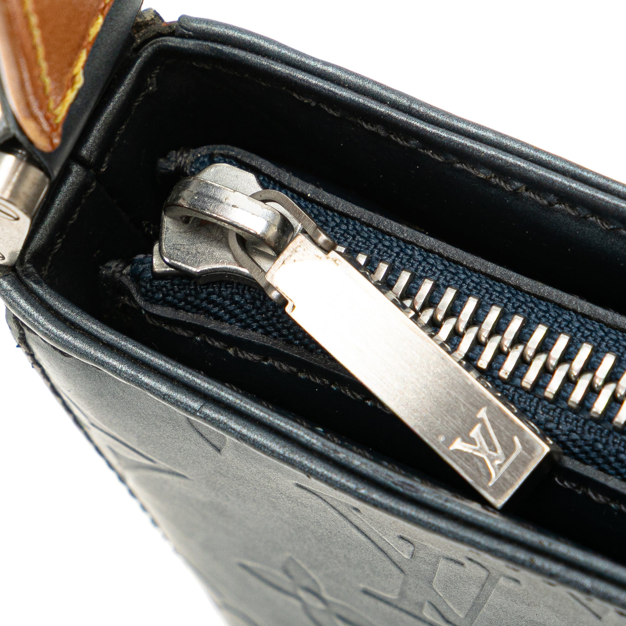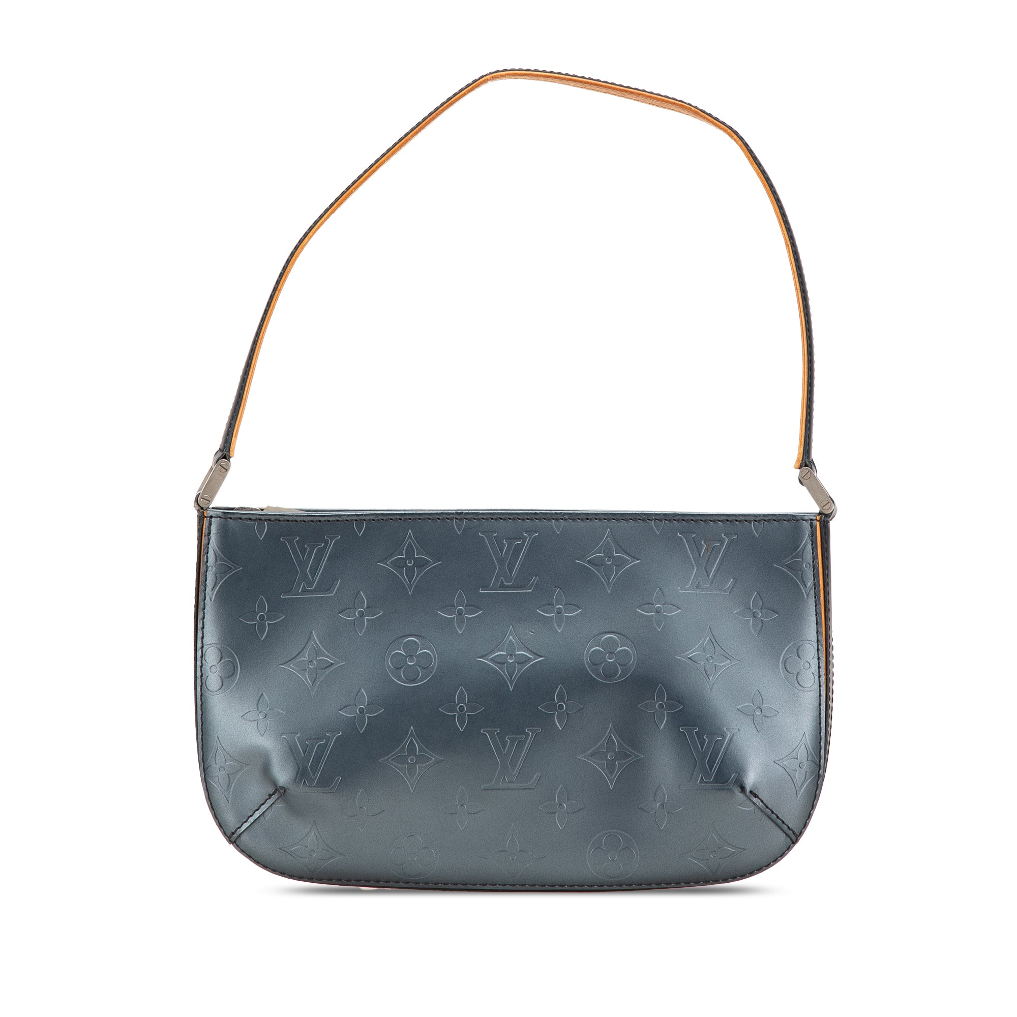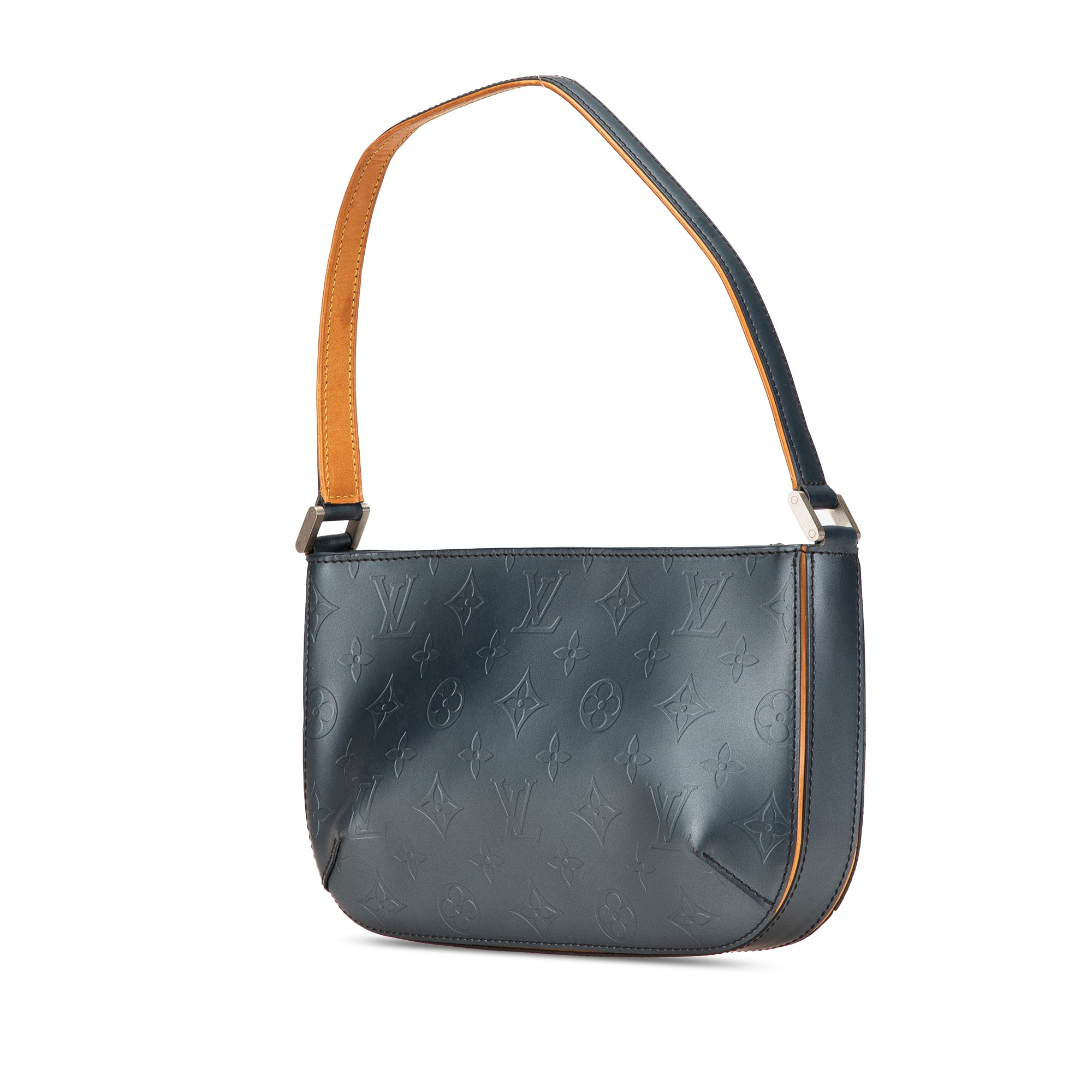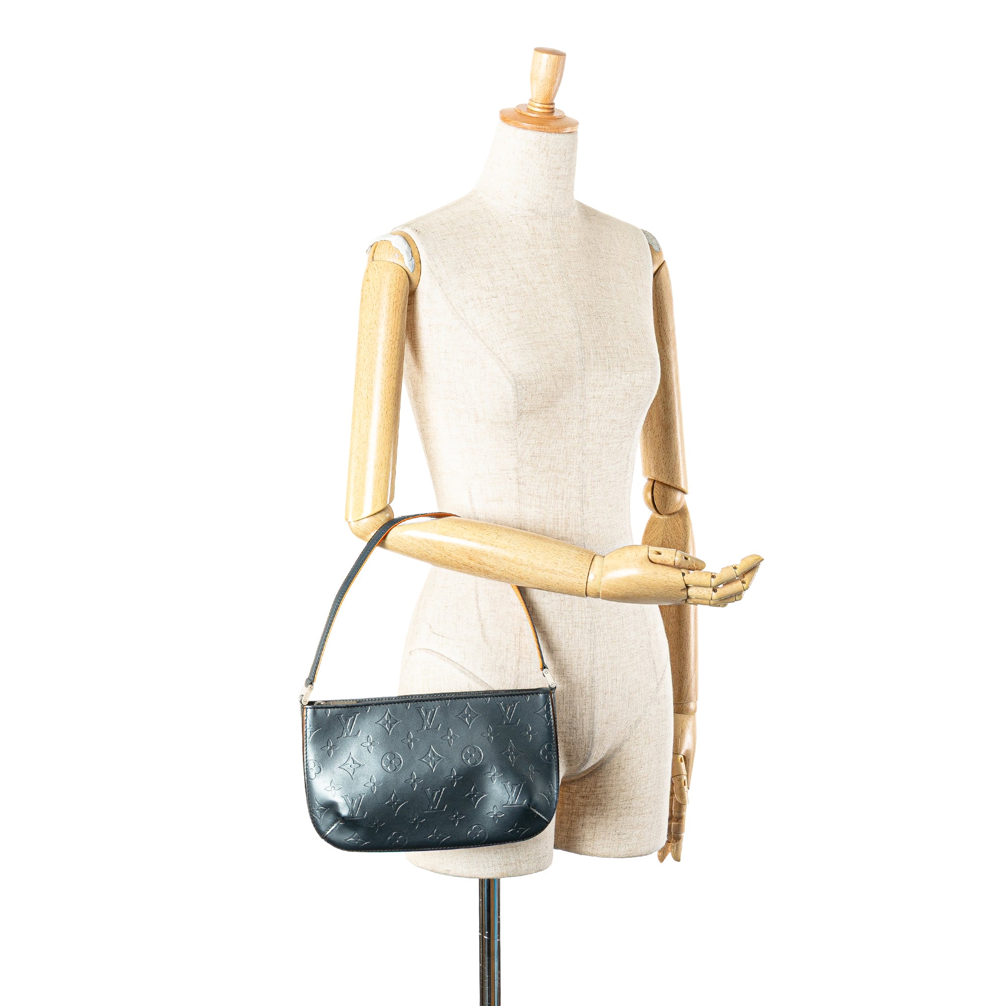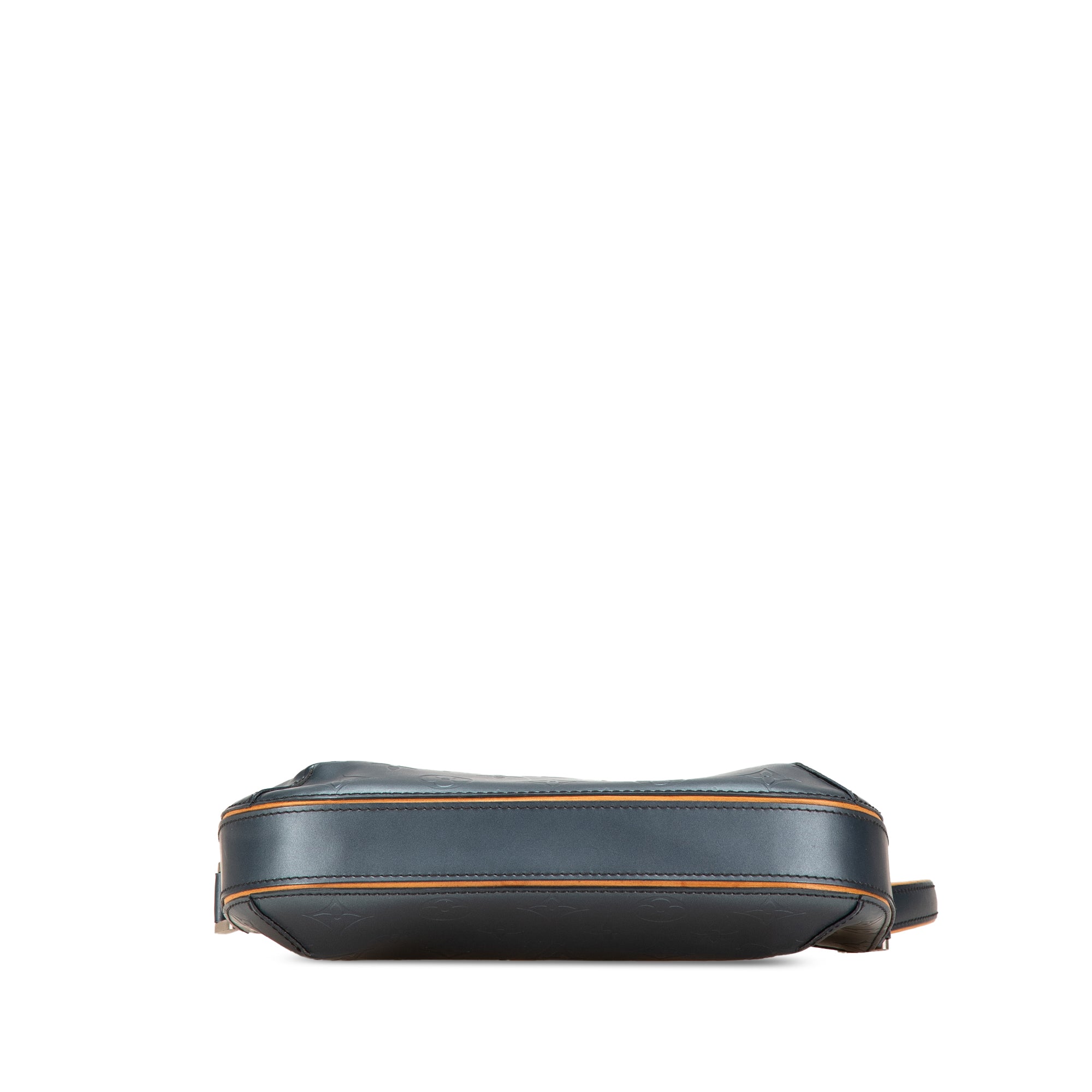 The Mat Fowler features a monogram mat leather body, a flat leather shoulder strap, and a top zip closure. Retail Price: 870.00