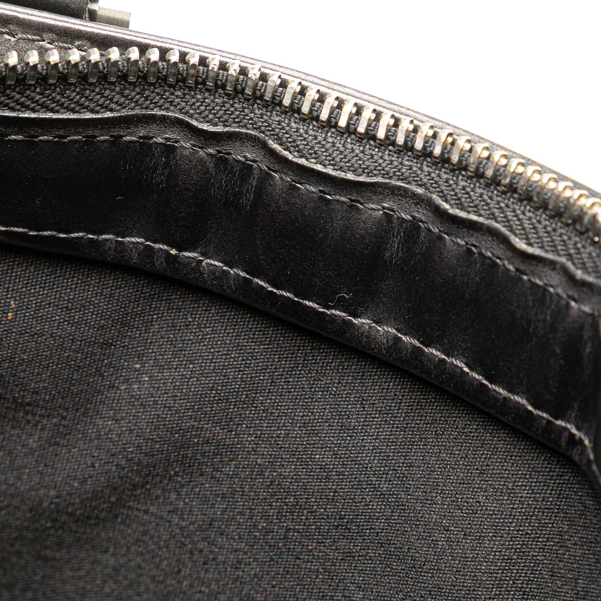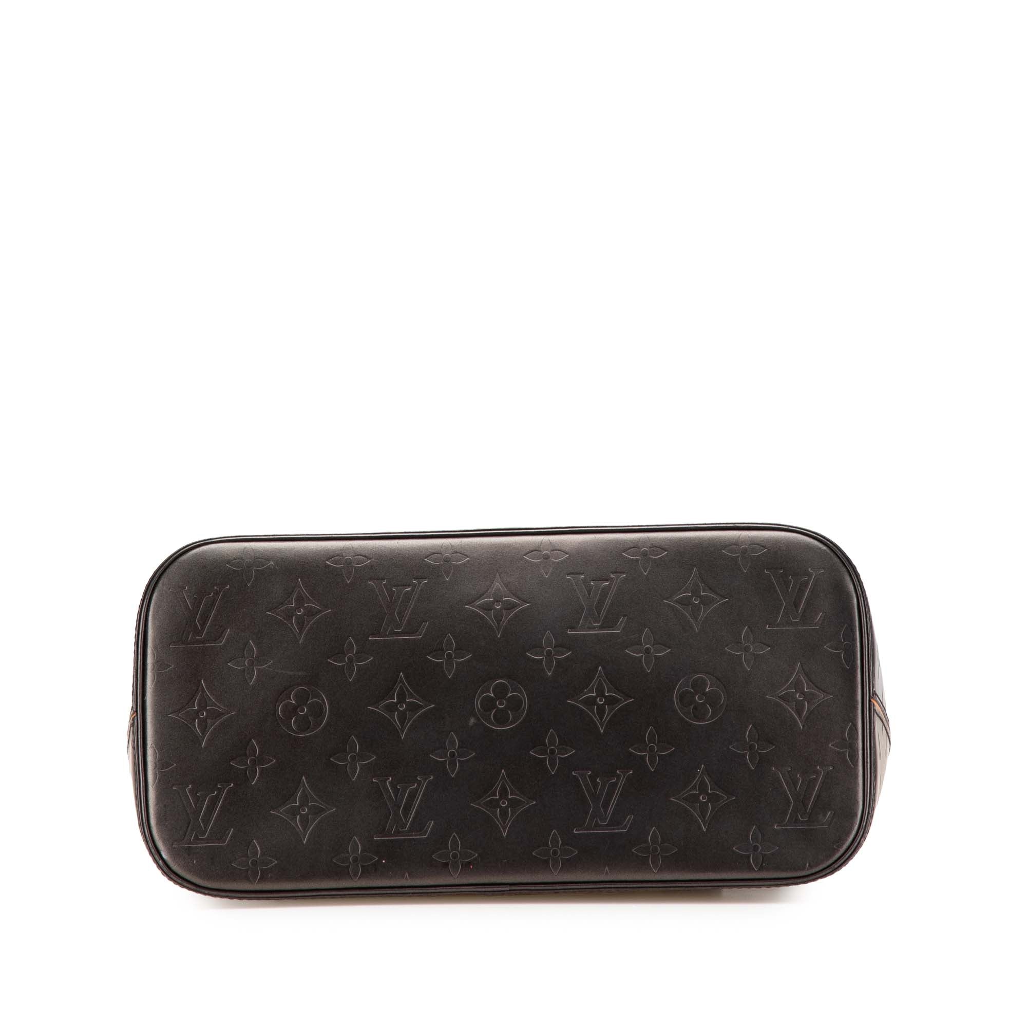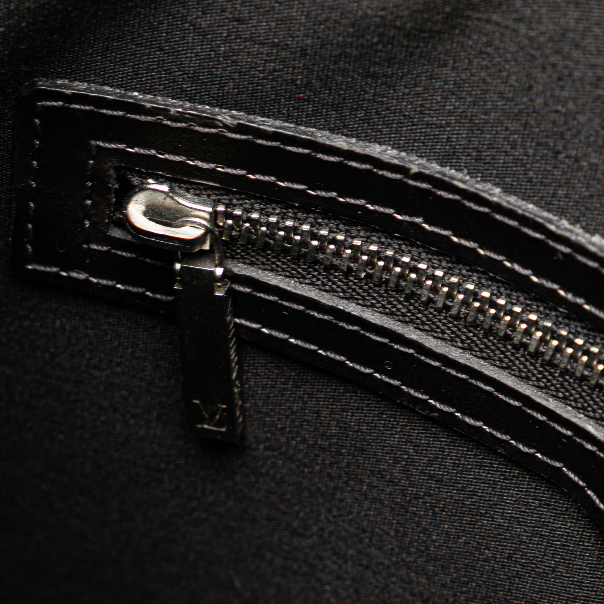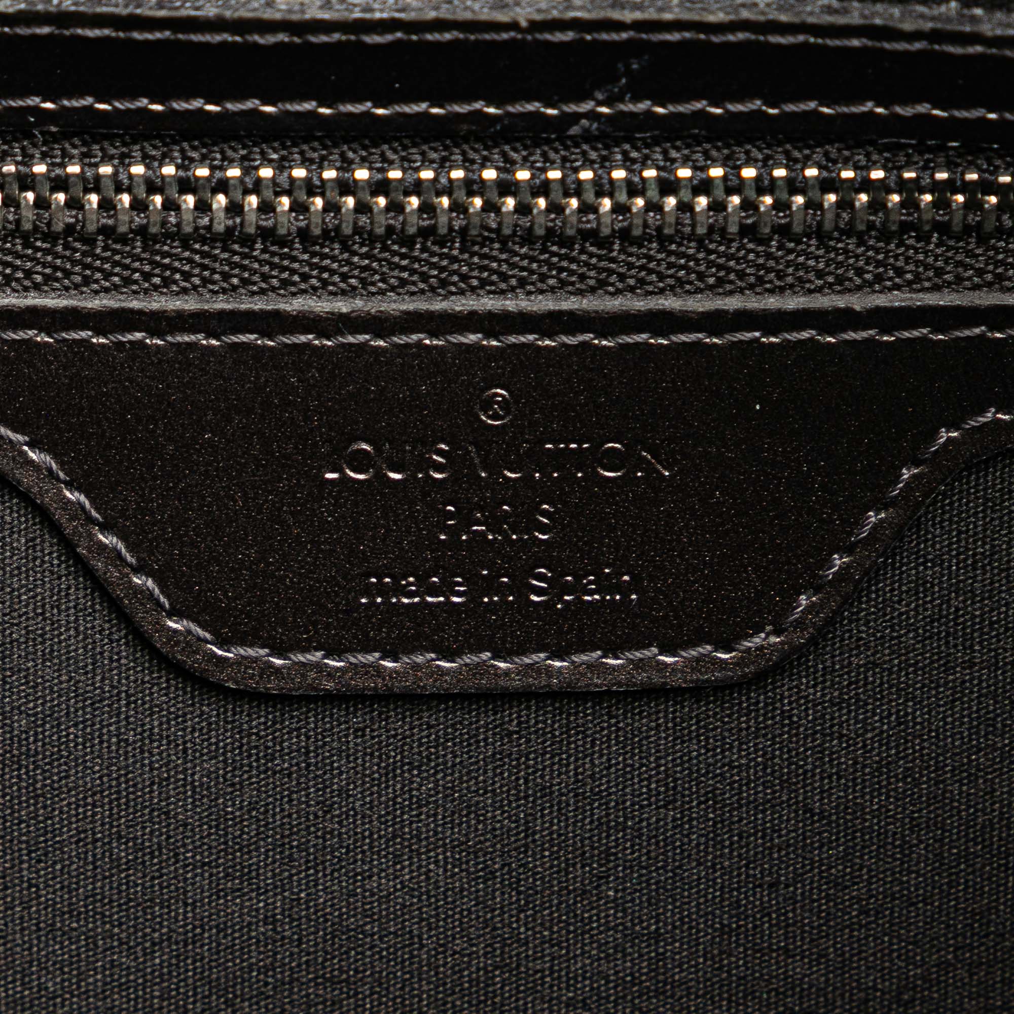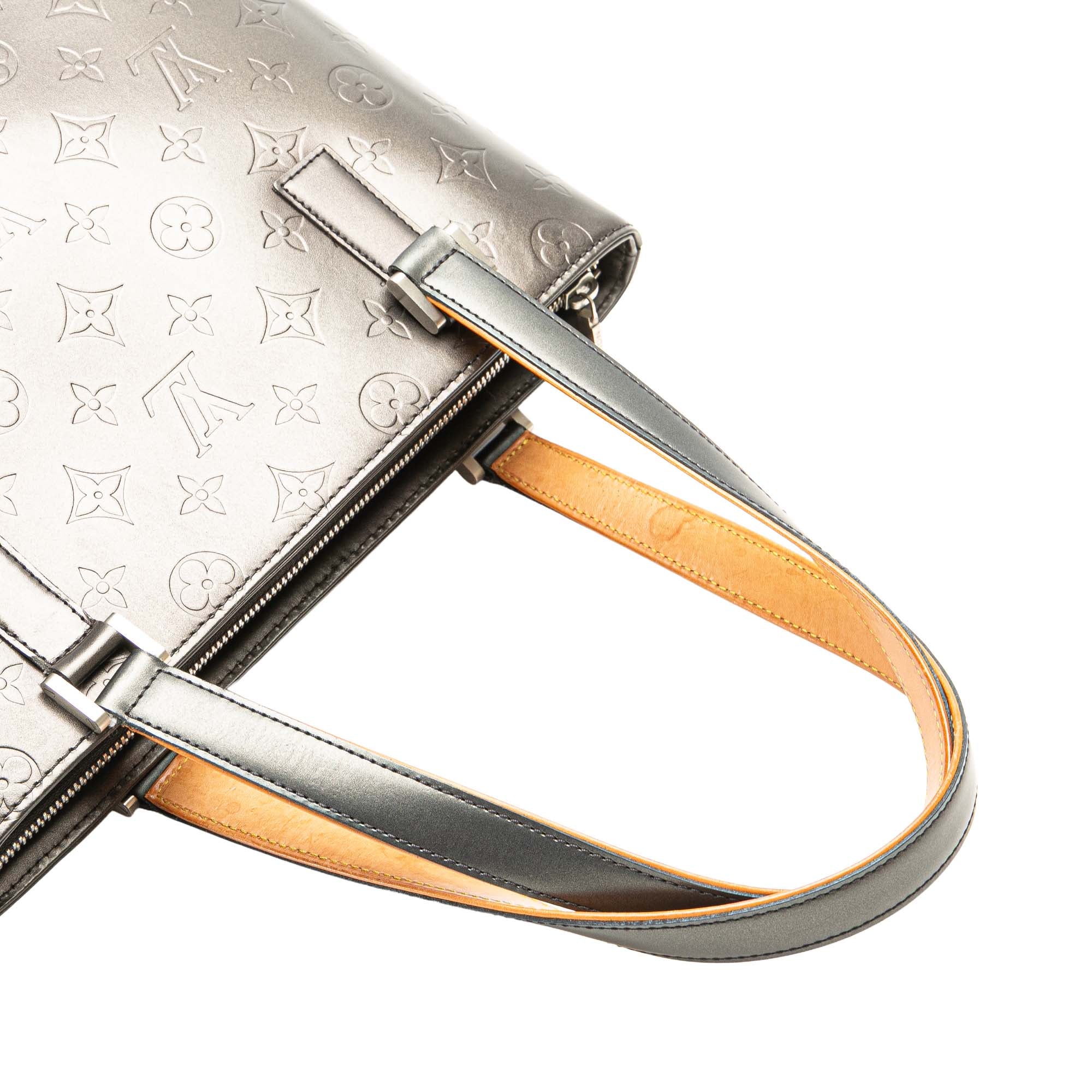 The Mat Stockton features a monogram mat leather body, flat leather handles, a top zip closure, and interior zip and slip pockets. Retail Price: 1250.00