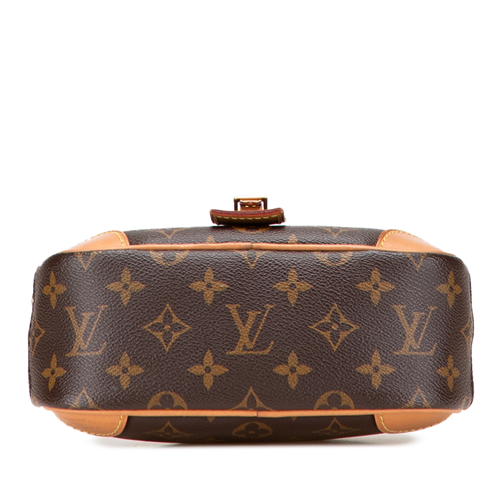 The Deauville Mini features a monogram canvas body with vachetta leather trim, an adjustable flat vachetta leather strap, a top zip closure, and an interior slip pocket. Inclusion: Dust bag. Retail Price: 2010.00