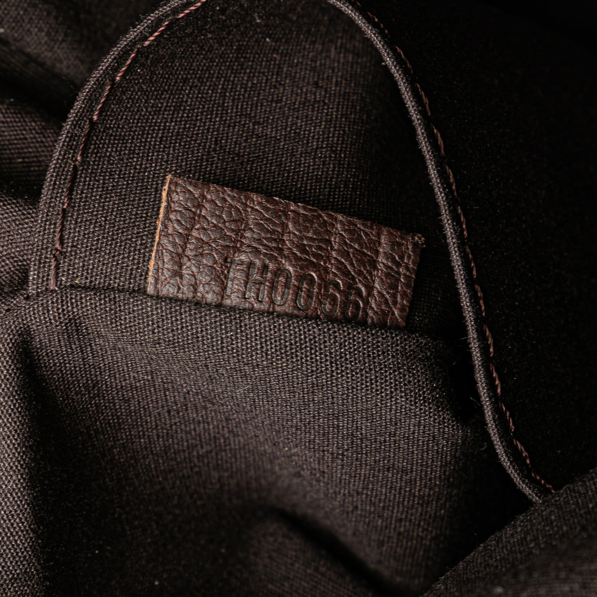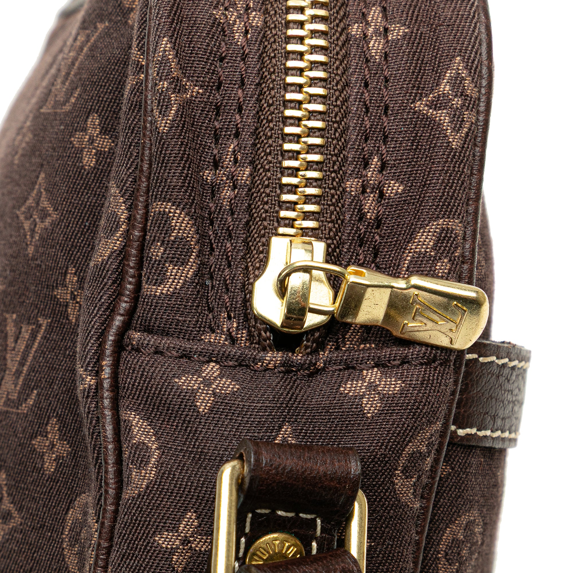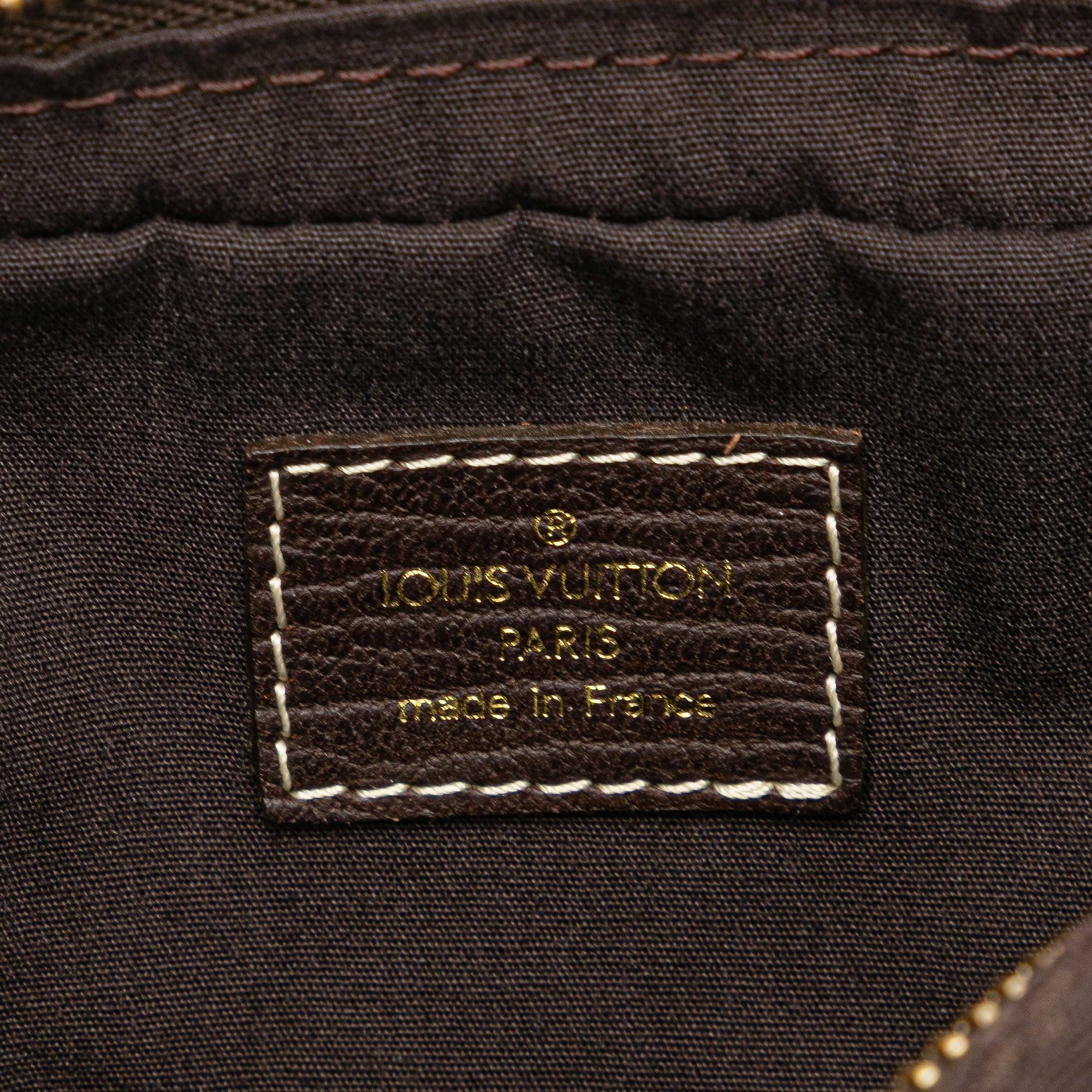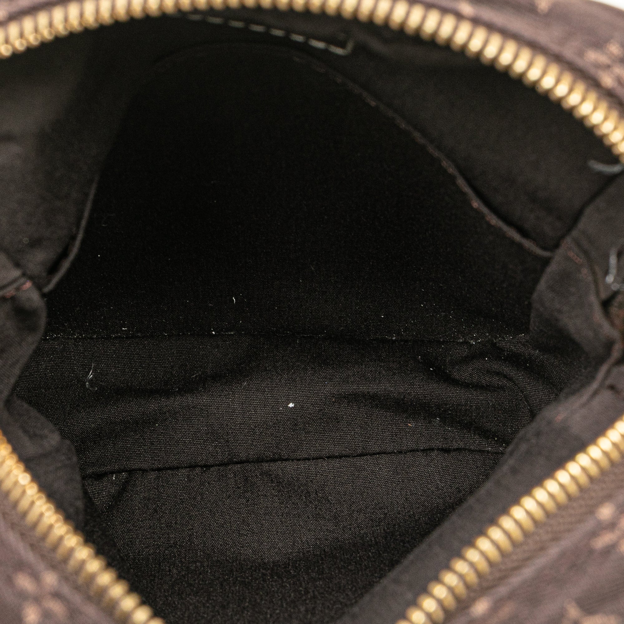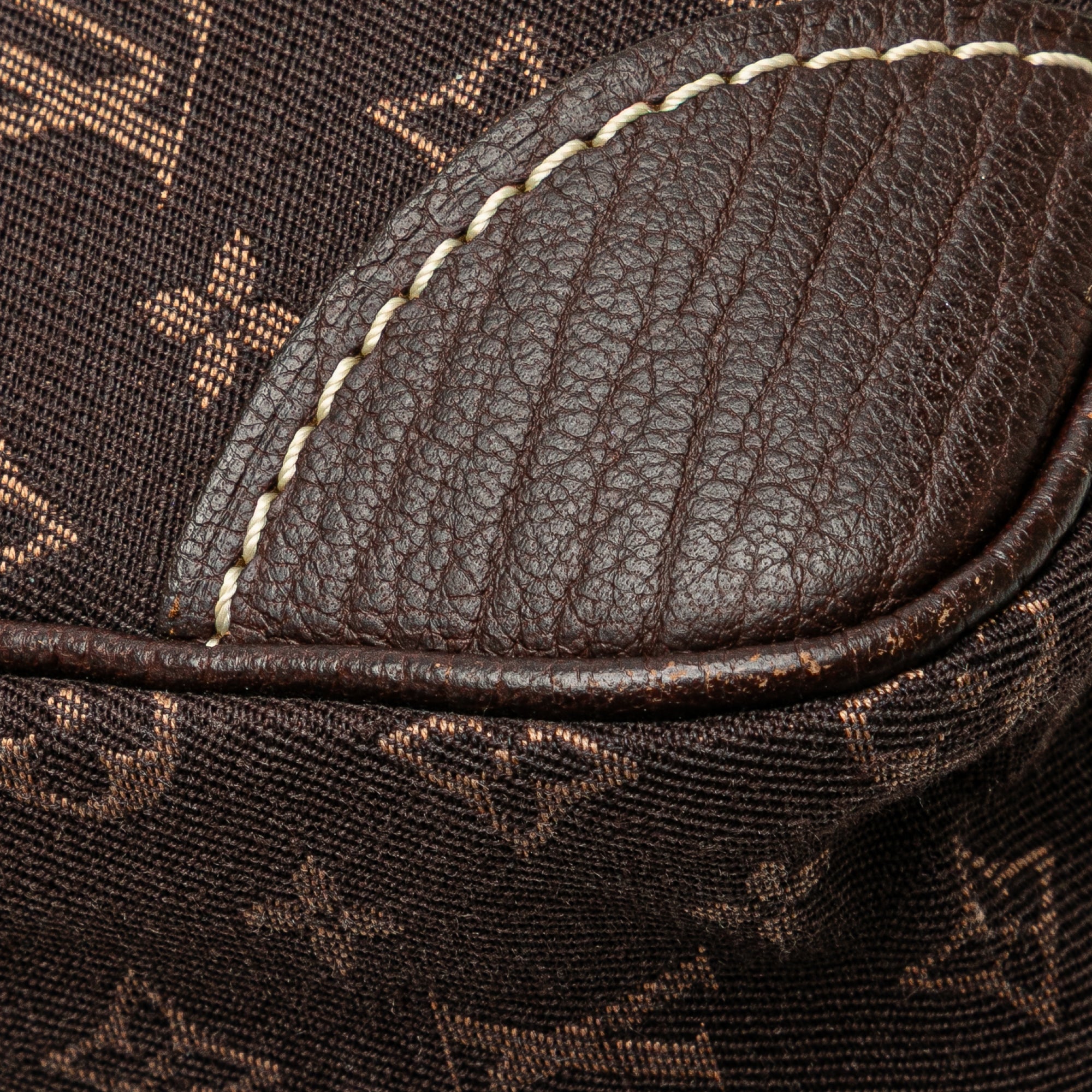 The Danube features a monogram mini lin body with leather trim, an adjustable flat leather strap, a top zip closure, an exterior slip pocket, and an interior slip pocket. Retail Price: 855.00