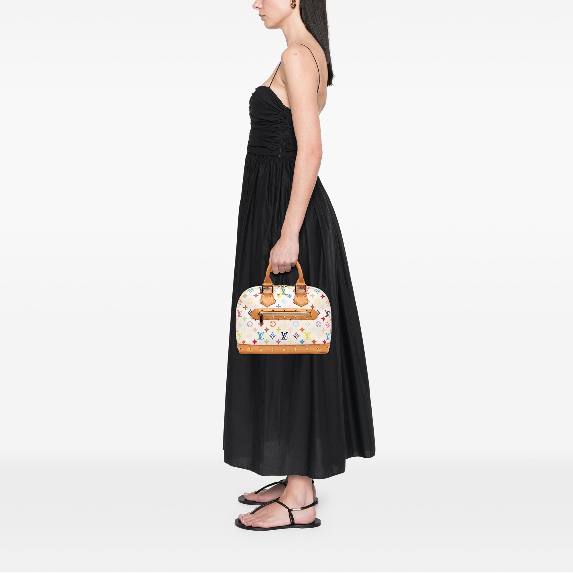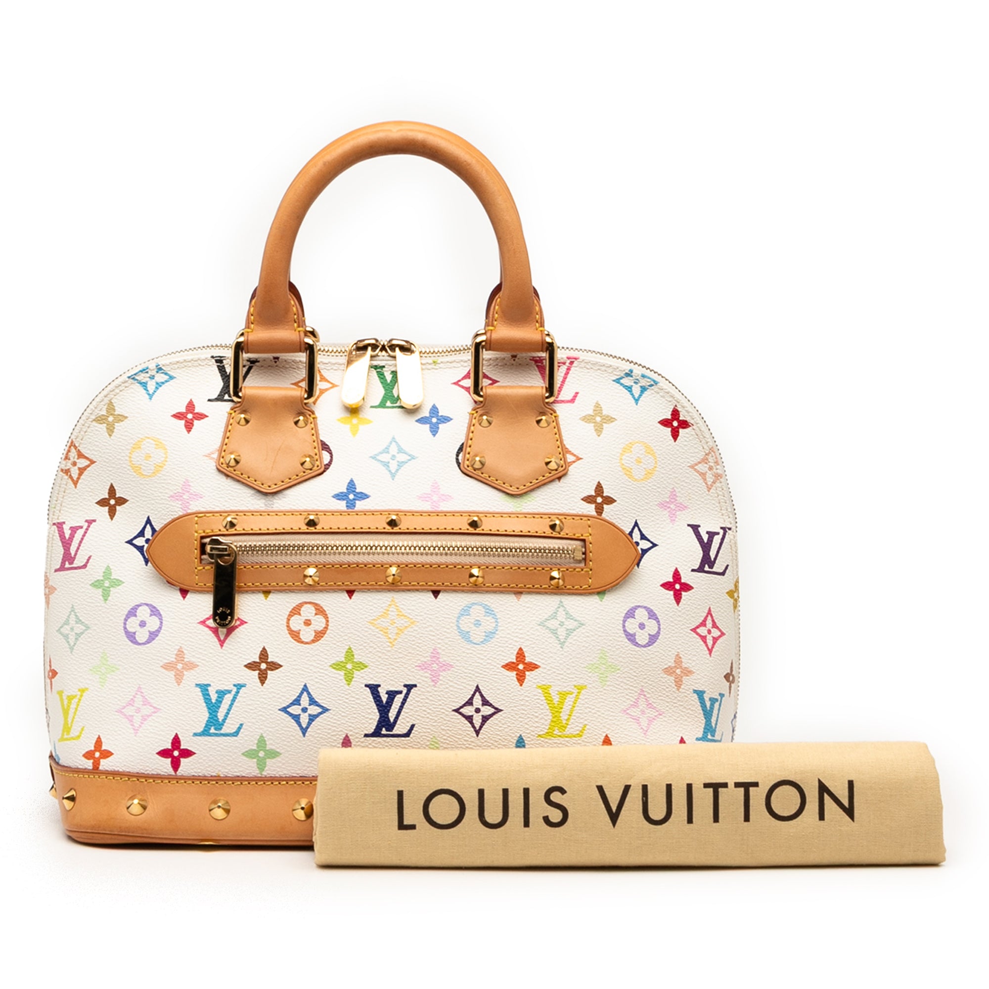 The Alma PM features the monogram multicolore canvas body with studded vachetta leather trim, rolled vachetta leather handles, a top zip closure, an exterior front zip pocket, and interior slip pockets. Inclusion: Dust bag. Retail Price: 2480.00