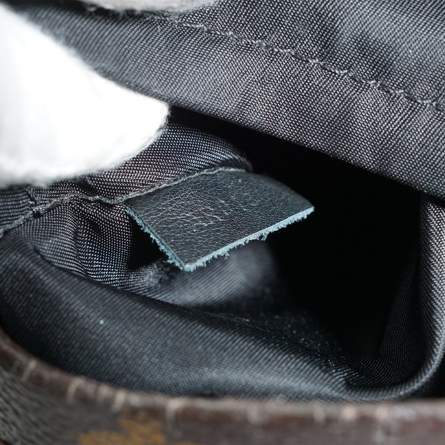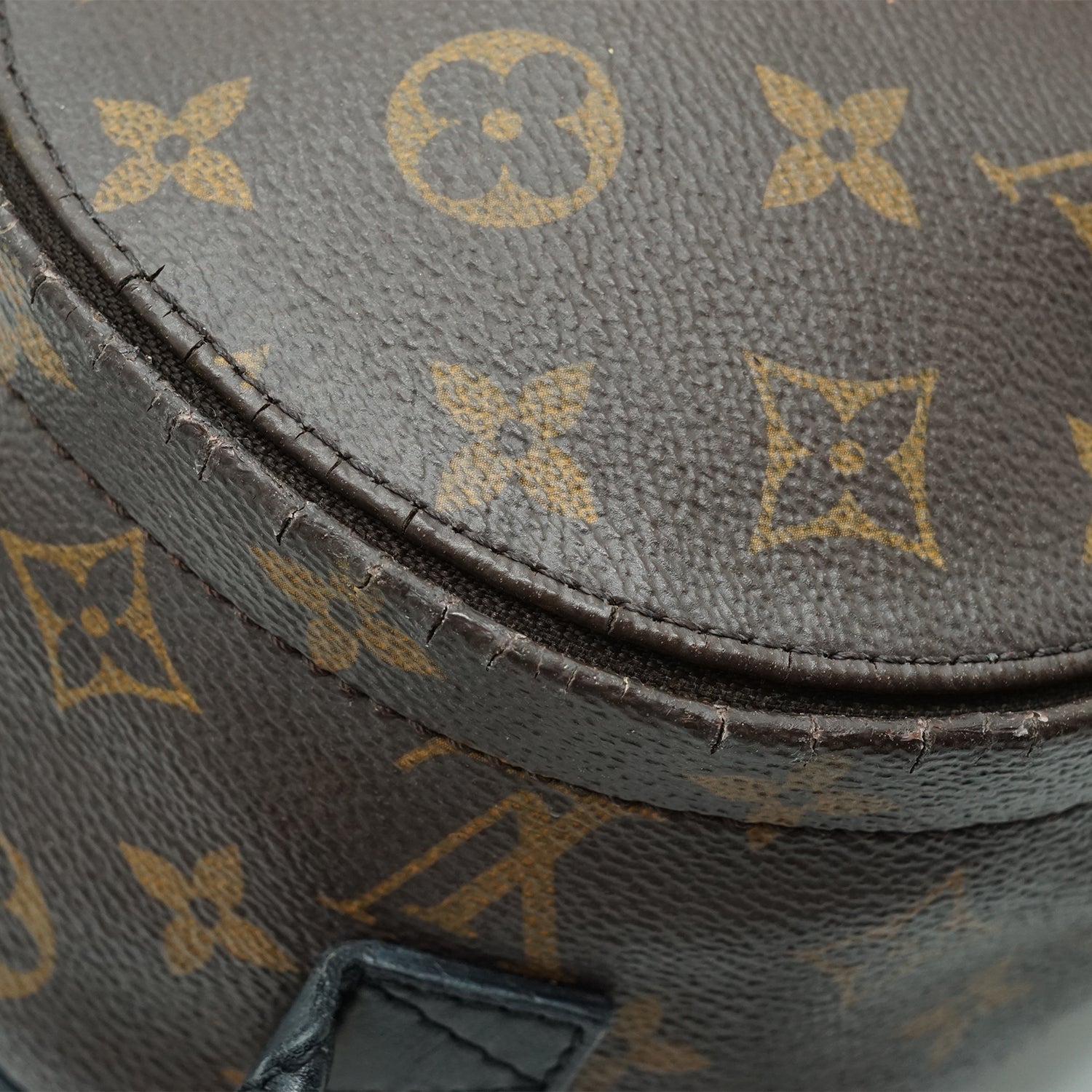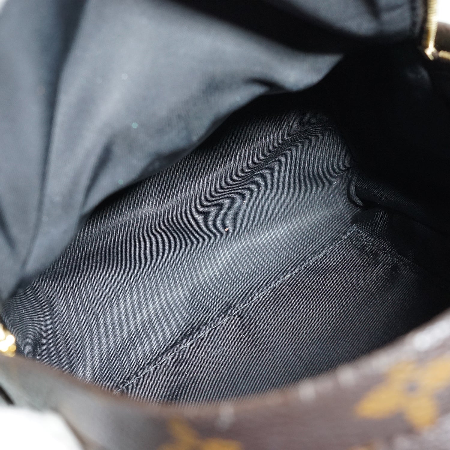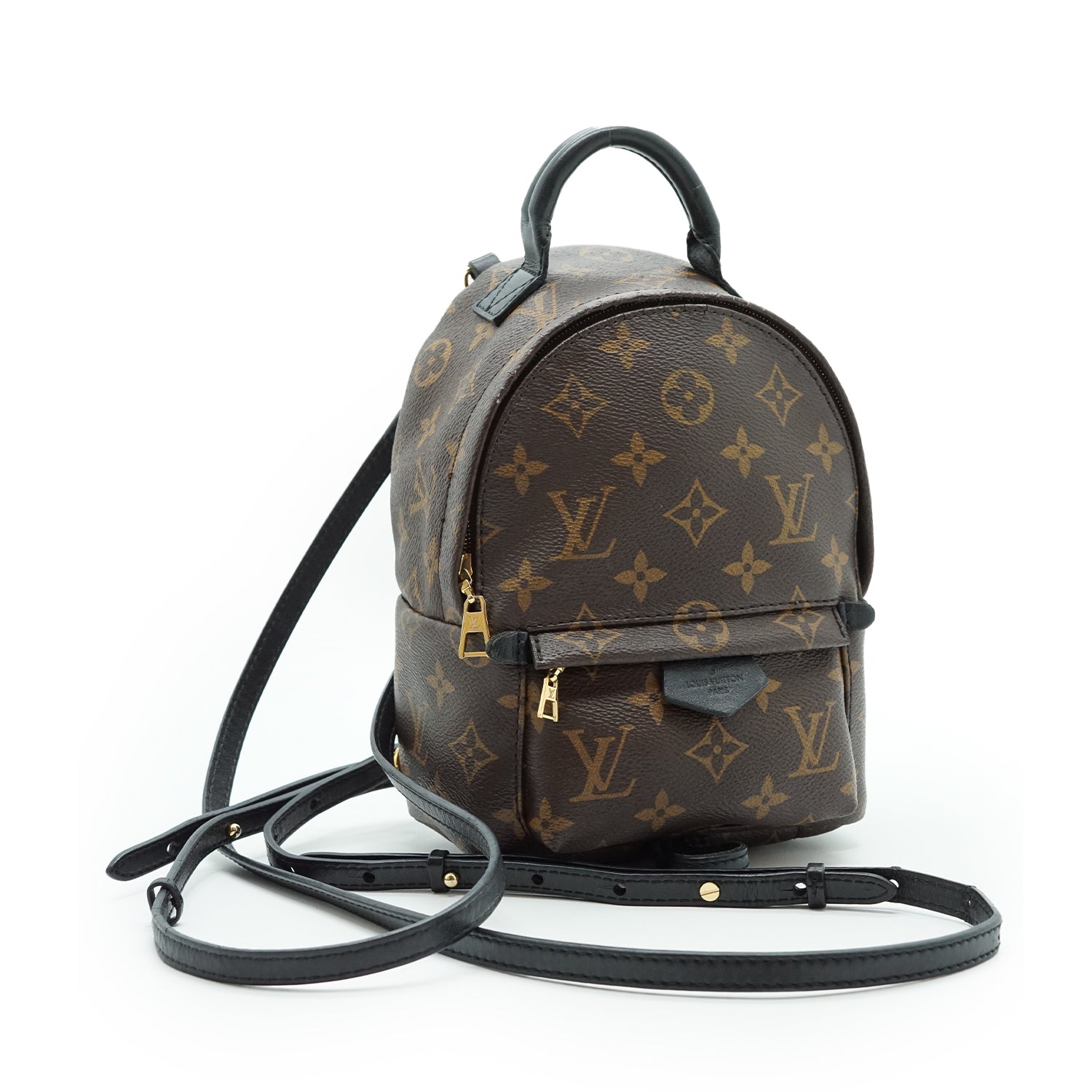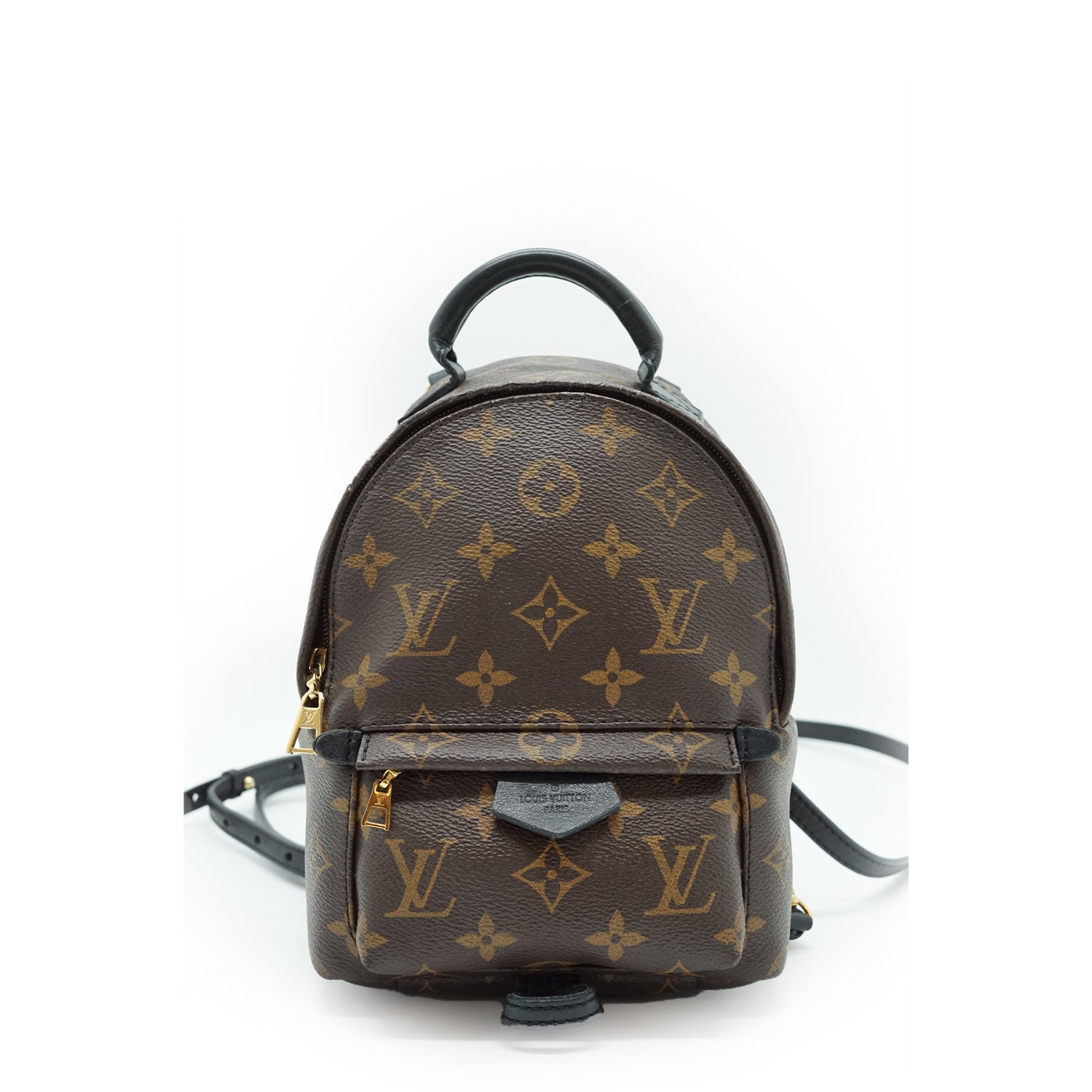 Monogram Palm Springs Mini Brown/Black Canvas, LeatherDepth: 9cmHeight: 21cmWidth: 15cmShoulder Drop: 50cmHand Drop: 5.5cmScratch: Some corner rubPeeling: Leather cuts/cracks along the upper partsSerial code: AR0186