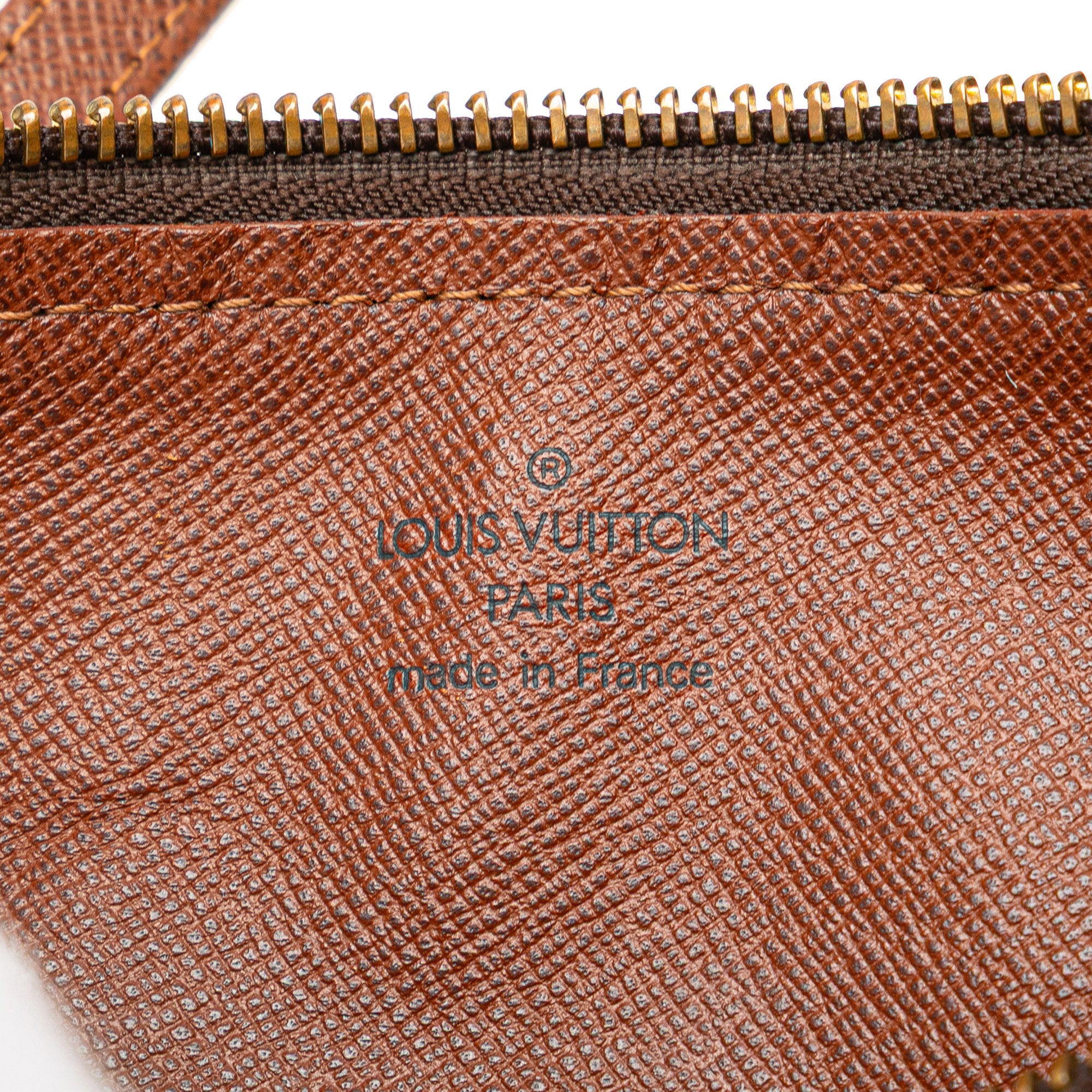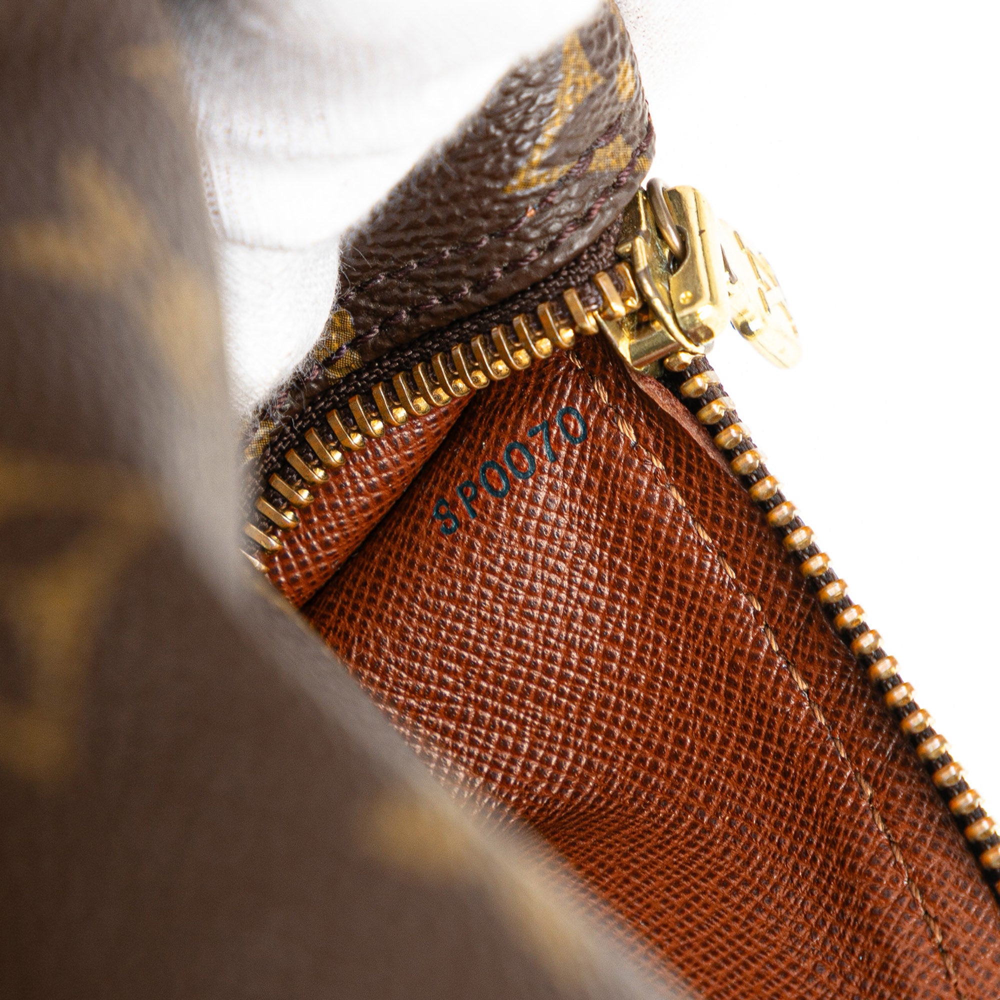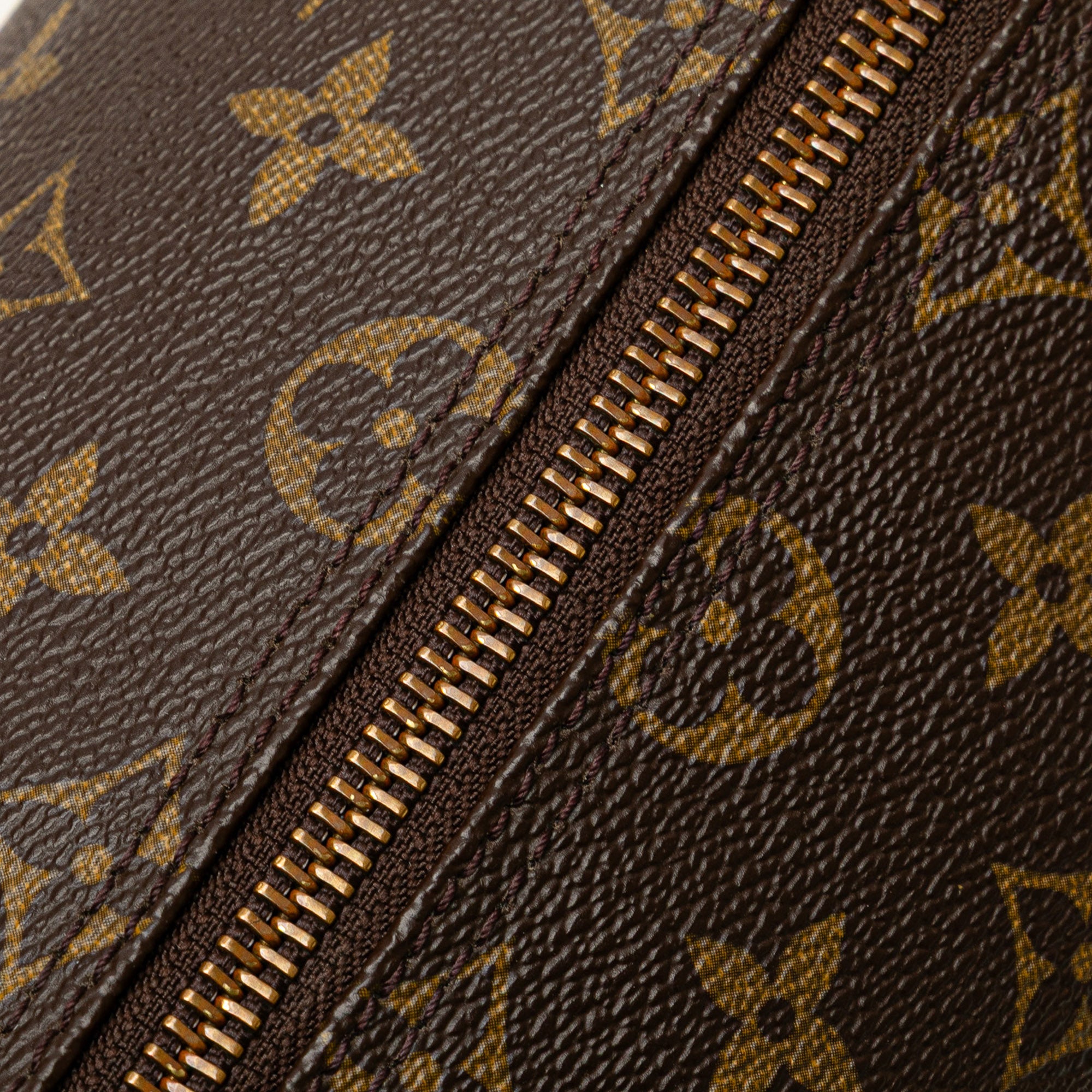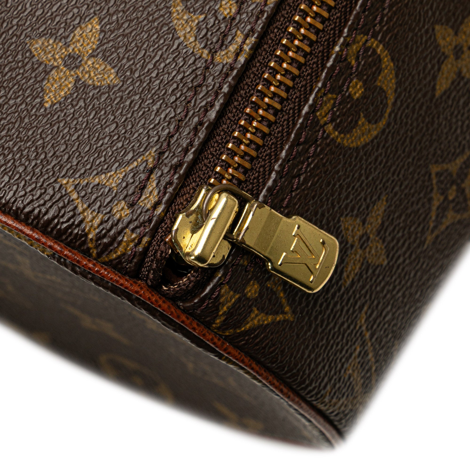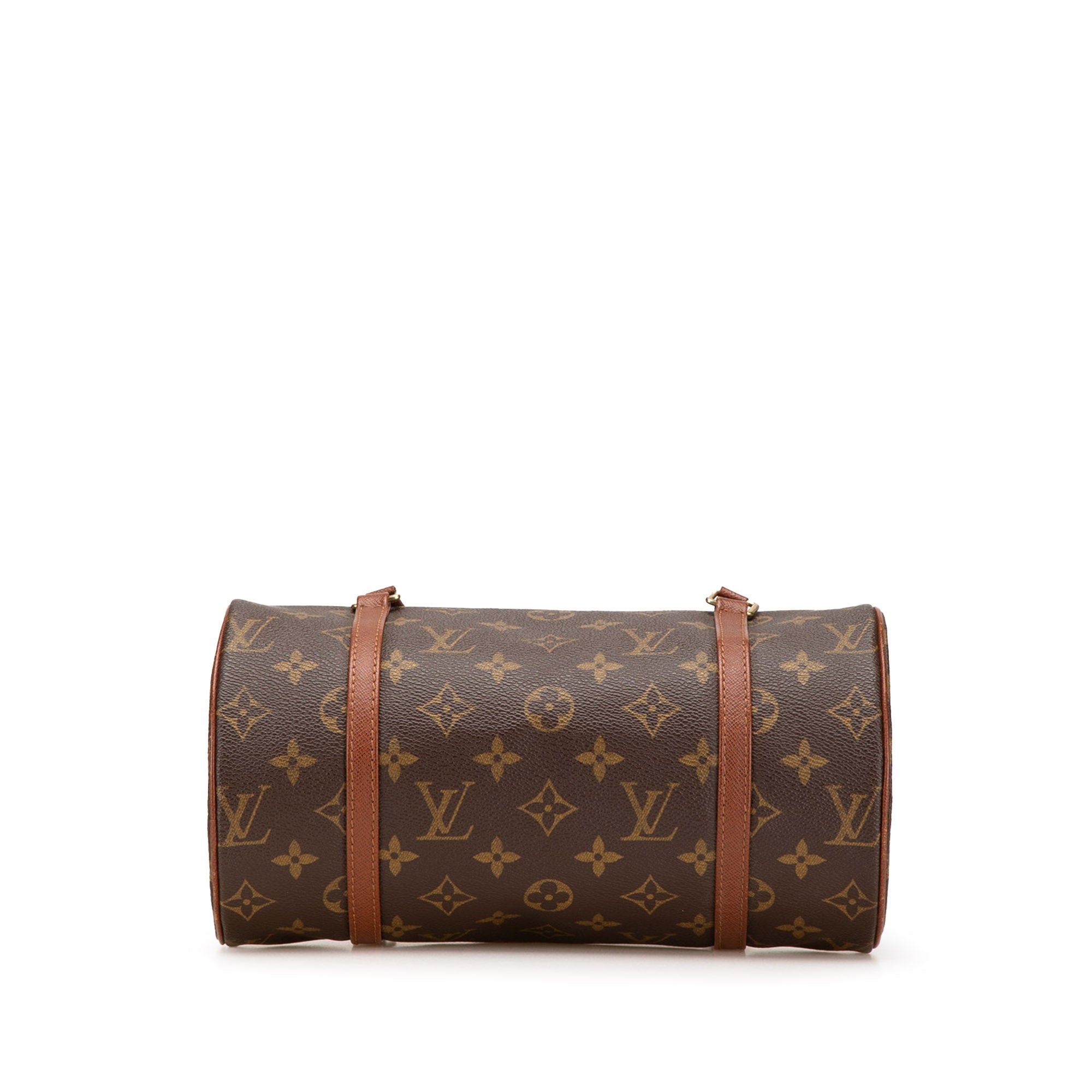 The Papillon 26 features a monogram canvas body with leather trim, flat leather handles, and a top zip closure. Retail Price: 1075.00