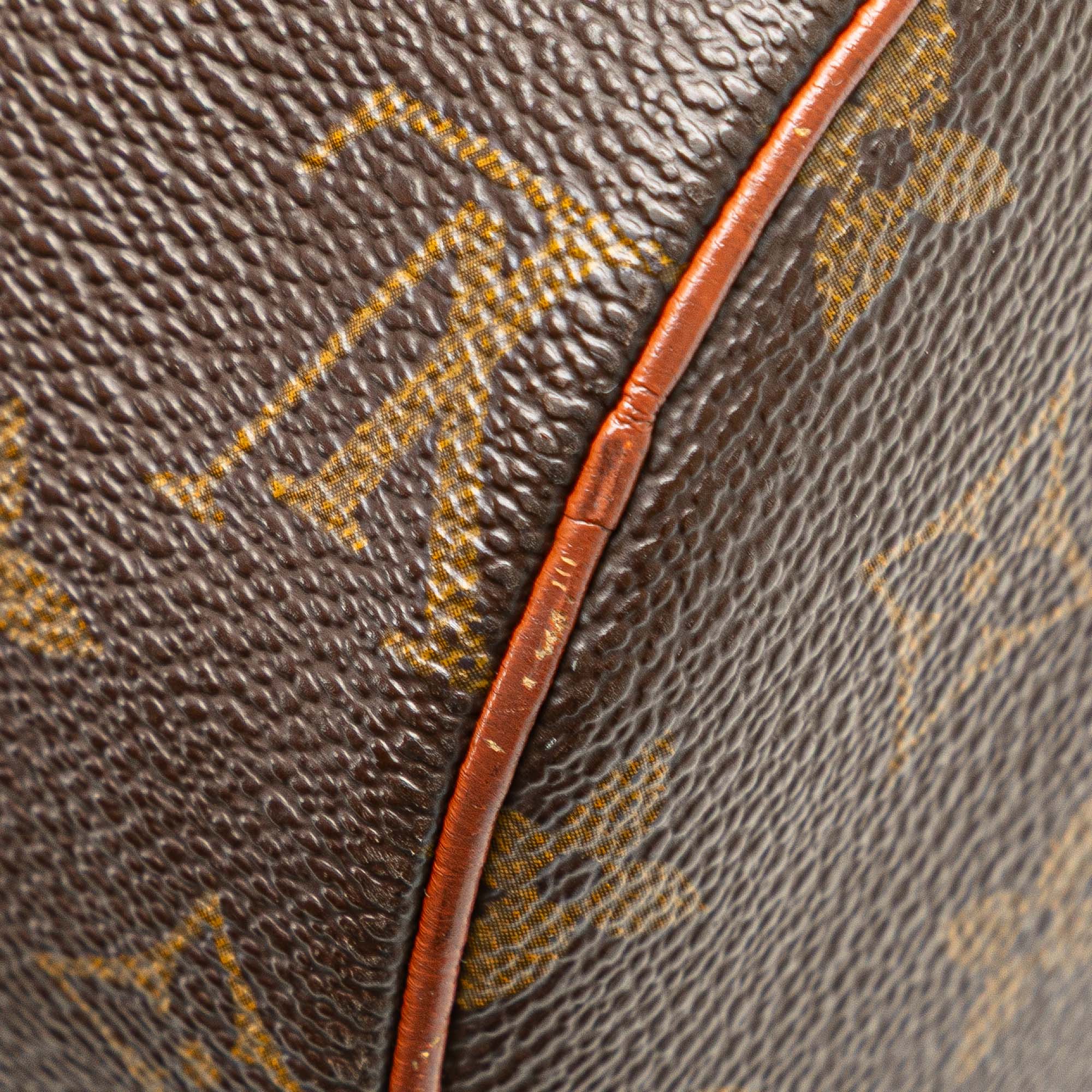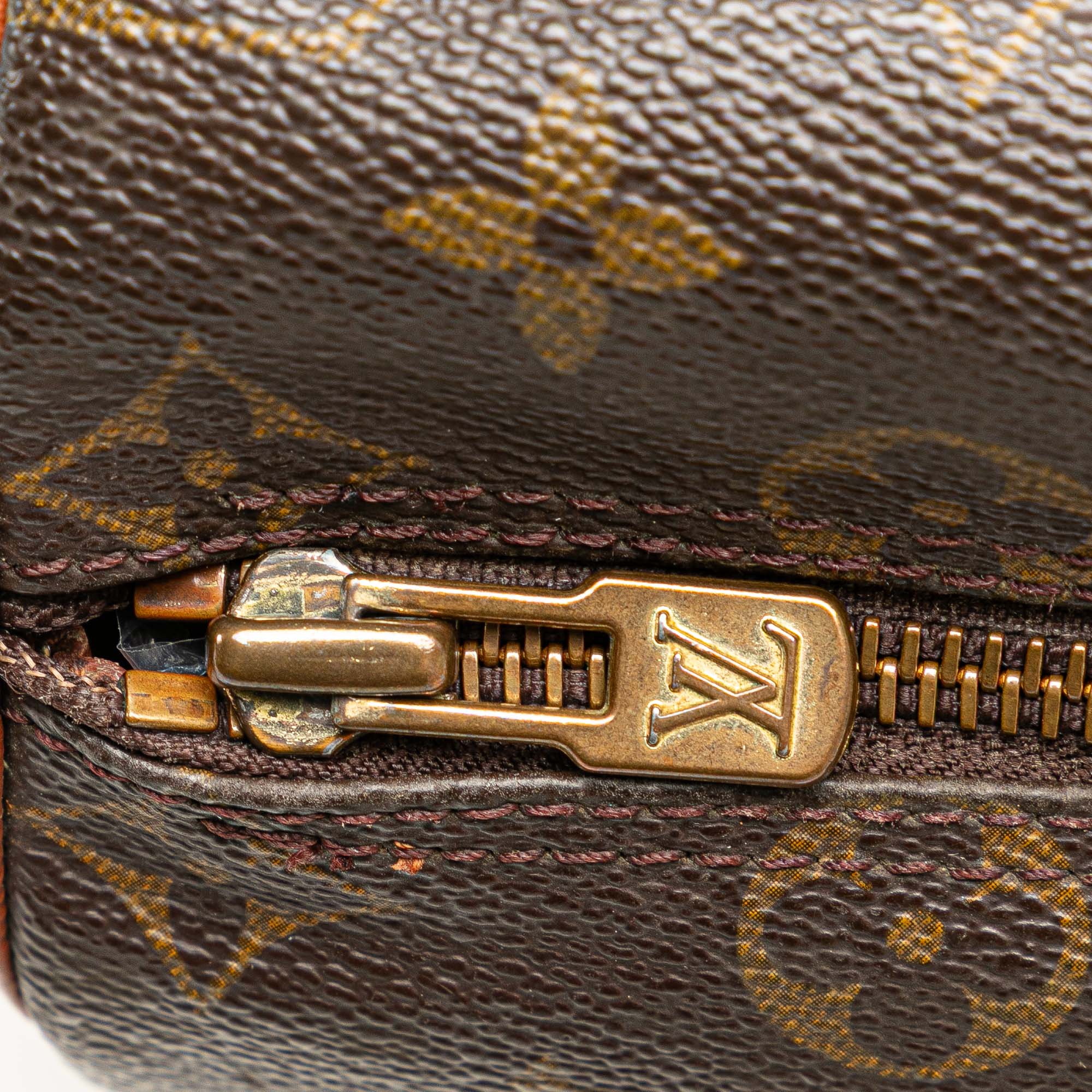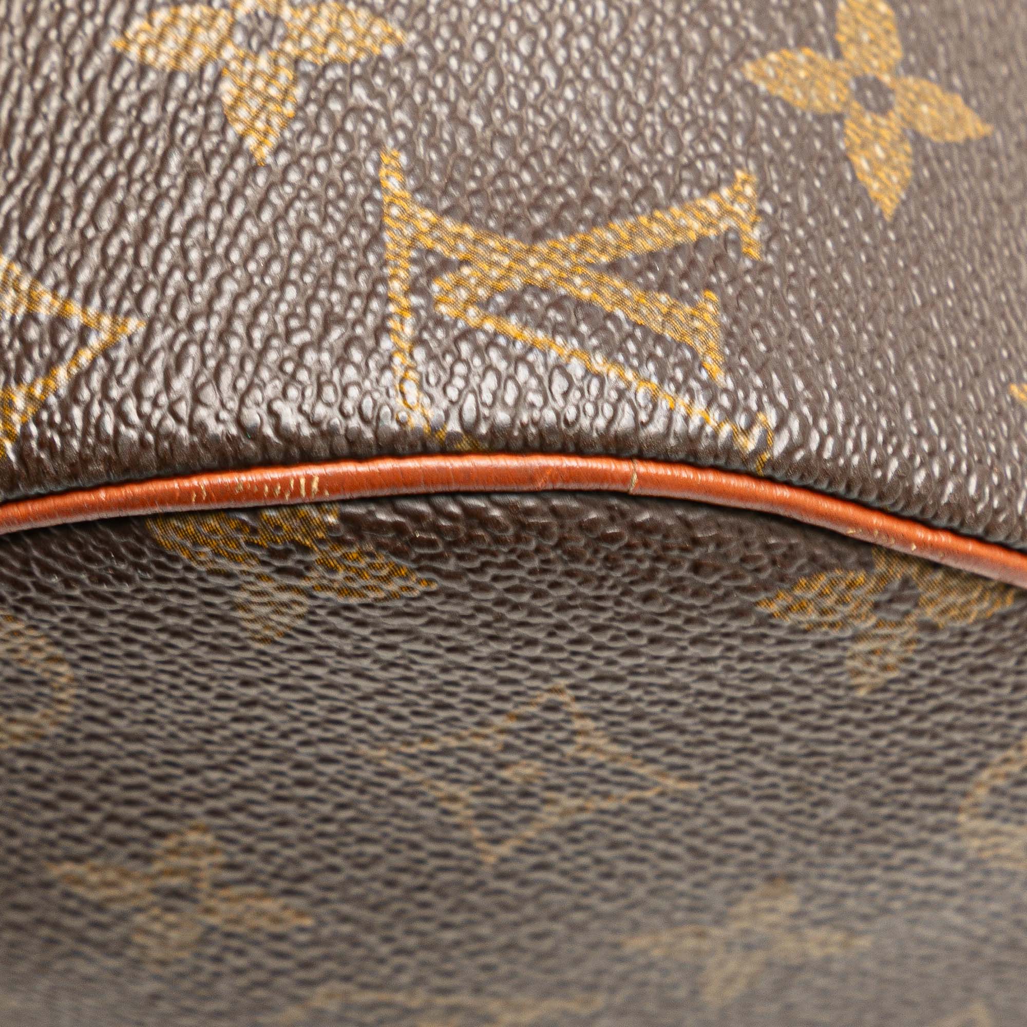 The Papillon 26 features a monogram canvas body with vachetta leather trim, flat vachetta leather handles, and a top zip closure. Retail Price: 1075.00