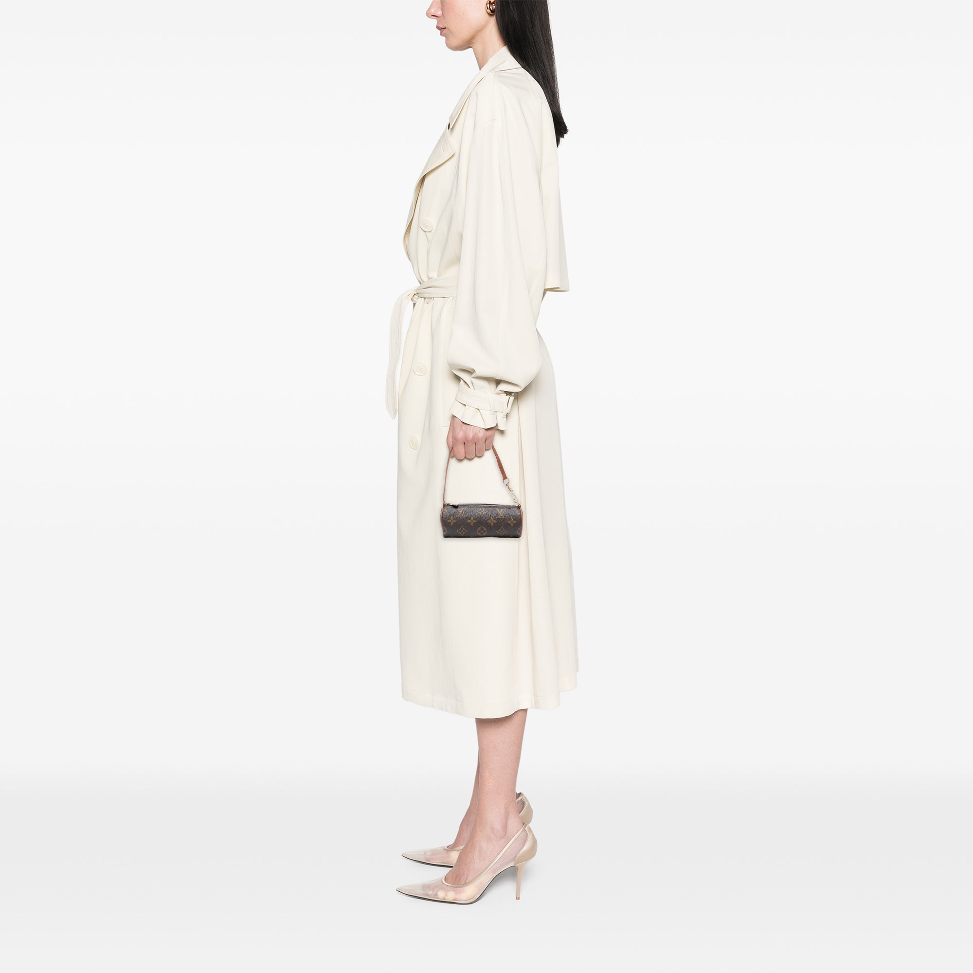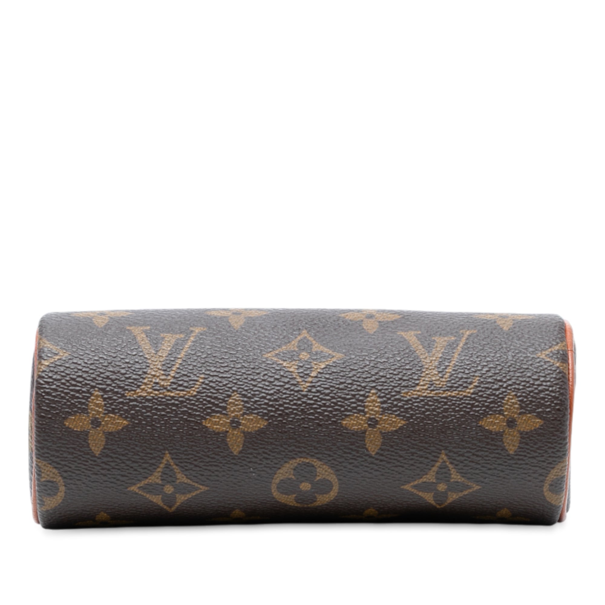 The Pochette Papillon features a monogram canvas body, a detachable leather strap, and a top zip closure. Retail Price: 750.00