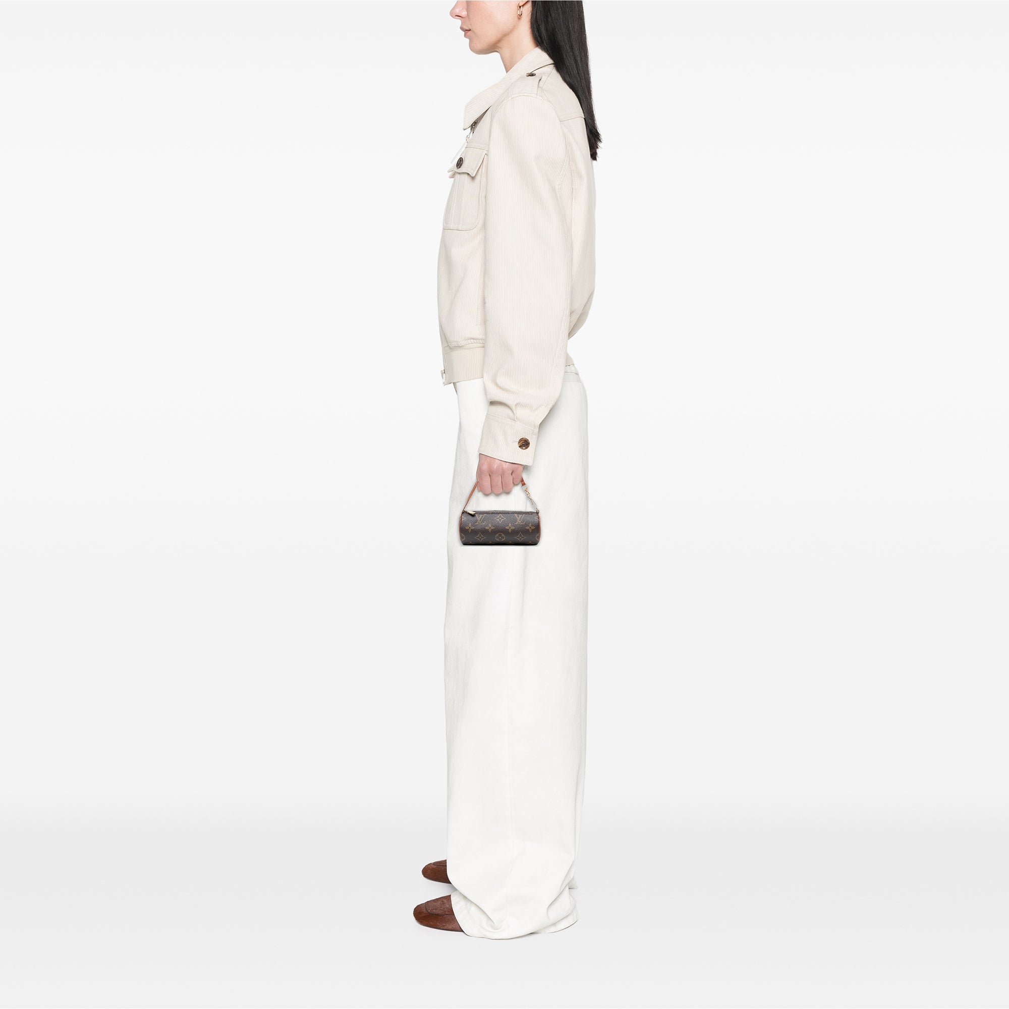 The Pochette Papillon features a monogram canvas body, a detachable leather strap, and a top zip closure. Retail Price: 750.00