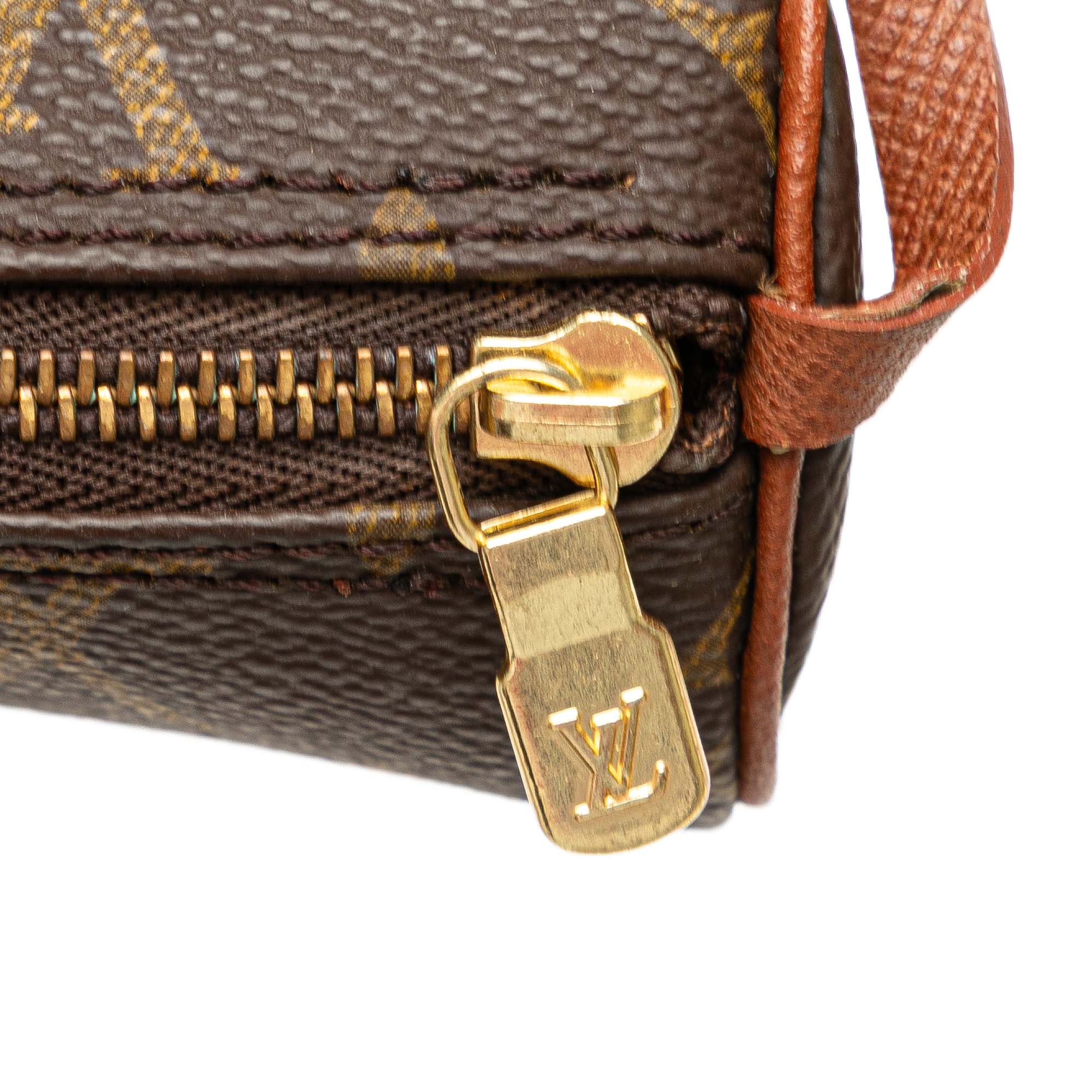 The Pochette Papillon features a monogram canvas body, a detachable leather strap, and a top zip closure. Retail Price: 750.00