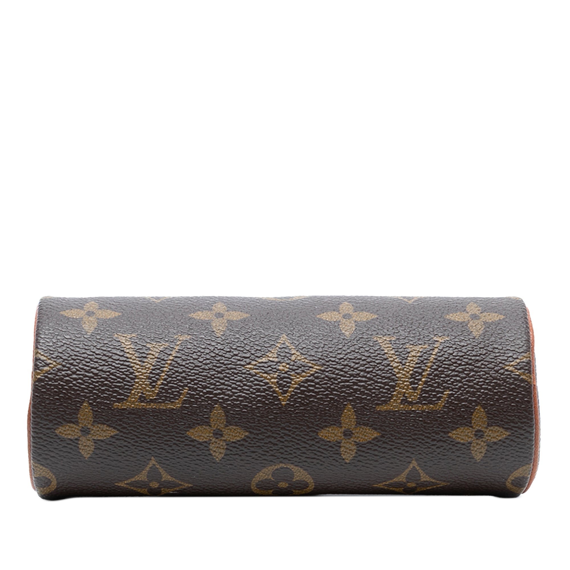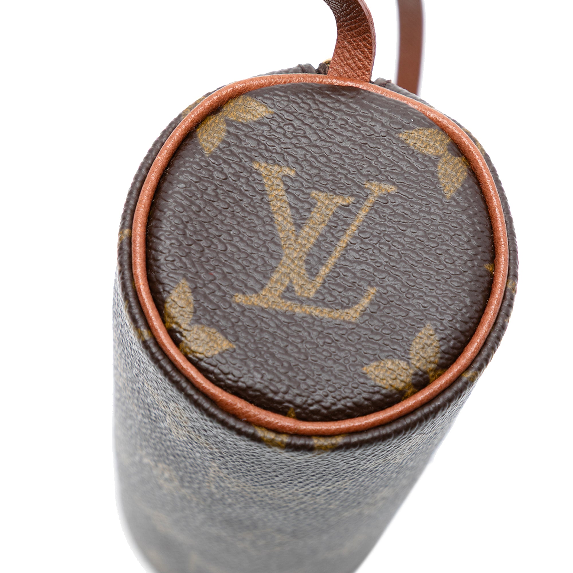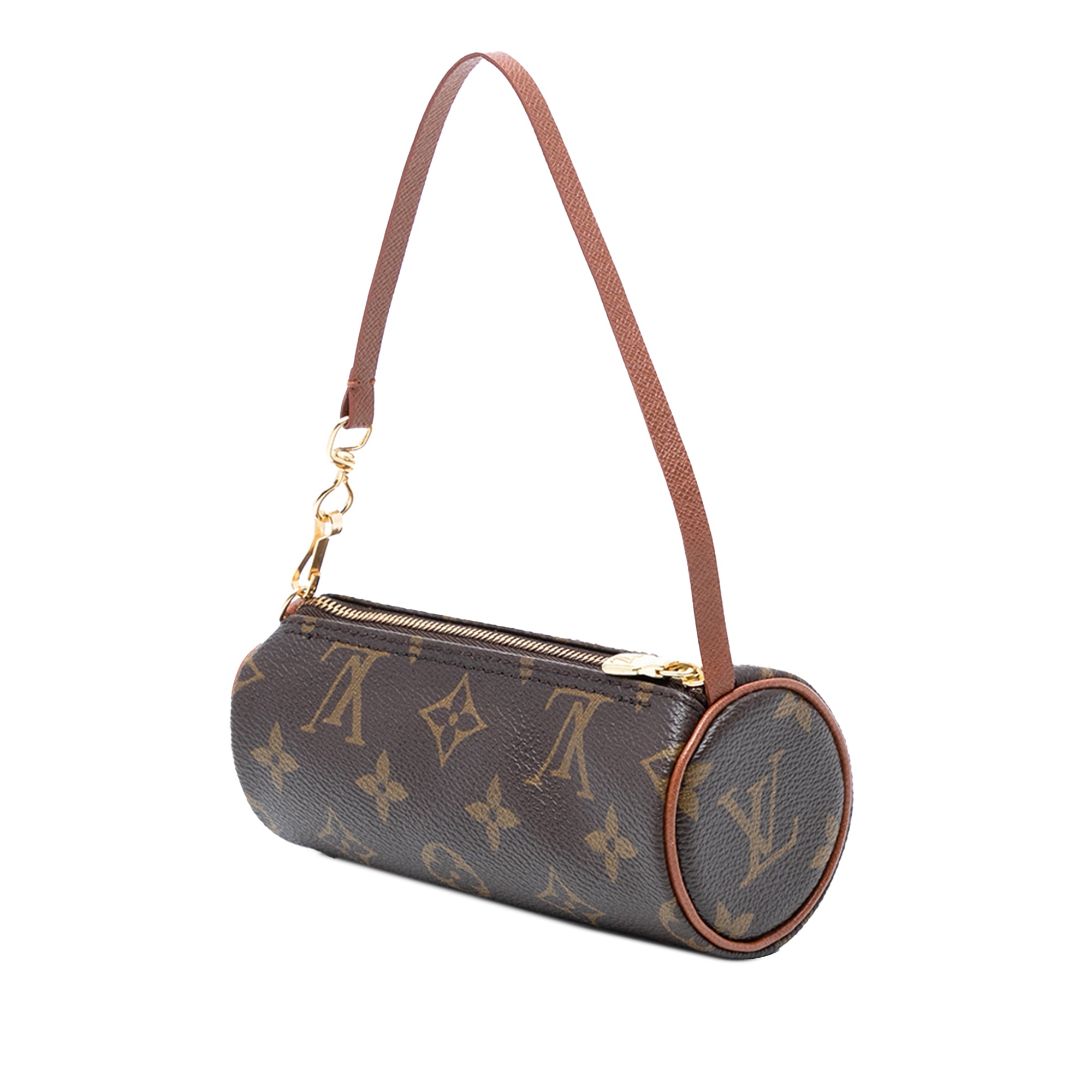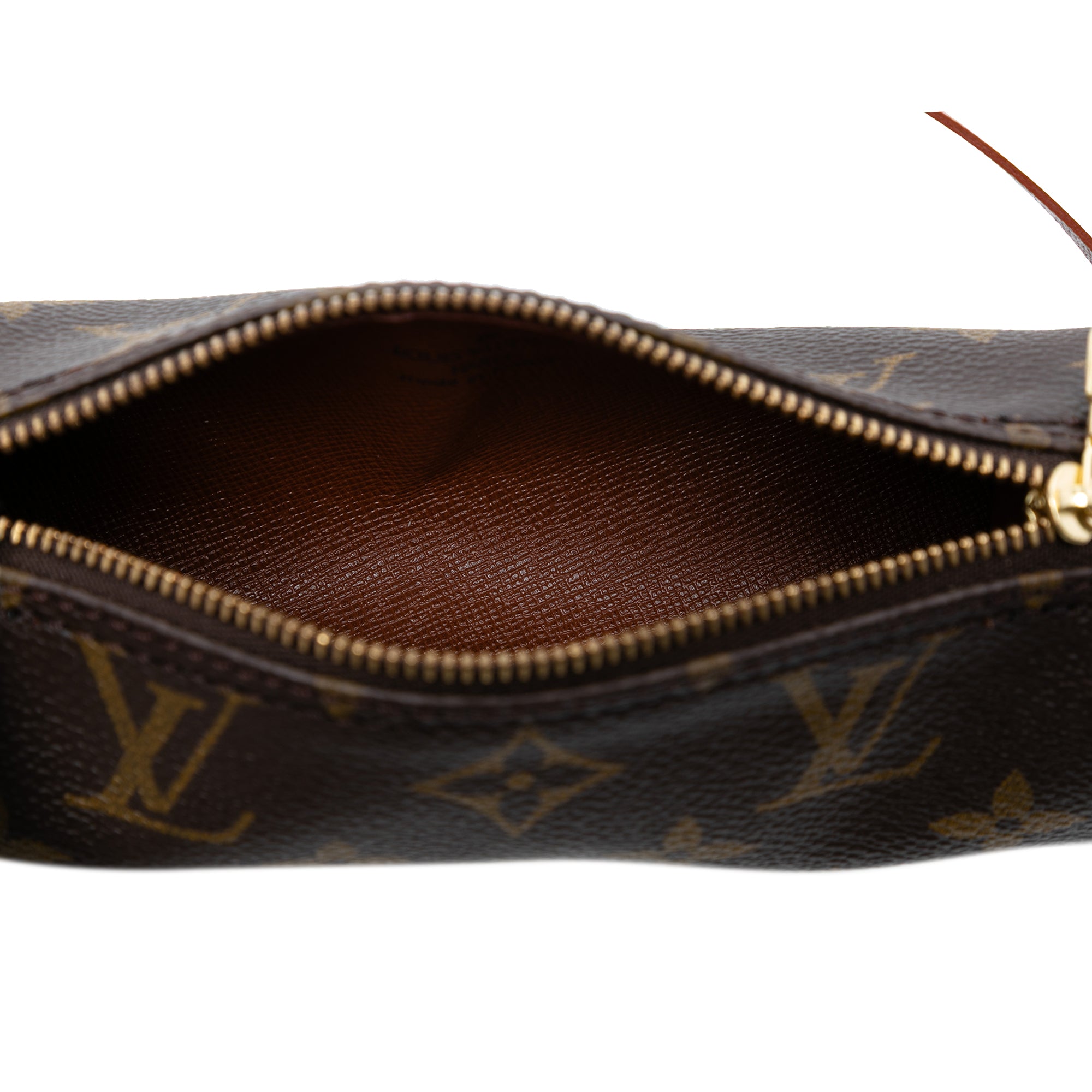 The Pochette Papillon features a monogram canvas body, a detachable leather strap, and a top zip closure. Retail Price: 750.00