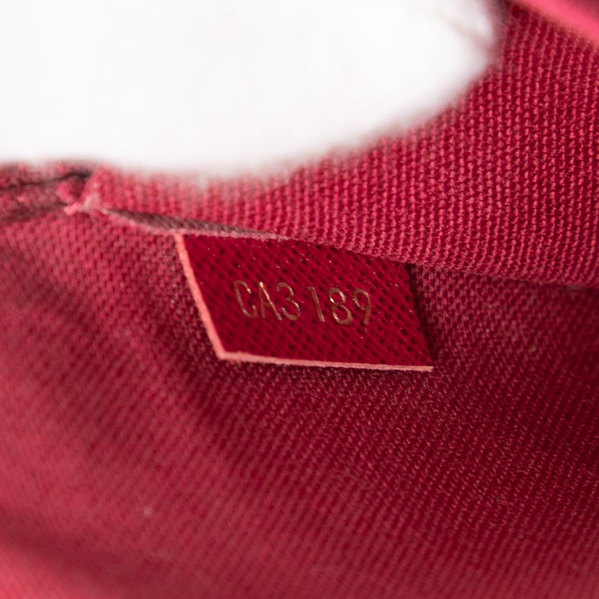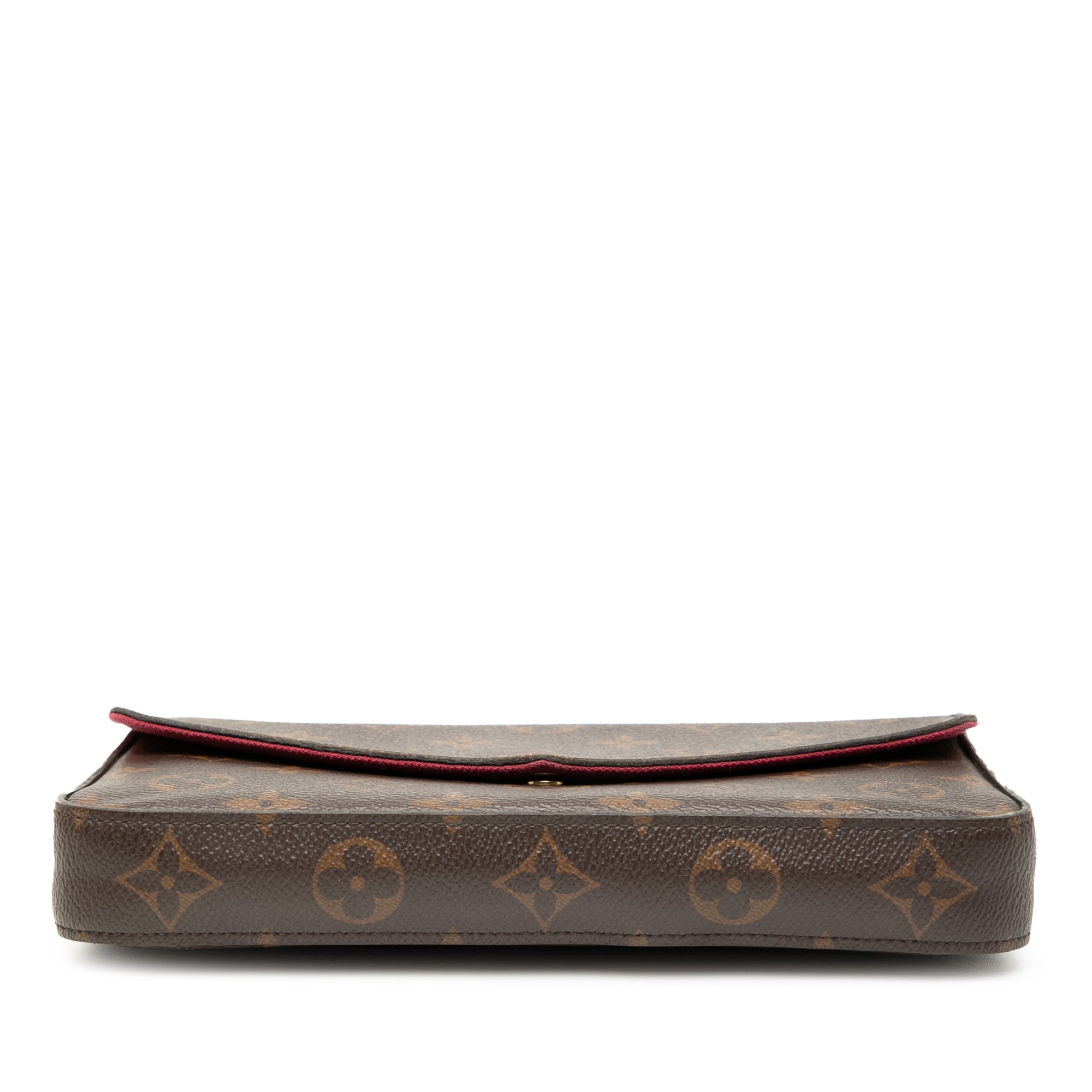The Pochette Felicie crossbody bag features a monogram canvas body, a detachable gold-tone chain shoulder strap, a top flap with snap closure, an interior slip pocket, and pouch inclusions. Retail Price: 1580.00