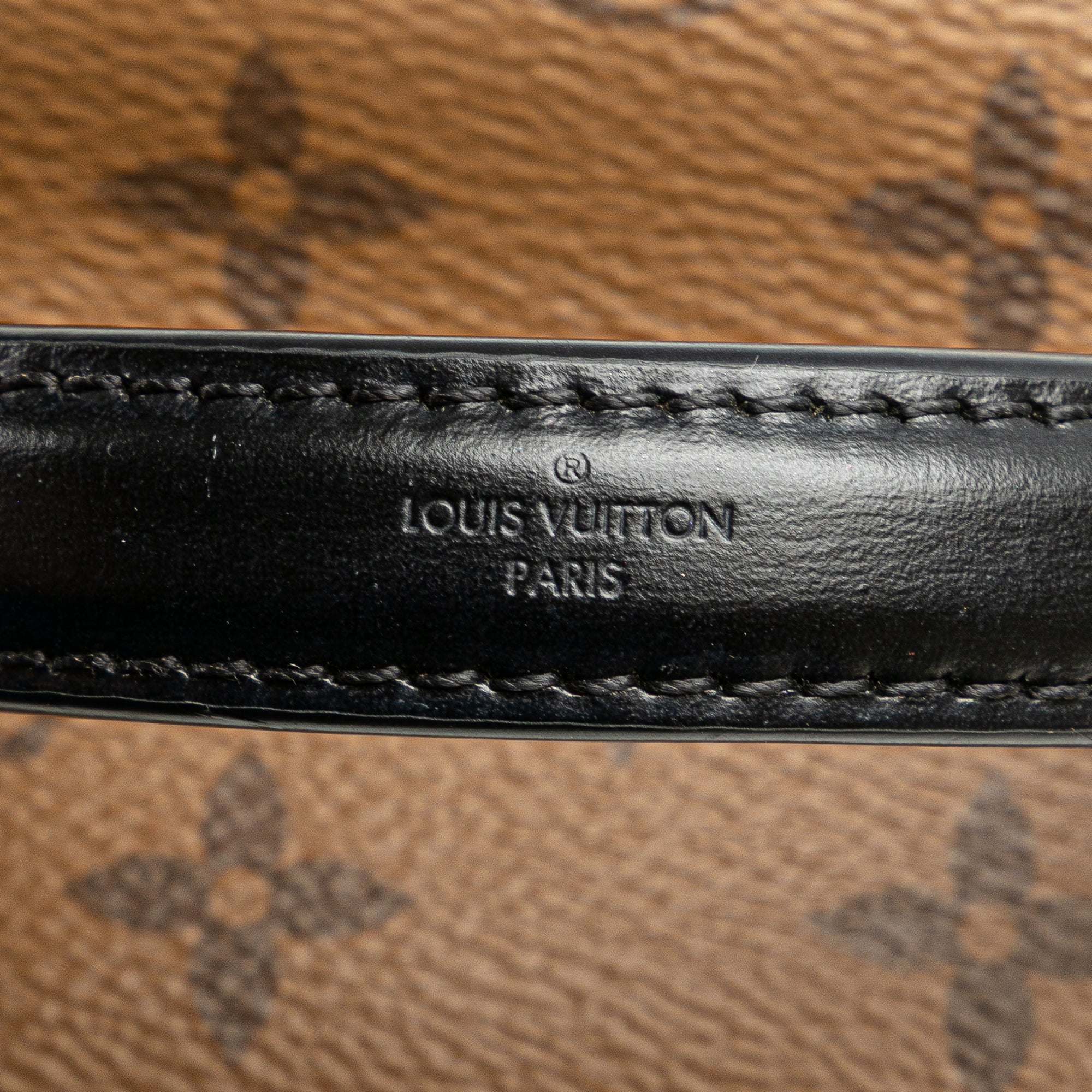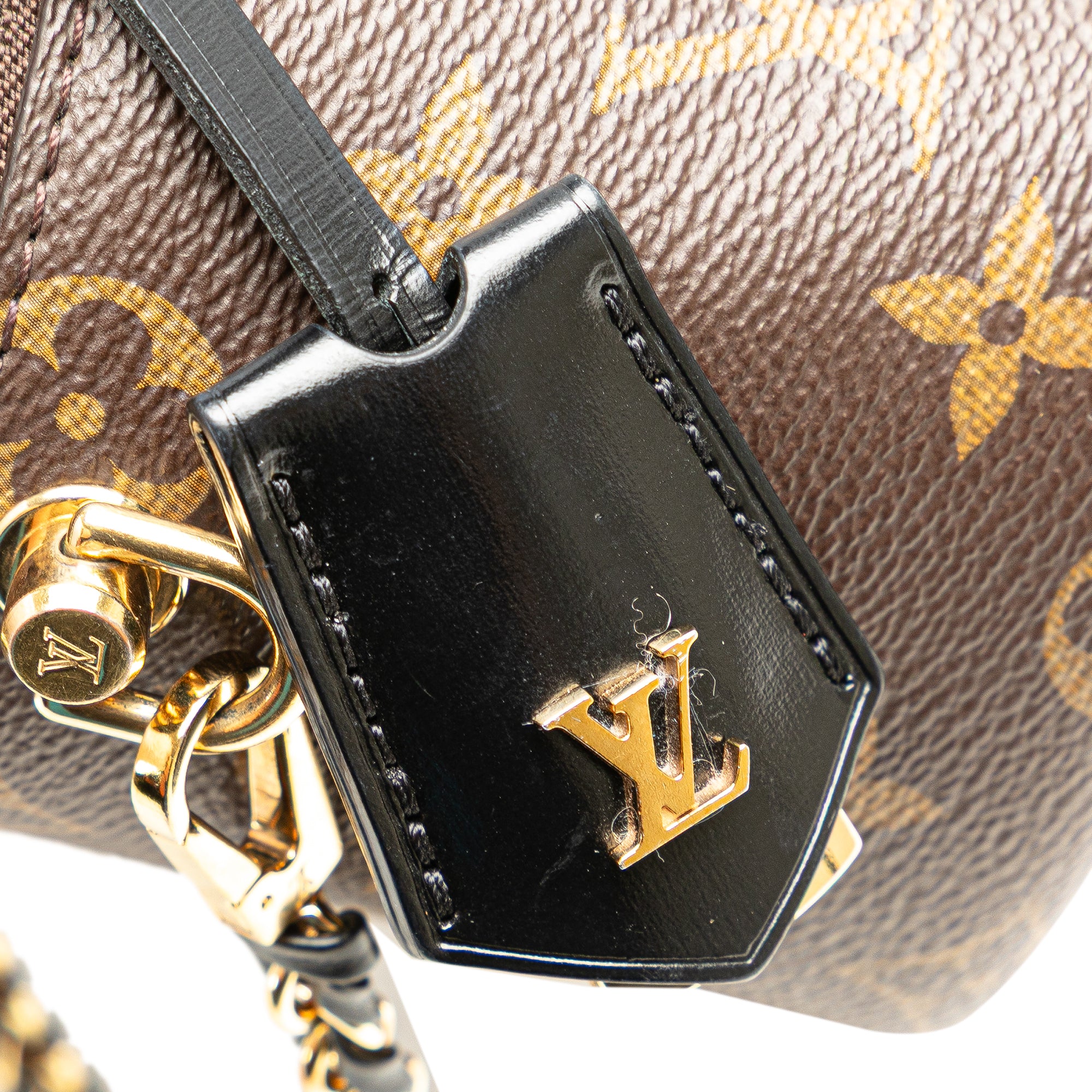 This satchel features a monogram canvas and monogram reverse canvas body, a flat leather top handle, a braided leather and chain shoulder strap, a top zip-around closure, and an interior slip pocket. Retail Price: 3240.00