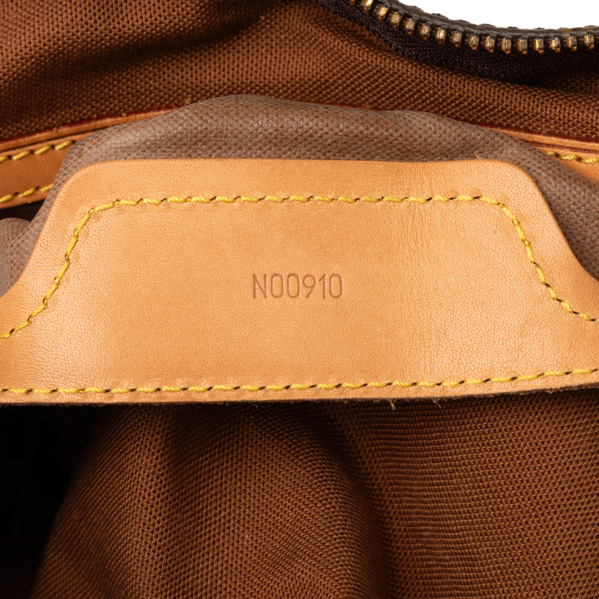 The Sac Flanerie 50 features a monogram canvas body with vachetta leather trim, flat vachetta leather straps, a top zip closure, and an interior slip pocket. Retail Price: 1475.00