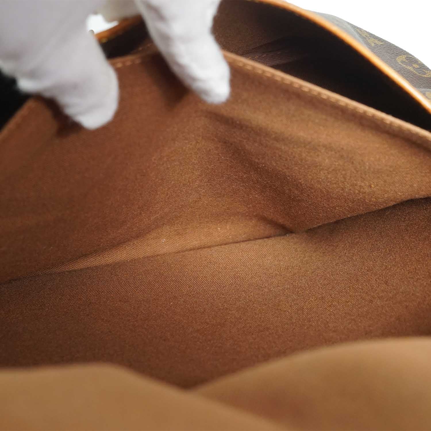 Monogram Saumur 35 Brown Canvas, LeatherDepth: 25cmHeight: 29cmWidth: 35cmHand Drop: 50cmDiscoloration: Some hardware tarnish, some discoloration marks on the leather strap (caused by hardware)Scratch: Slight scratches on the leather parts, some rub marks on the side leather tabs and strapPeeling: Minor leather cracking on the strapSerial code: AR0942