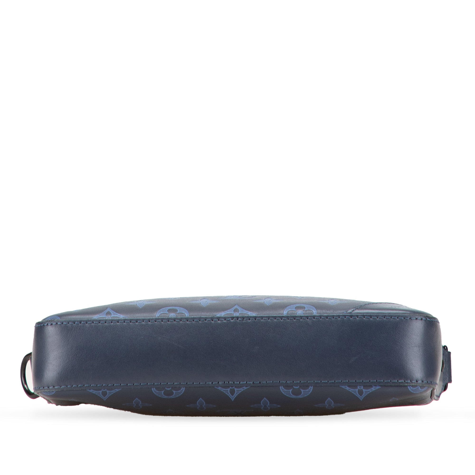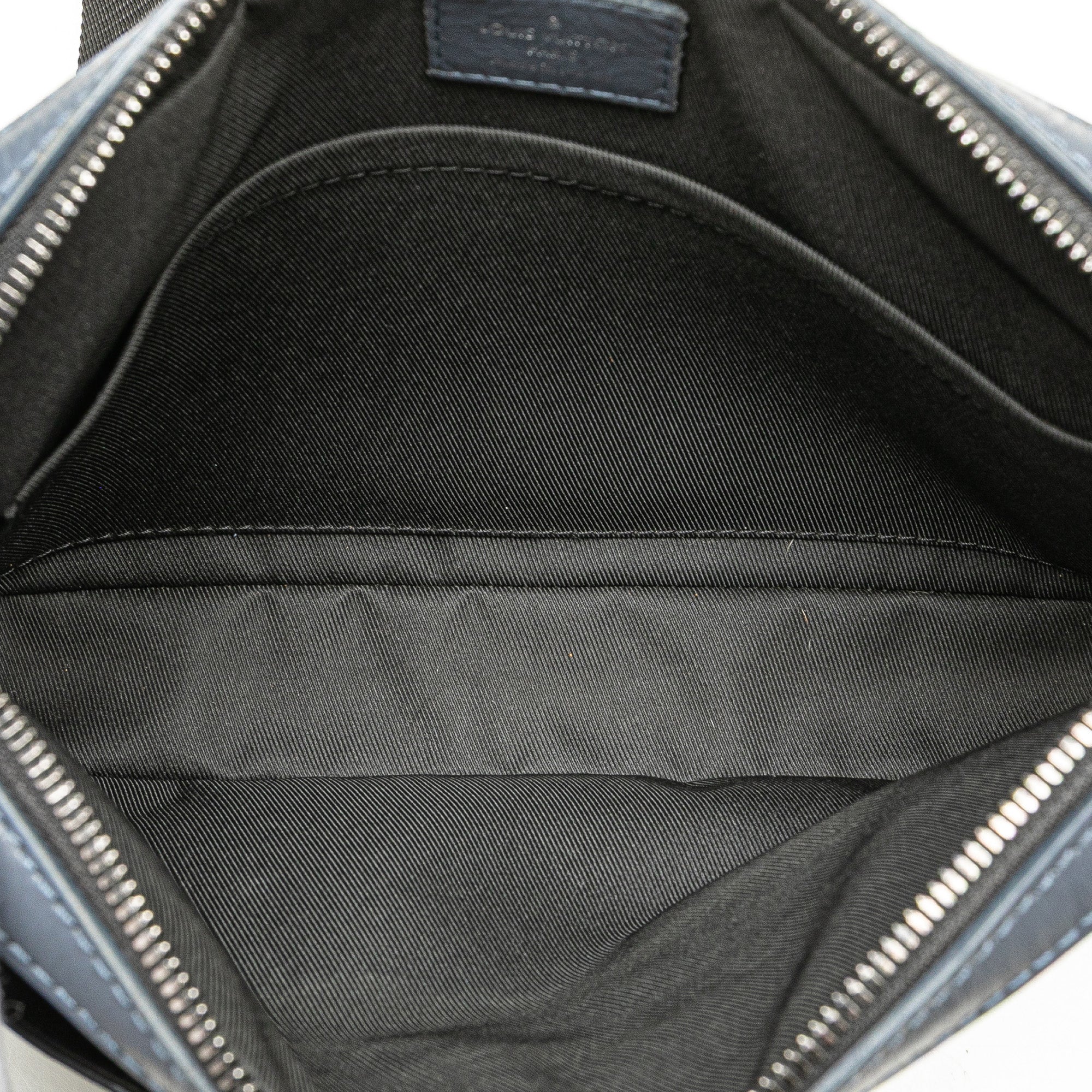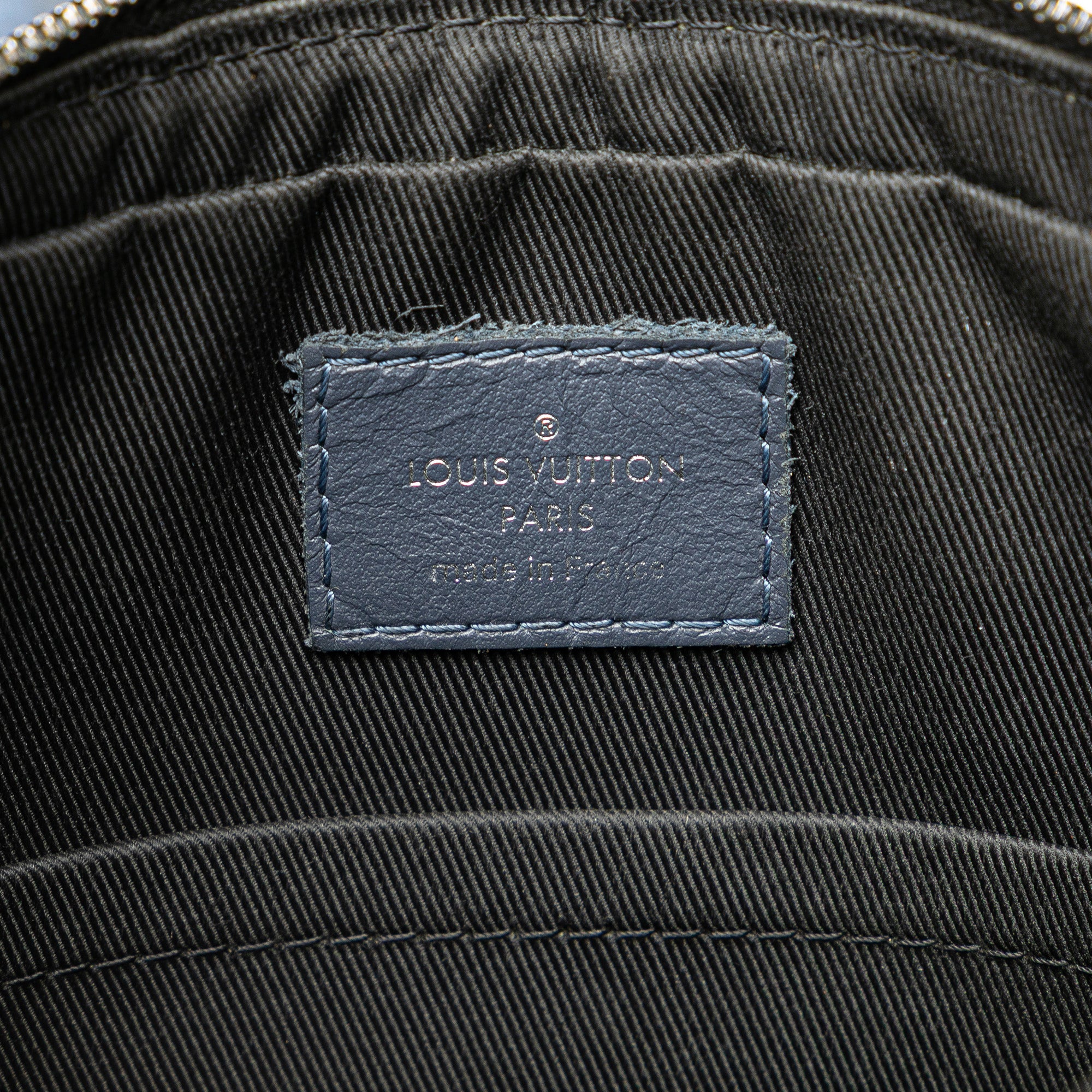 The Duo Messenger features a monogram leather body, a flat adjustable strap, a top zip closure, an exterior front slip pocket, and an interior slip pocket. Retail Price: 2470.00