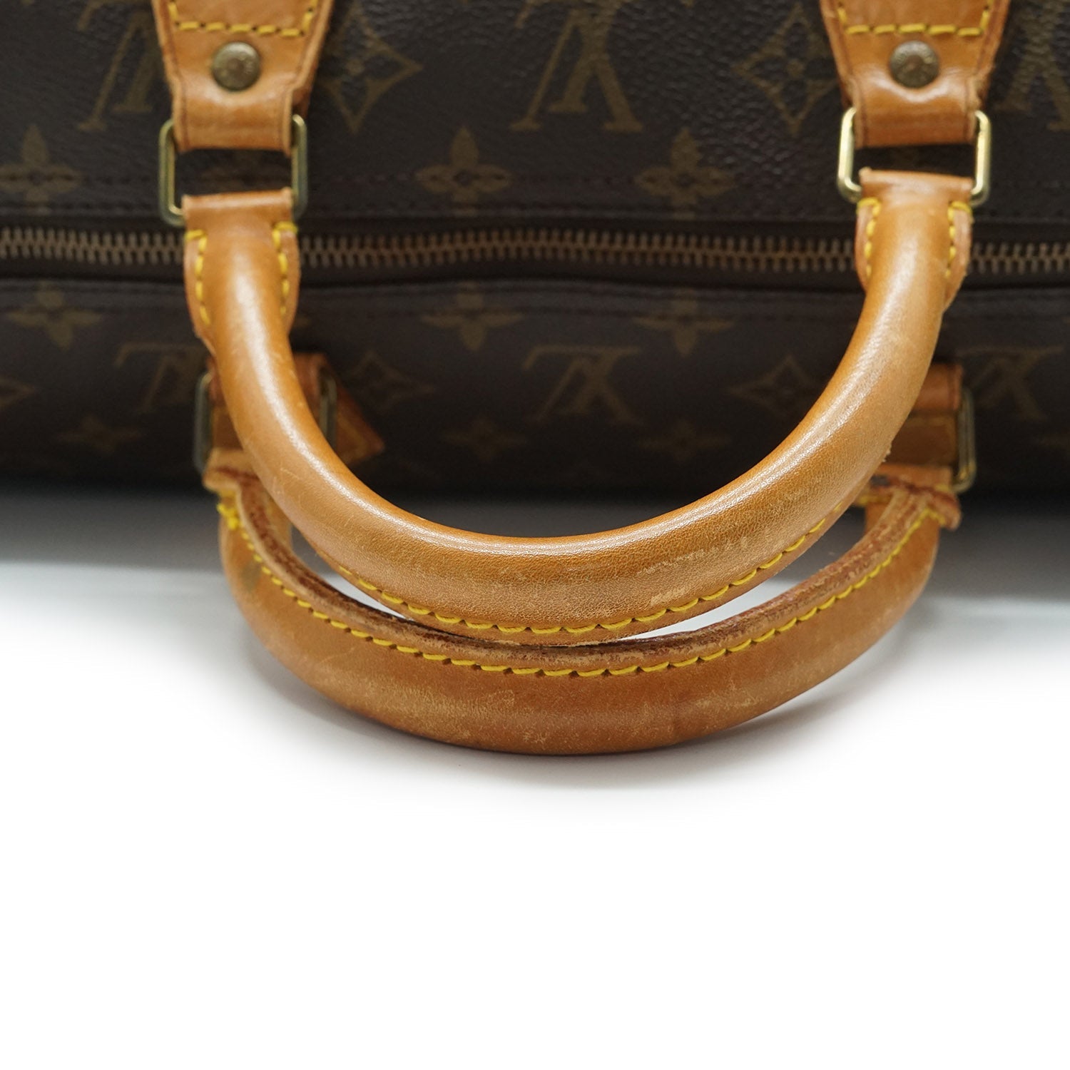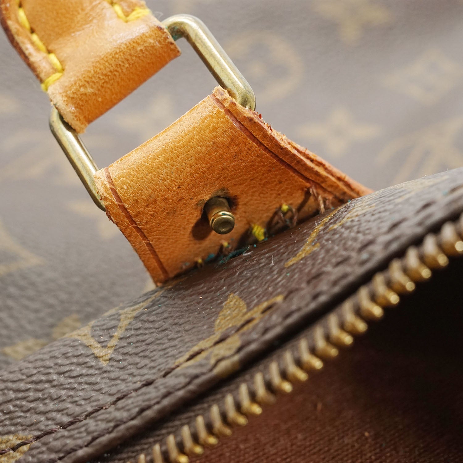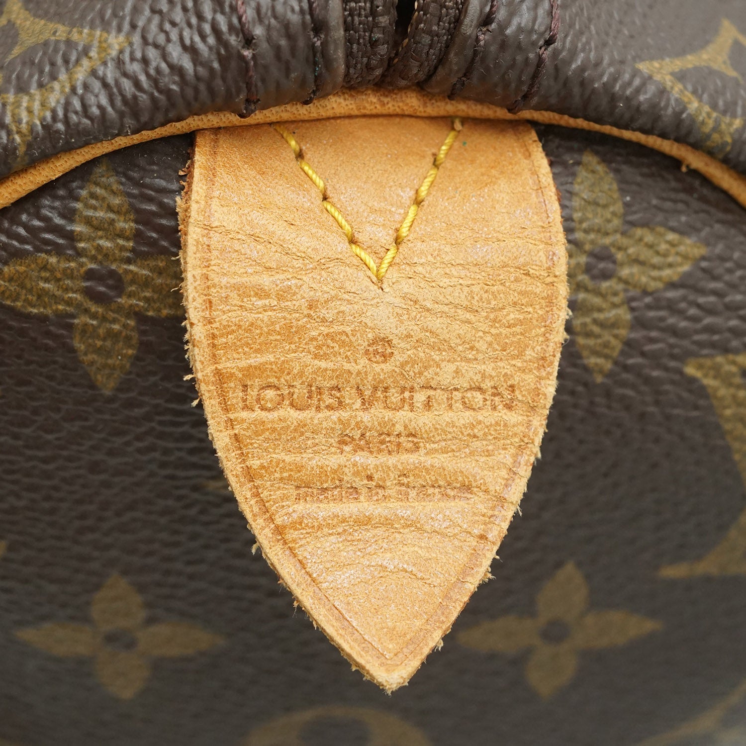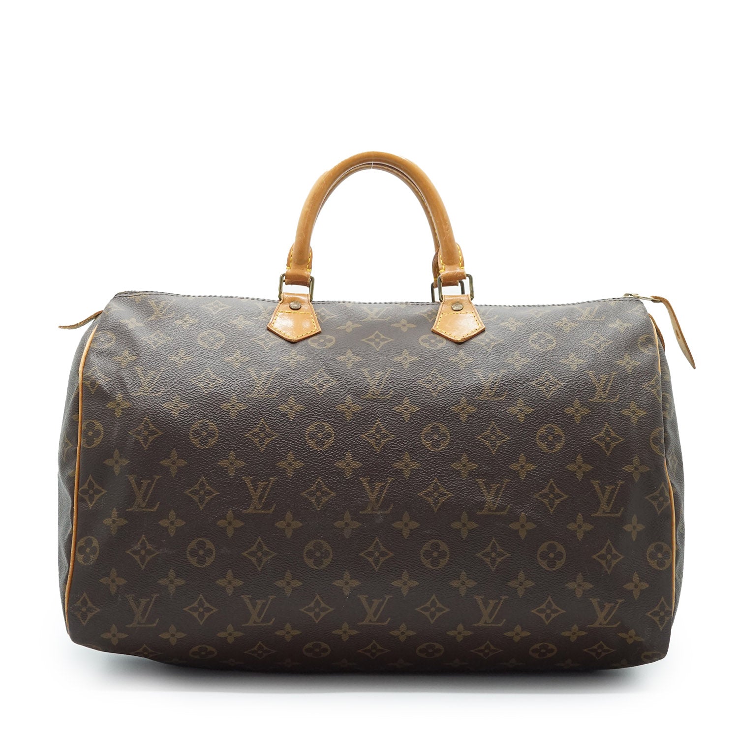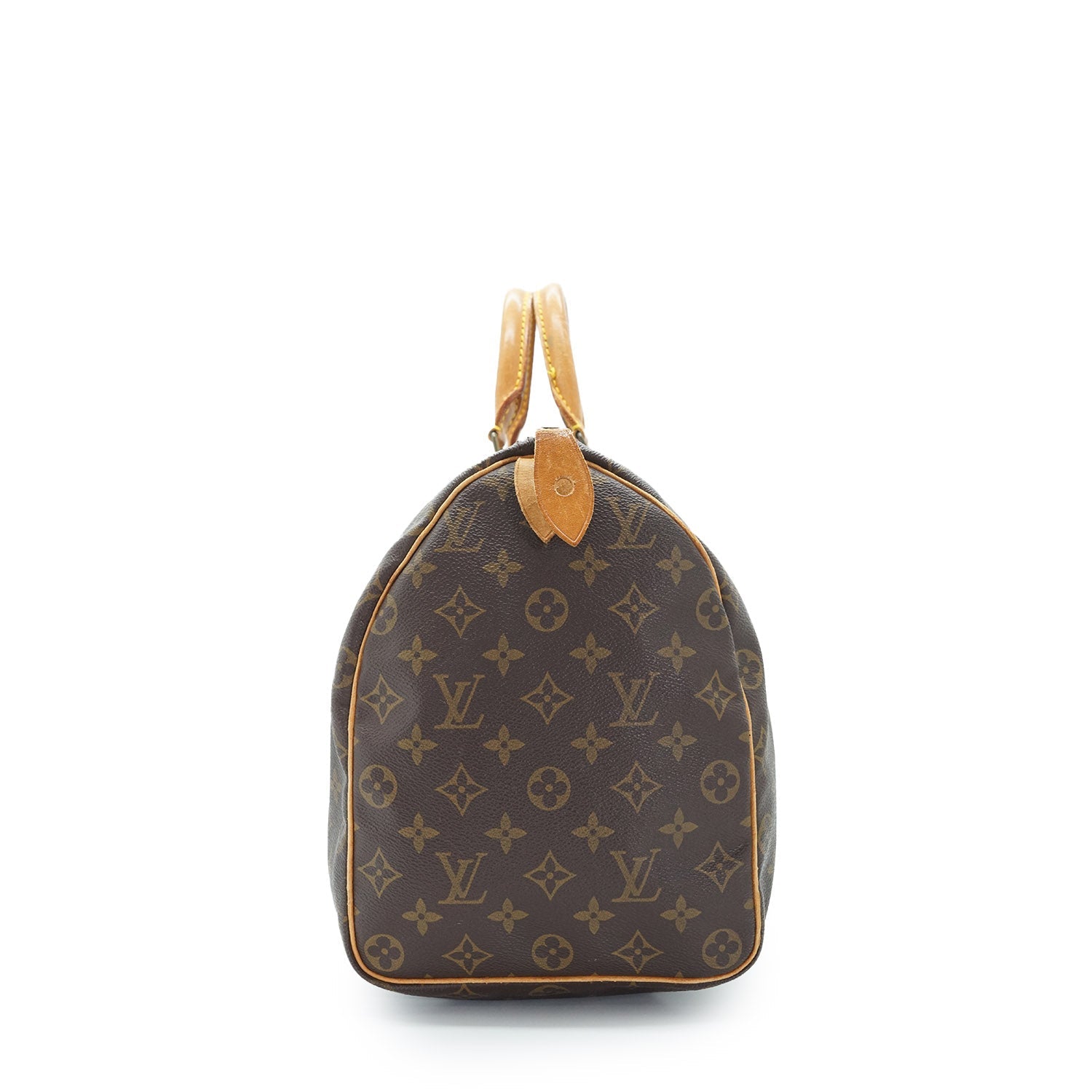 Monogram Speedy 40 Brown Canvas, LeatherDepth: 18.5cmHeight: 25cmWidth: 40cmHand Drop: 10cmDiscoloration: Hardware tarnishScratch: Some scratches on the leather parts, minor corner rubPeeling: Leather cracking on the zipper pull, which is slightly coming apartInclude: Padlock, 2 keysComments: One of the studs holding the top handle is almost coming off, with some loose stitchesSerial code: MB8911
