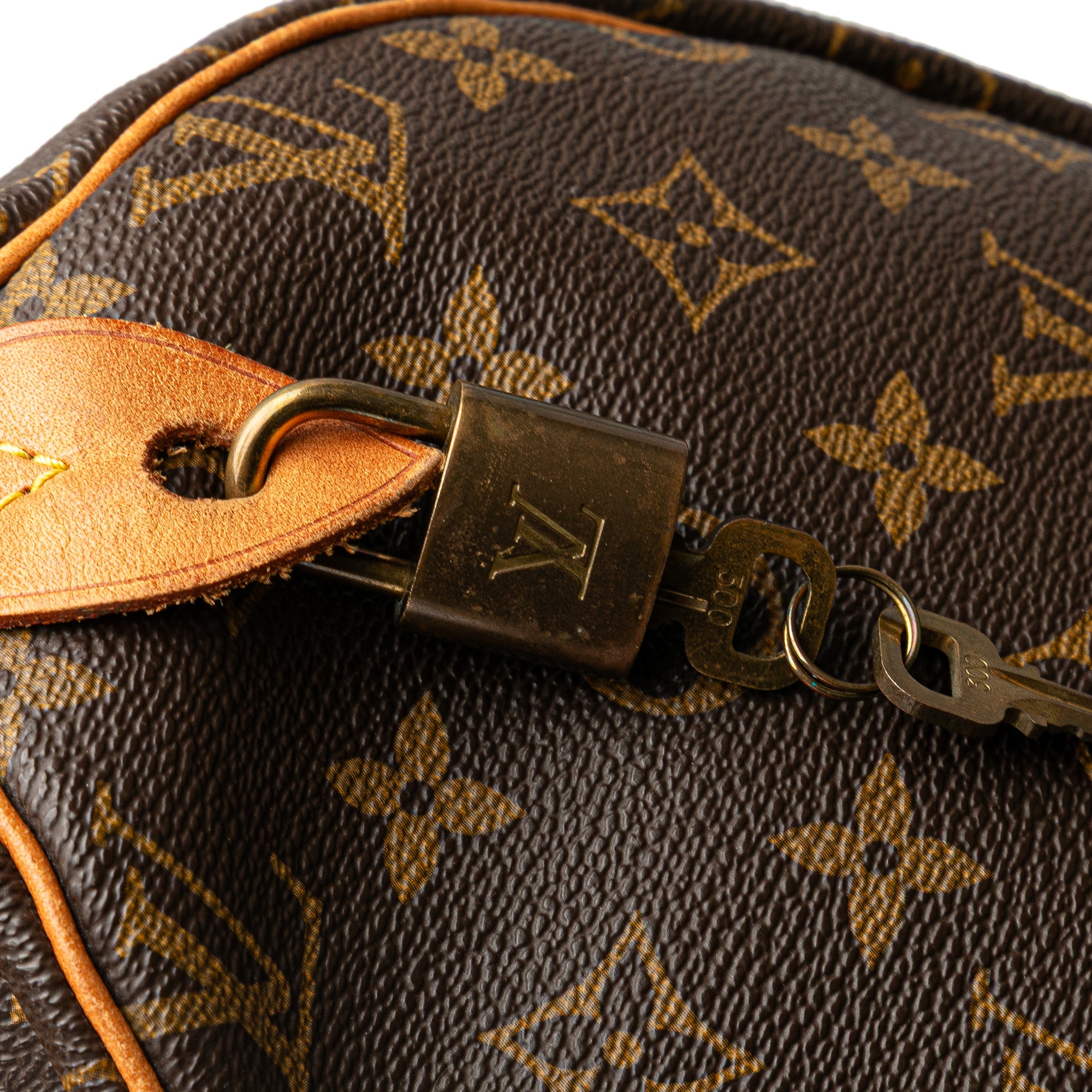 The Speedy 40 features a monogram canvas body, rolled vachetta leather handles, a top zip closure, and an interior slip pocket. Retail Price: 1690.00