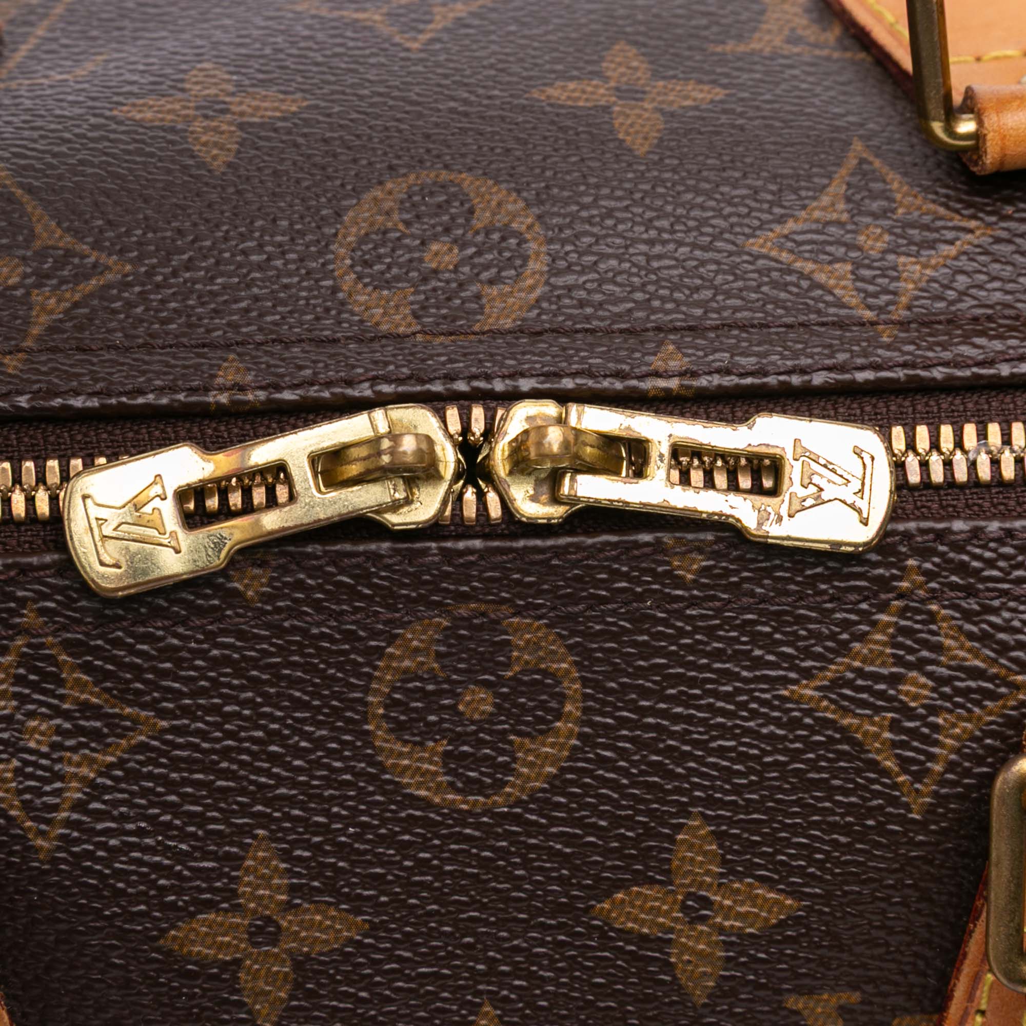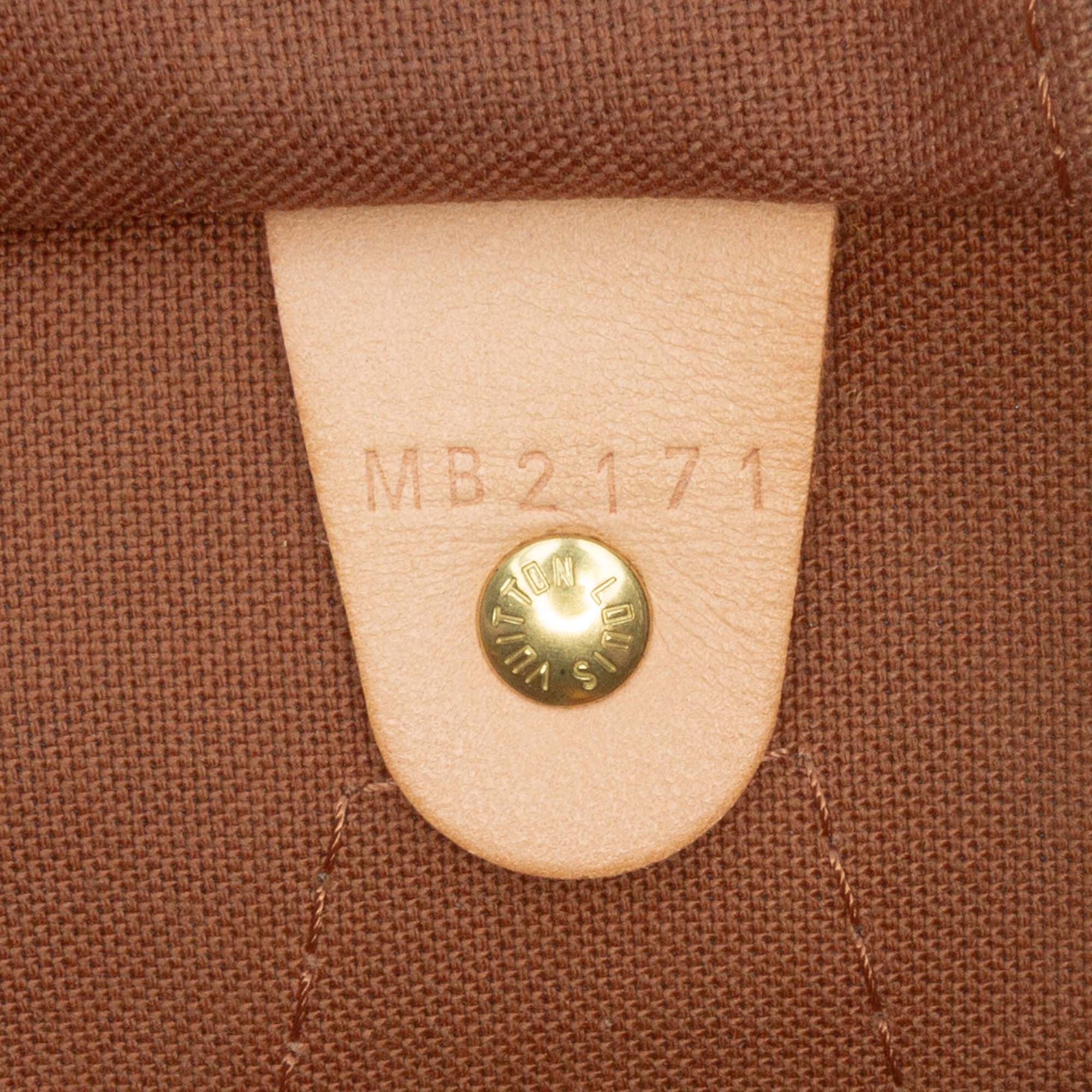 The Speedy Bandouliere 30 features a monogram canvas body, rolled vachetta leather handles, a detachable flat vachetta leather strap, a top zip closure, and an interior slip pocket. Retail Price: 1798.00