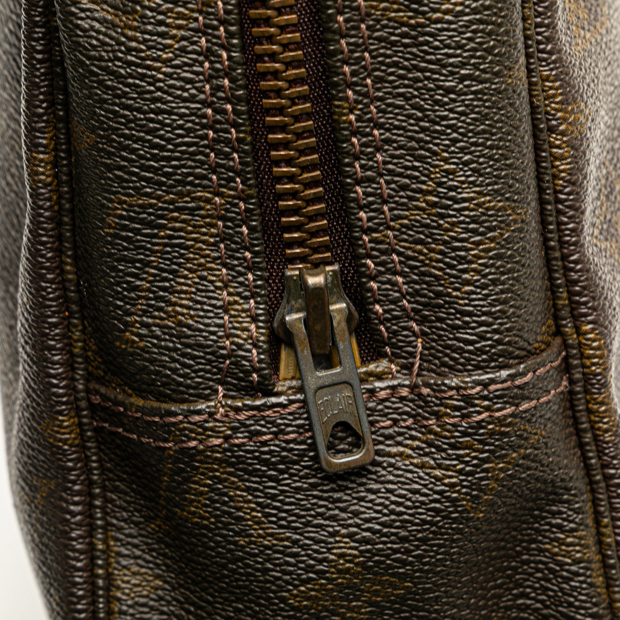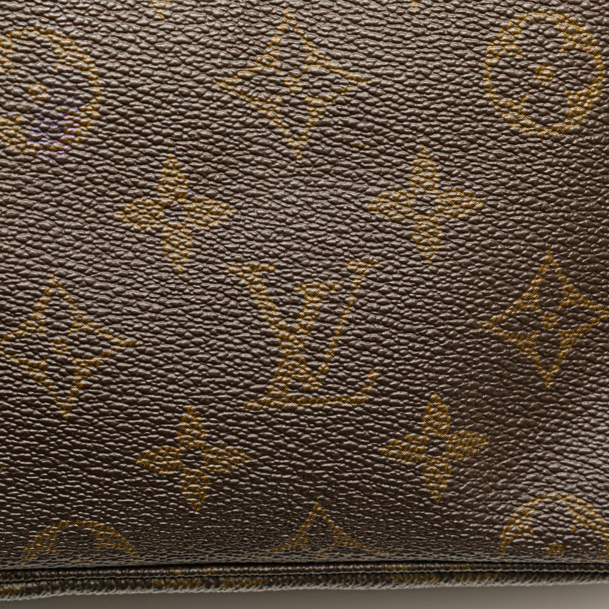 The Trousse Toilette 28 features a monogram canvas body, a top zip closure, and an interior slip pocket. Retail Price: 700.00