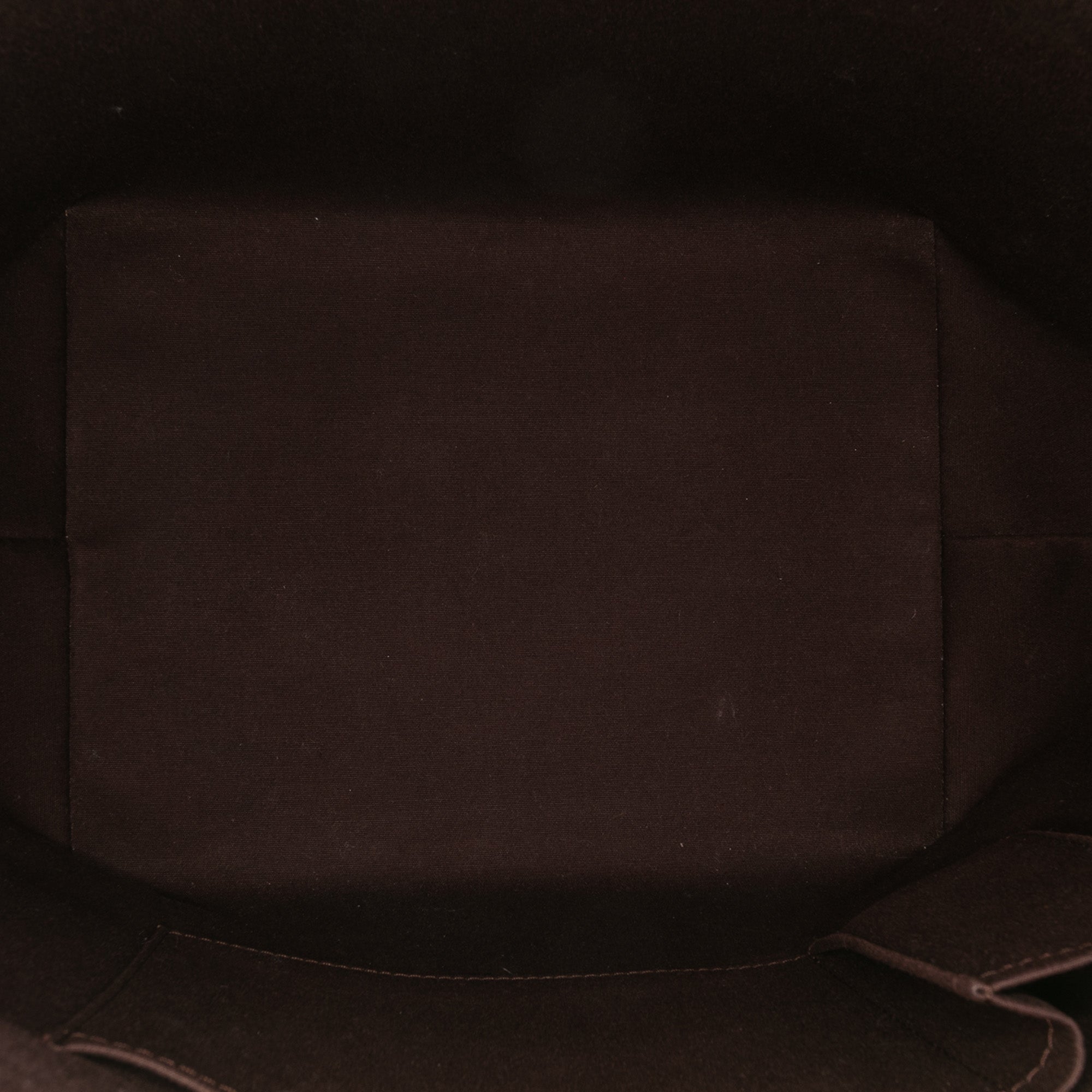 The Bellevue features a vernis leather body, flat vachetta leather shoulder straps, a top zip closure, and interior slip pockets. Retail Price: 800.00