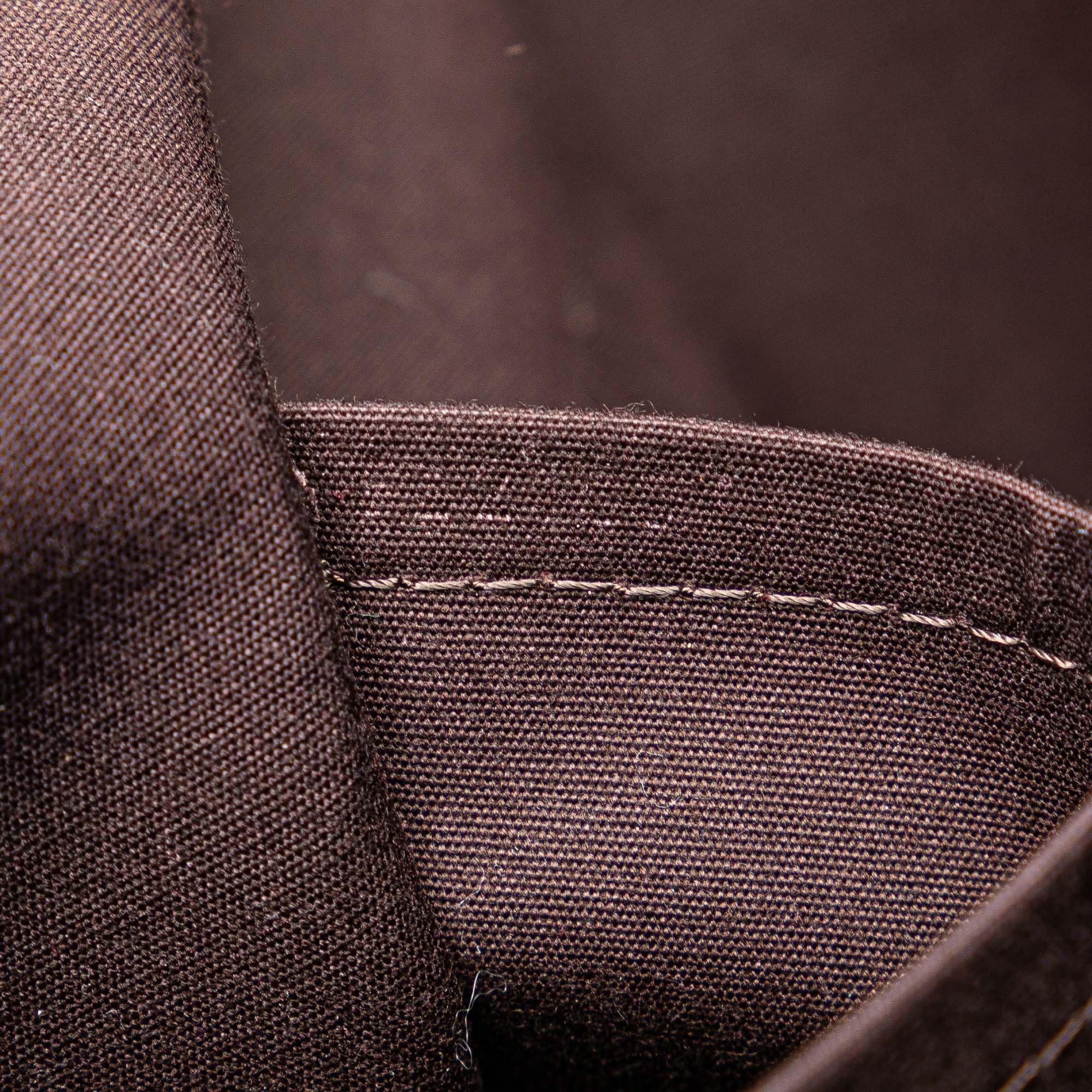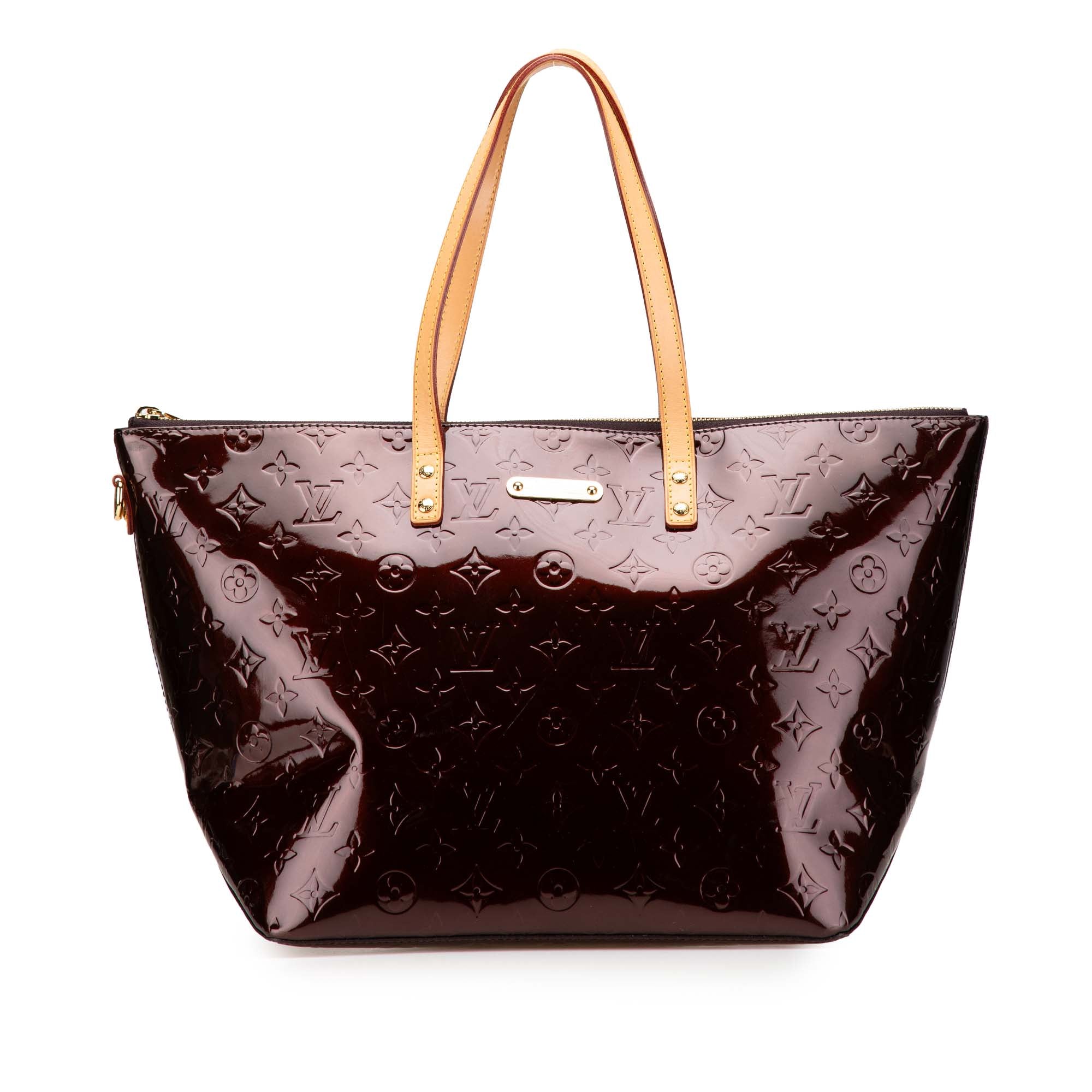 The Bellevue features a monogram vernis leather body, flat vachetta leather shoulder straps, a top zip closure, and interior slip pockets. Retail Price: 800.00