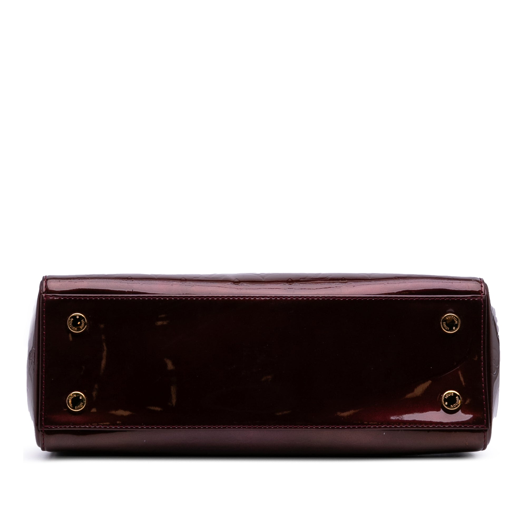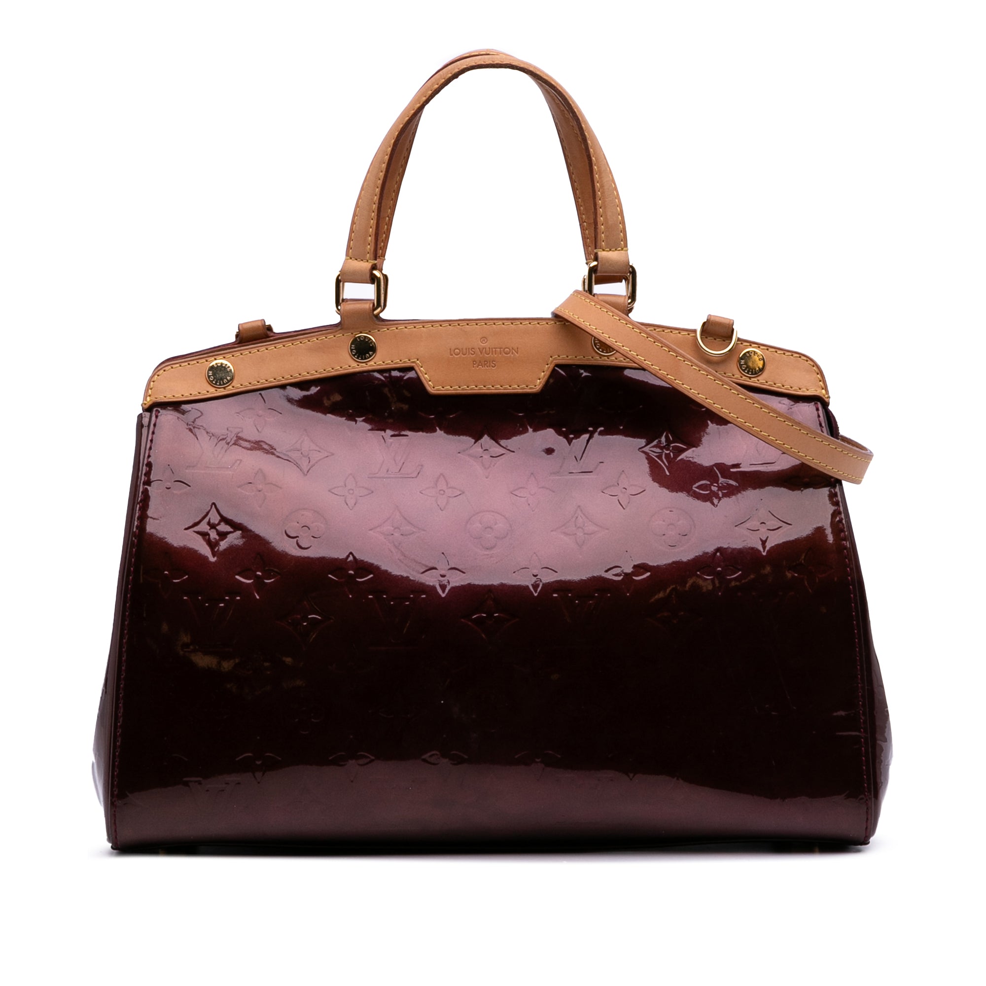 The Brea MM features a vernis leather body with vachetta leather trim, flat vachetta leather top handles, a top zip closure, and interior zip and slip pockets. Retail Price: 2730.00