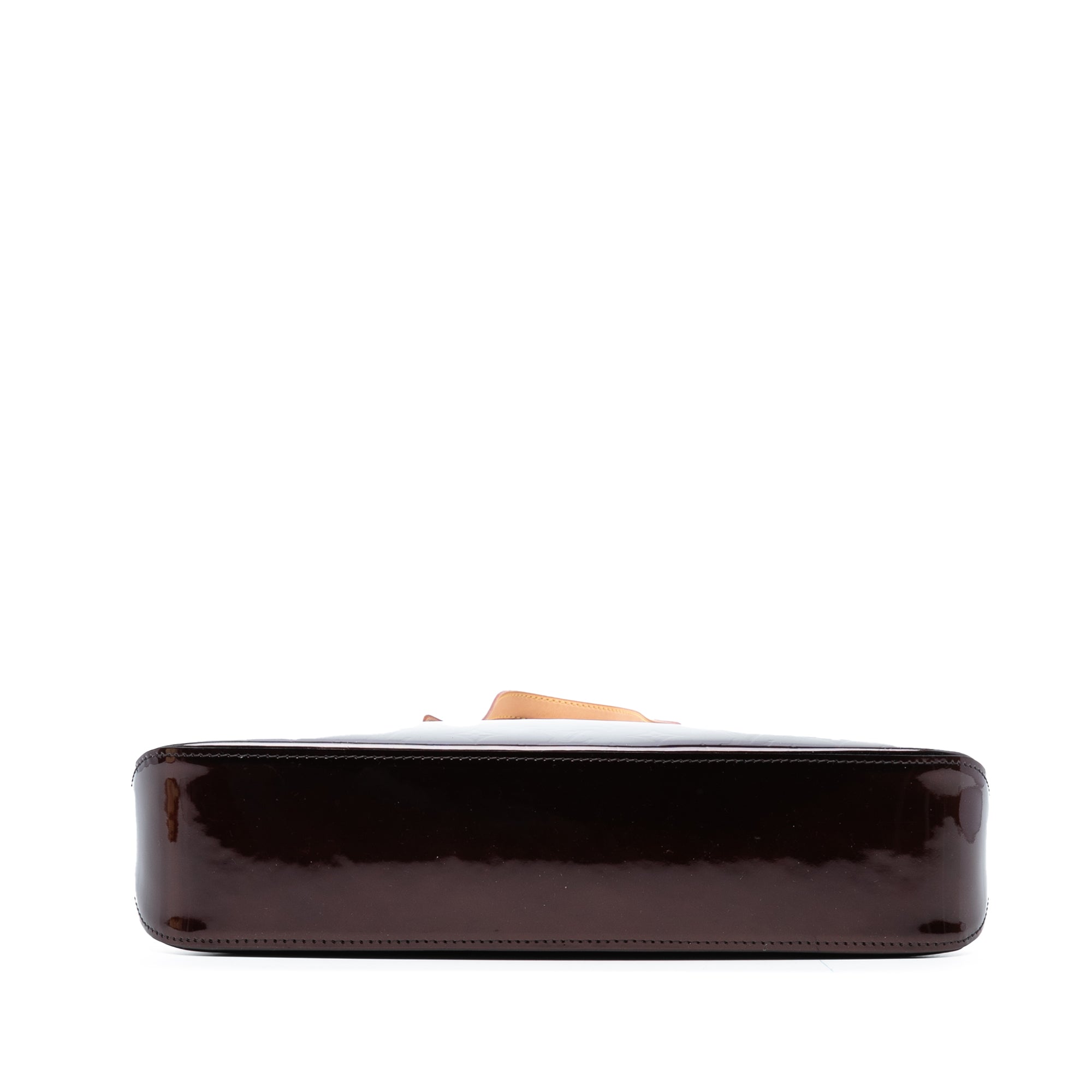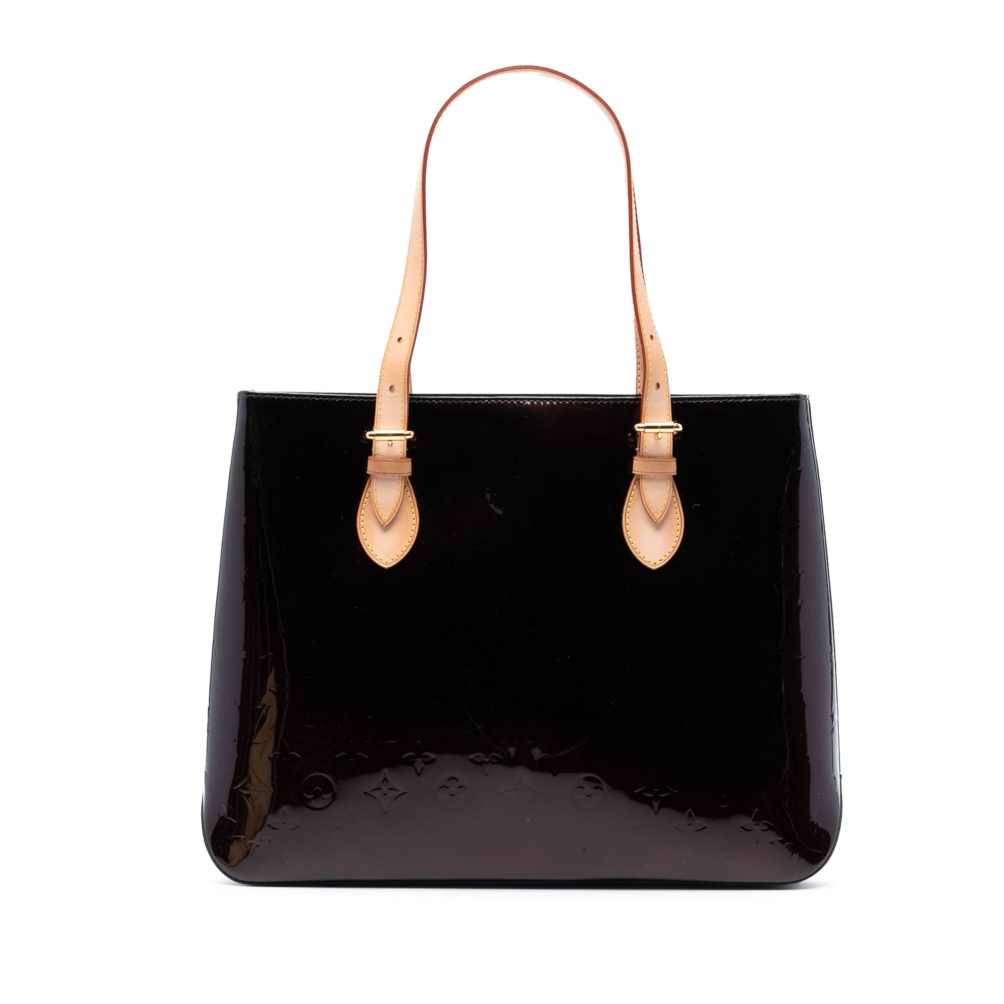 The Brentwood features a monogram vernis leather body, flat vachetta leather straps, a top zip closure, and interior slip pockets. Inclusion: Dust bag, box. Retail Price: 800.00