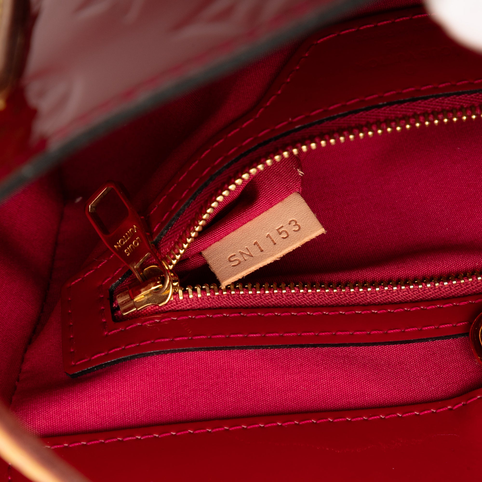 The Catalina BB features a monogram vernis leather body, flat vachetta leather handles, an open top, and an interior zip pocket. Inclusion: Dust bag. Retail Price: 990.00