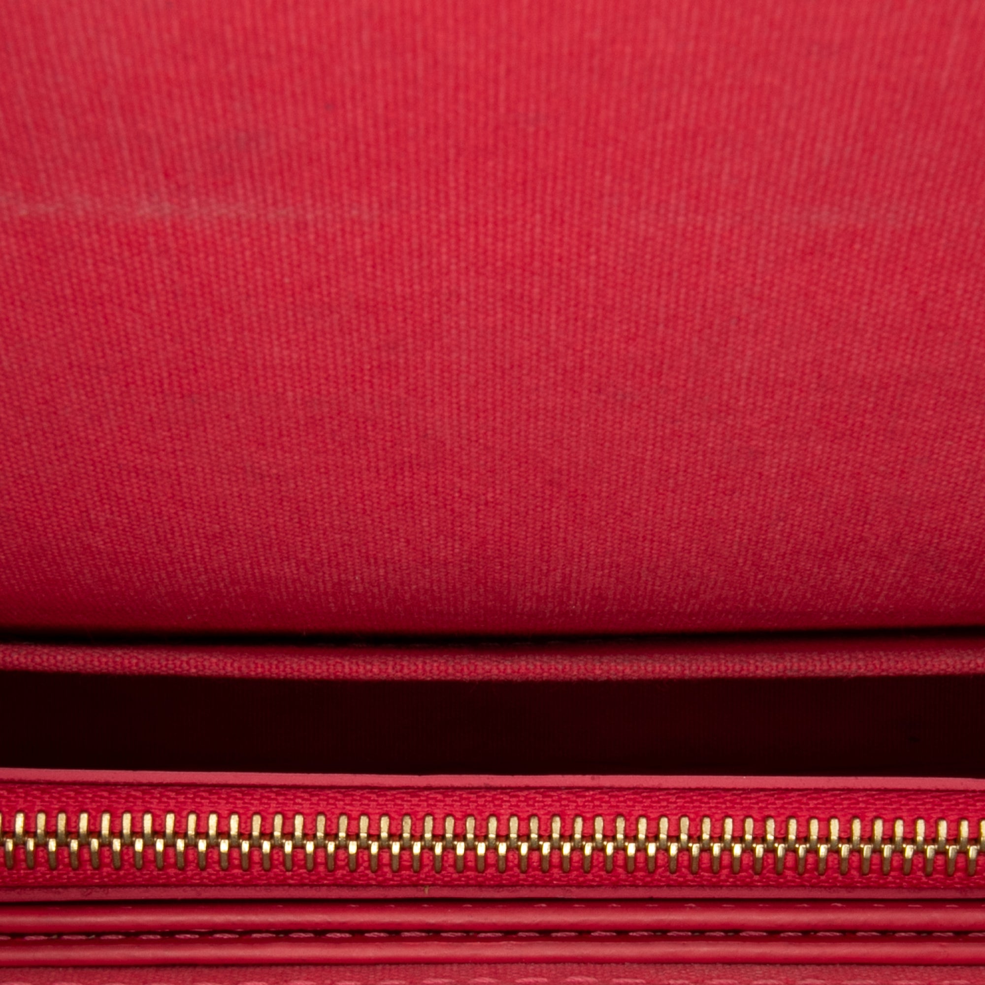 The Pochette Felicie features a monogram vernis body, a detachable chain link shoulder strap, a flap with a snap button closure, an interior slip pocket, and pouch inclusions. Retail Price: 1525.00