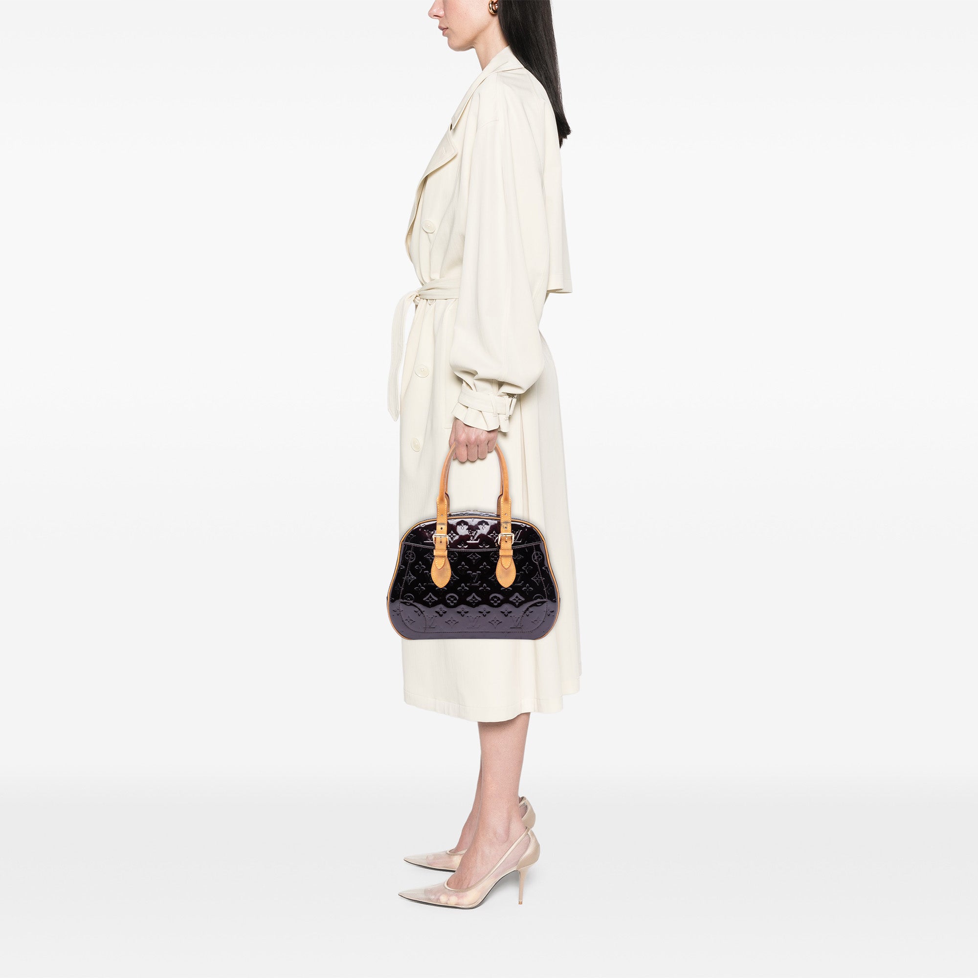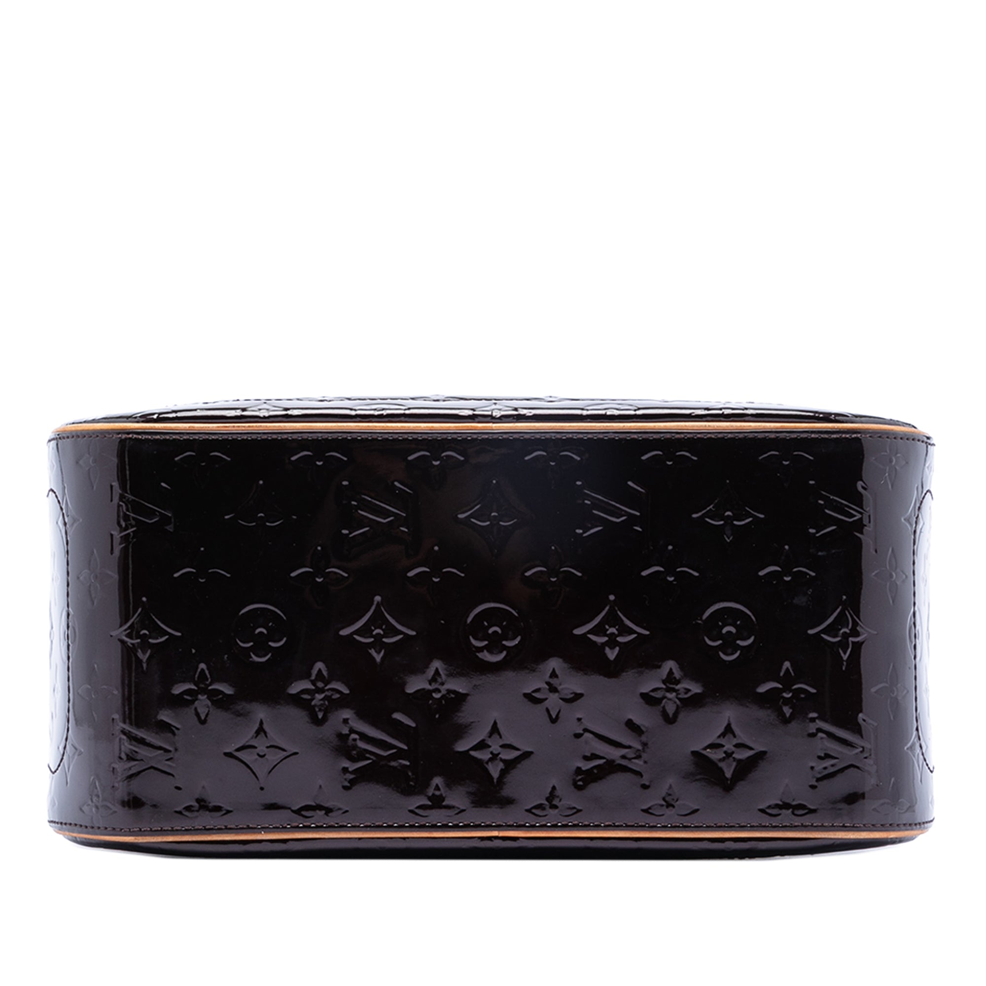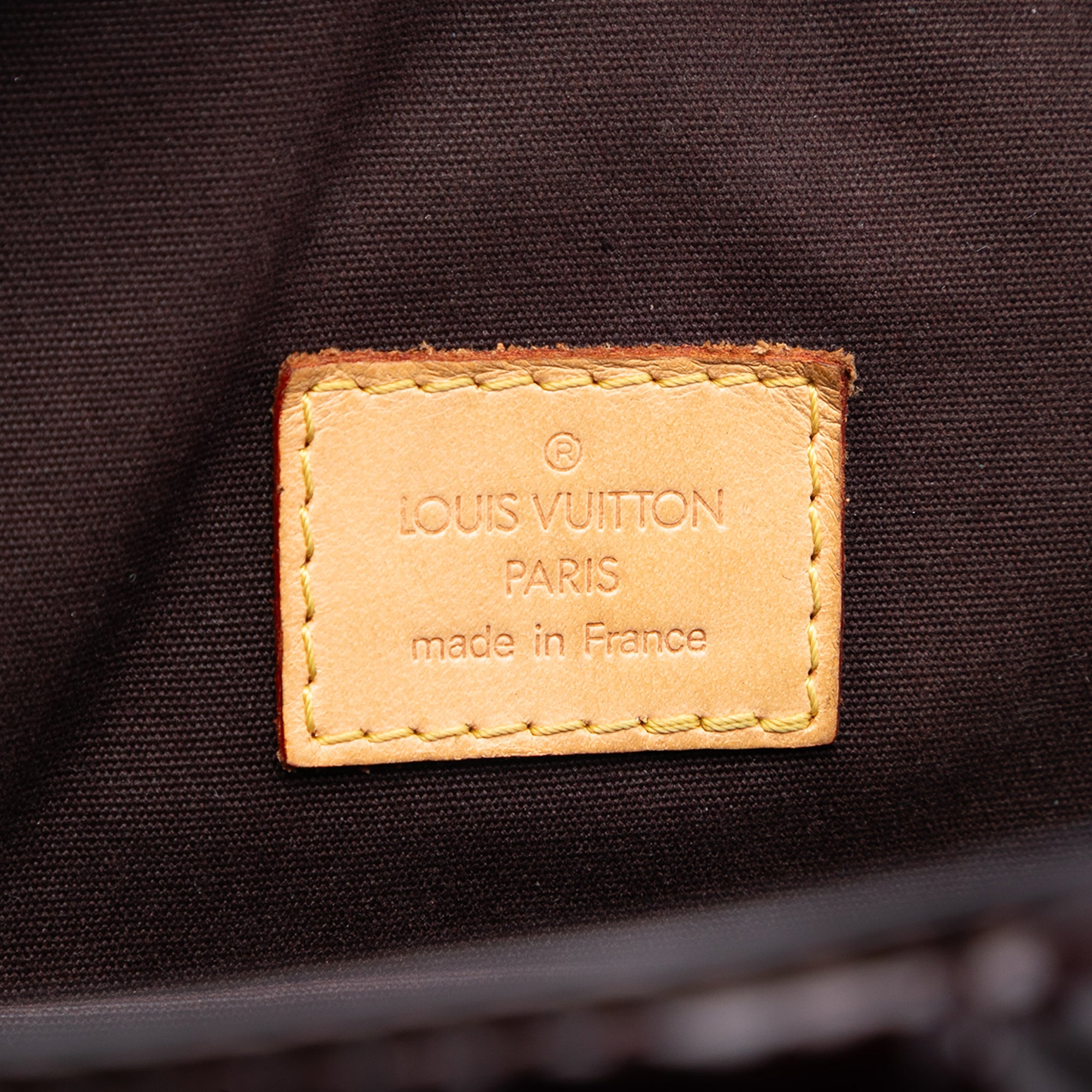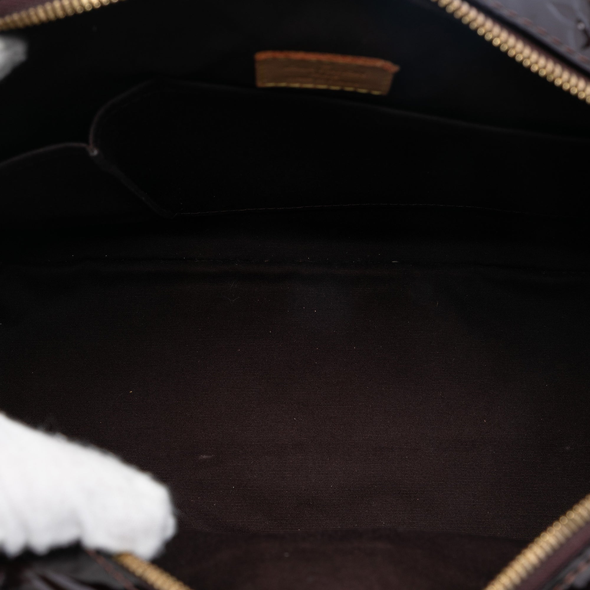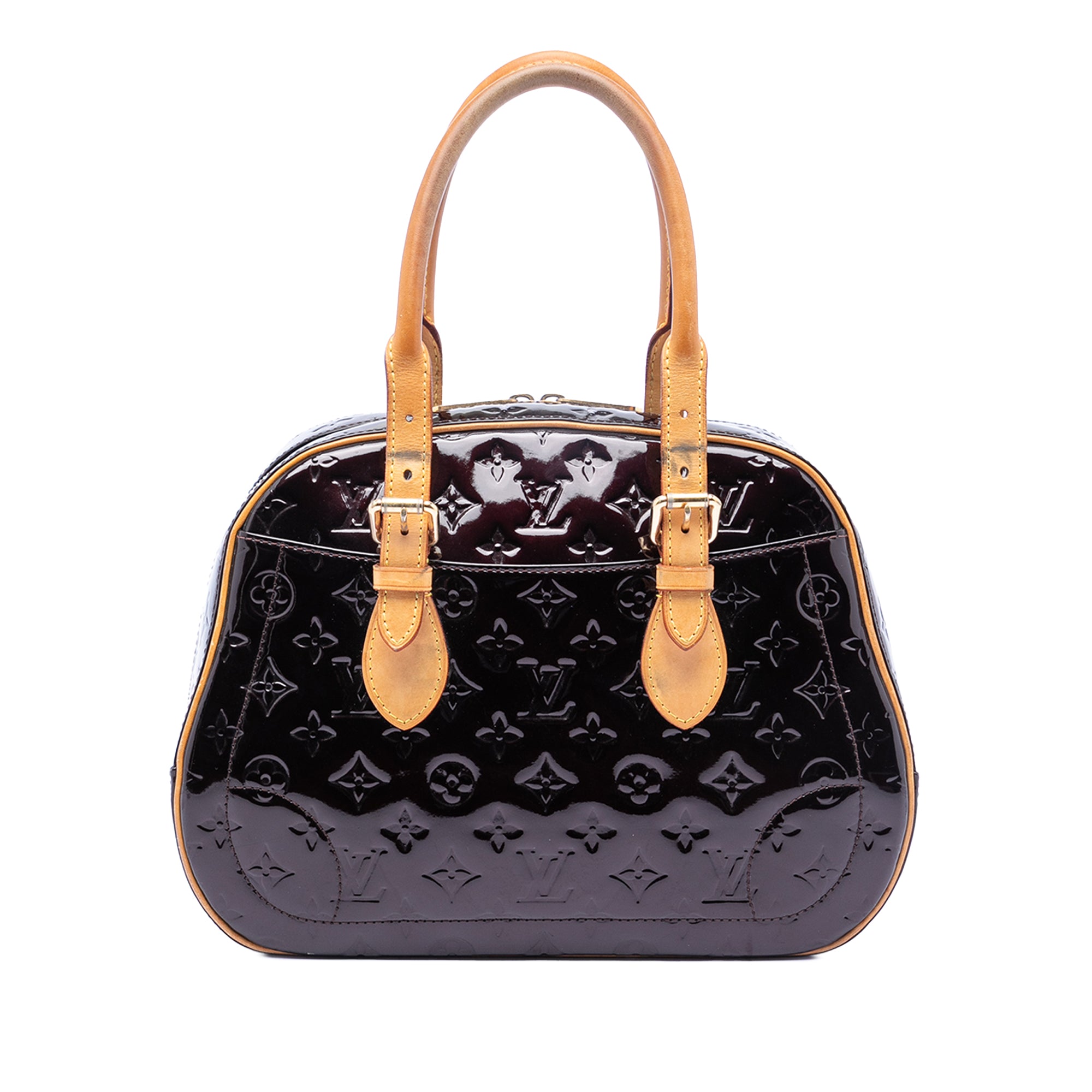 The Summit Drive features a vernis leather body, rolled vachetta leather handles, a top zip closure, exterior front and back slip pockets, and interior slip pockets. Retail Price: 1513.00