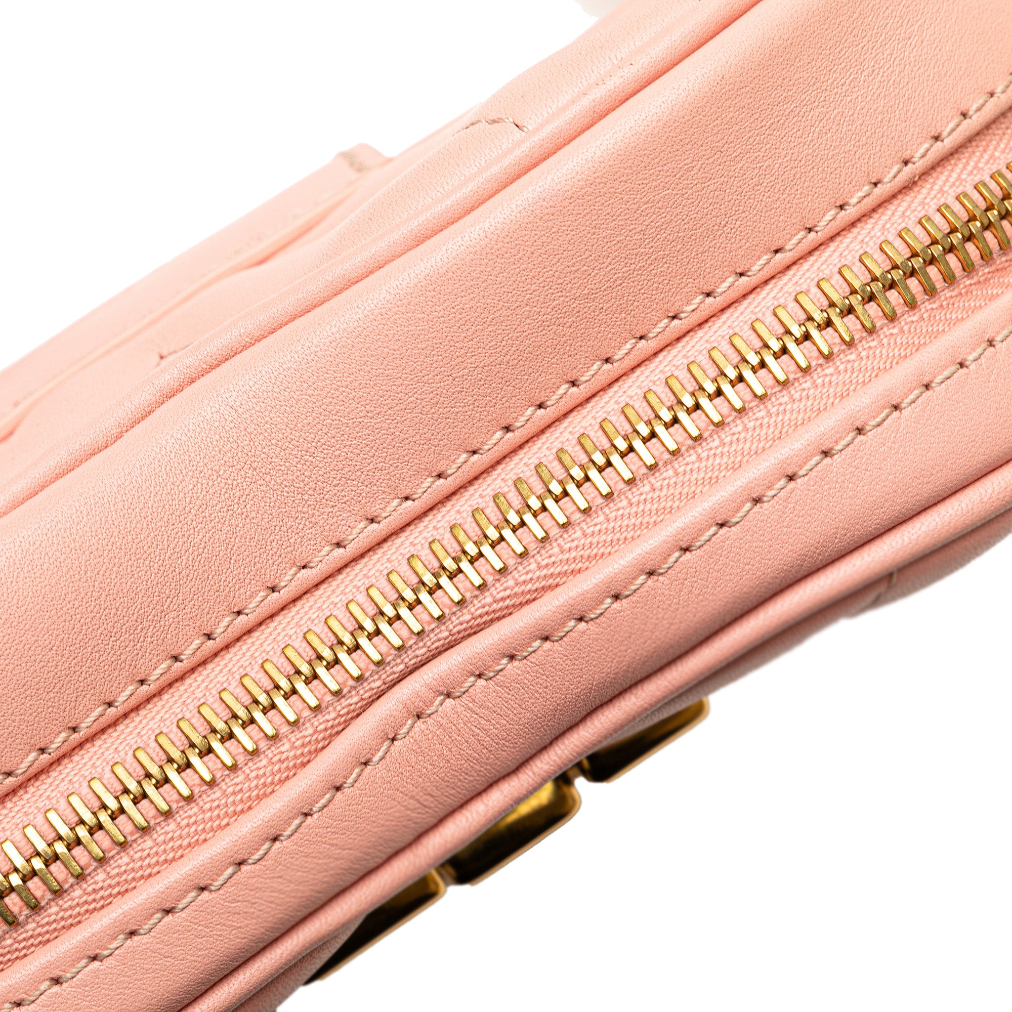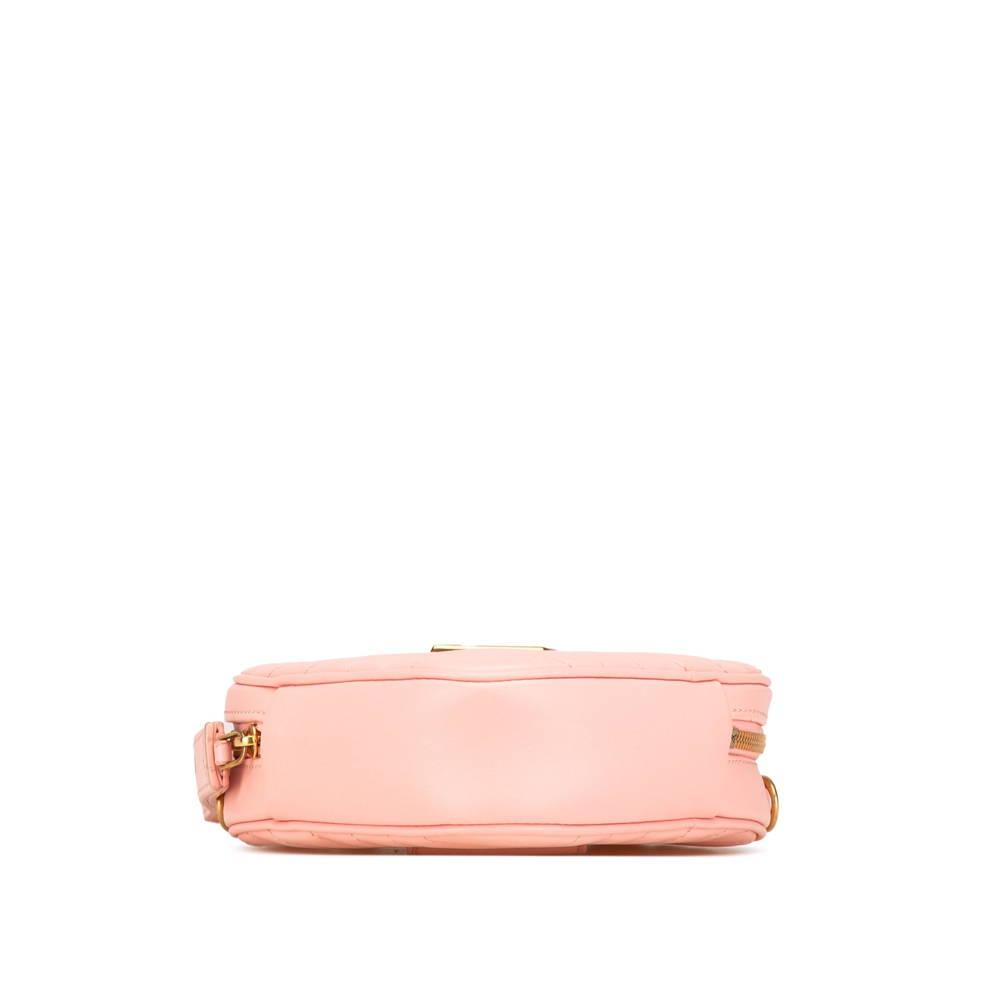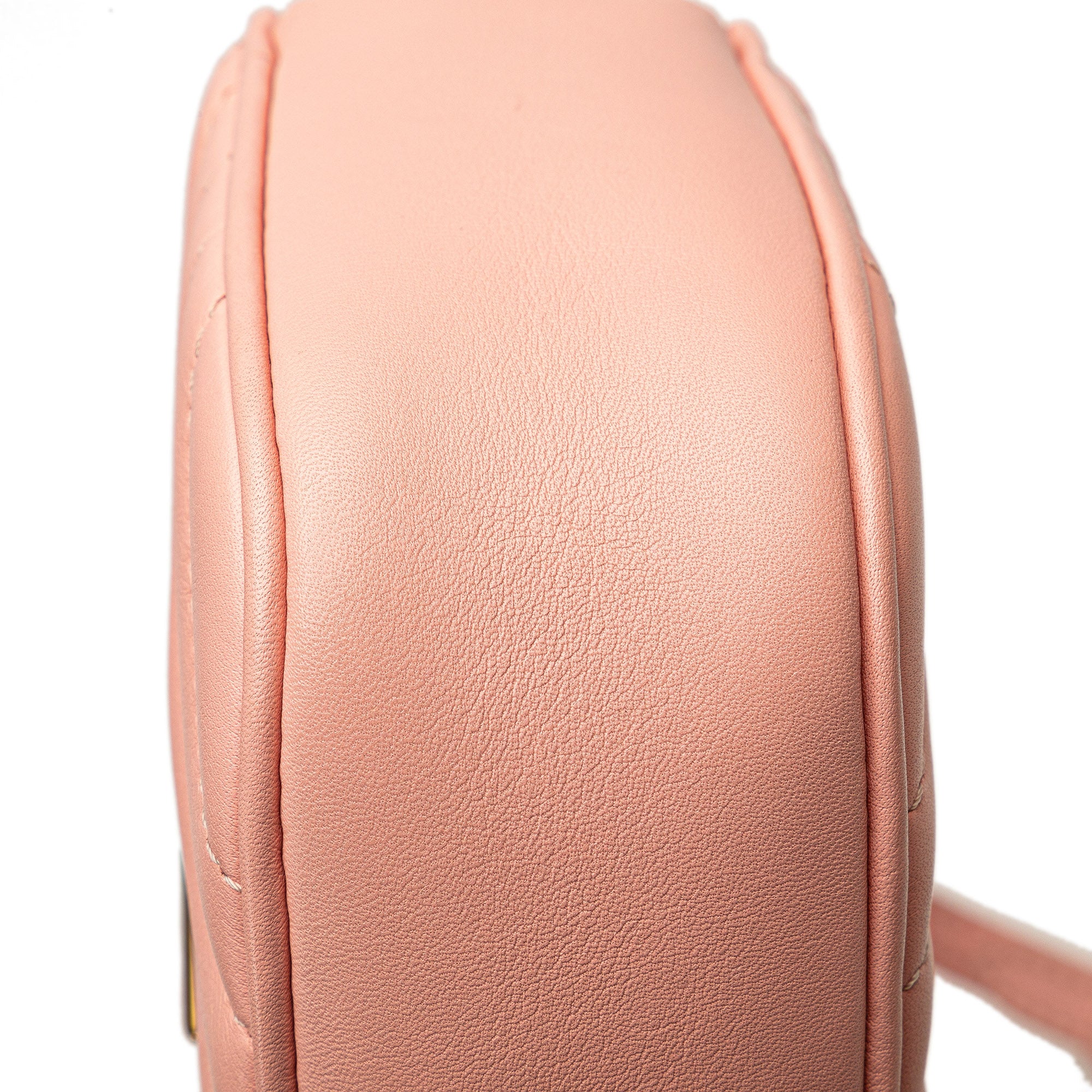 The New Wave Heart bag features a quilted leather body, a detachable flat leather strap, a top zip closure, and an interior slip pocket. Retail Price: 2570.00