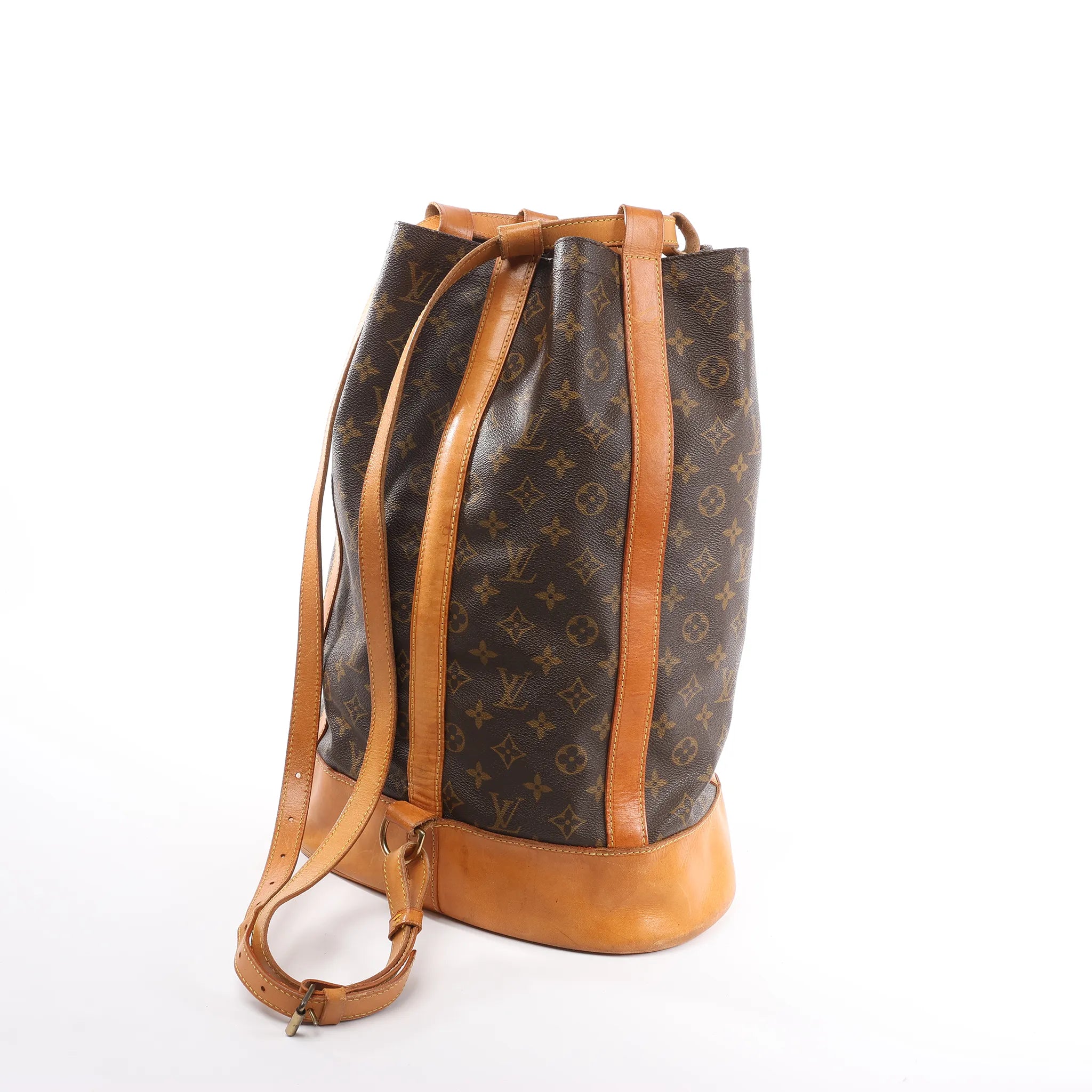 Brand: Louis Vuitton Model: RandonnéeSize: GMWidth: 32 cmHeight: 43 cmExterior Condition: Very goodInterior Condition: Very goodCondition Details: The outer canvas is clean and beautiful. The cowhide leather trim and strap has developed a dark honey patina with rubbings and water stains. The interior is in great condition, except some small stains. Top width is 40 cm. The date code: A21924.Colour: BrownInterior Colour: BrownHardware Colour: GoldMaterial: Leather, CanvasComes With: Pouch, luggage tag
