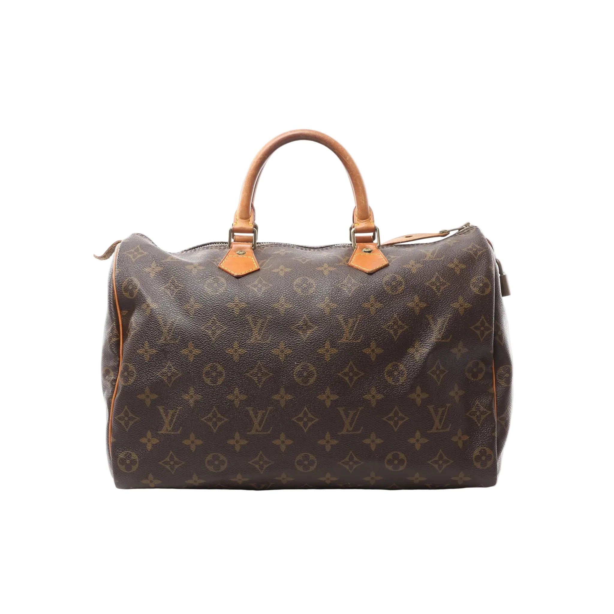 Louis Vuitton Speedy 35 handbag in brown Monogram canvas (M41524)—iconic zip-top satchel with vachetta leather handles and timeless LV style, offering extra room for everyday carry and travel-ready ease.