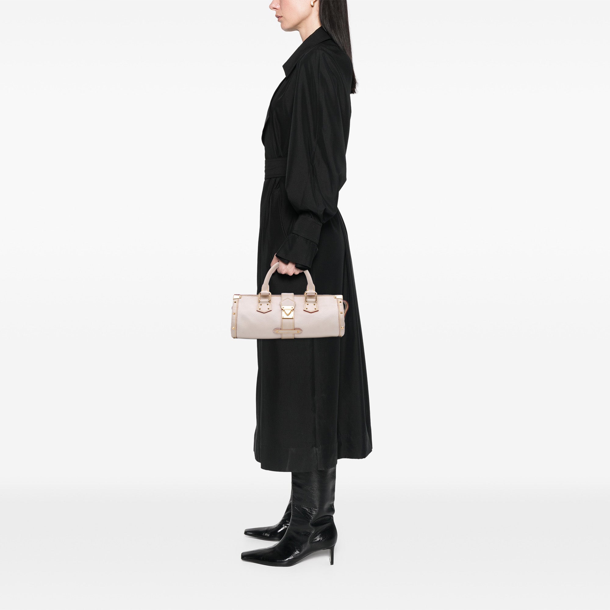 The L'Epanoui PM features a suhali leather body, rolled handles, double zip closure and flap tab with push lock closure, and an interior zip pocket. Retail Price: 3160.00