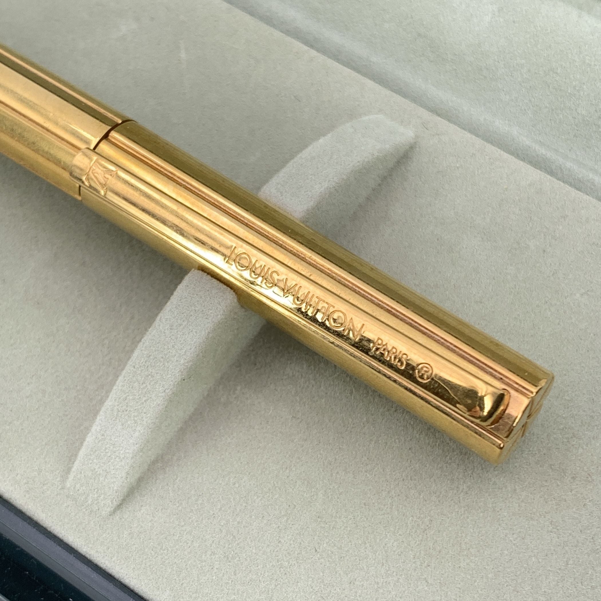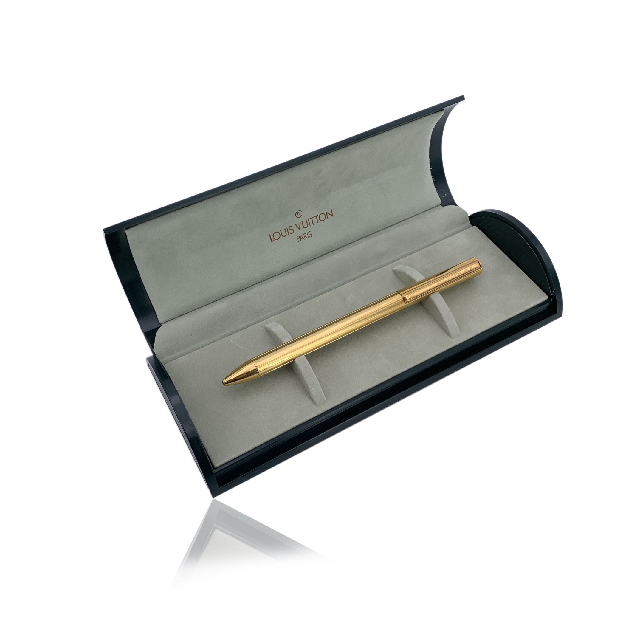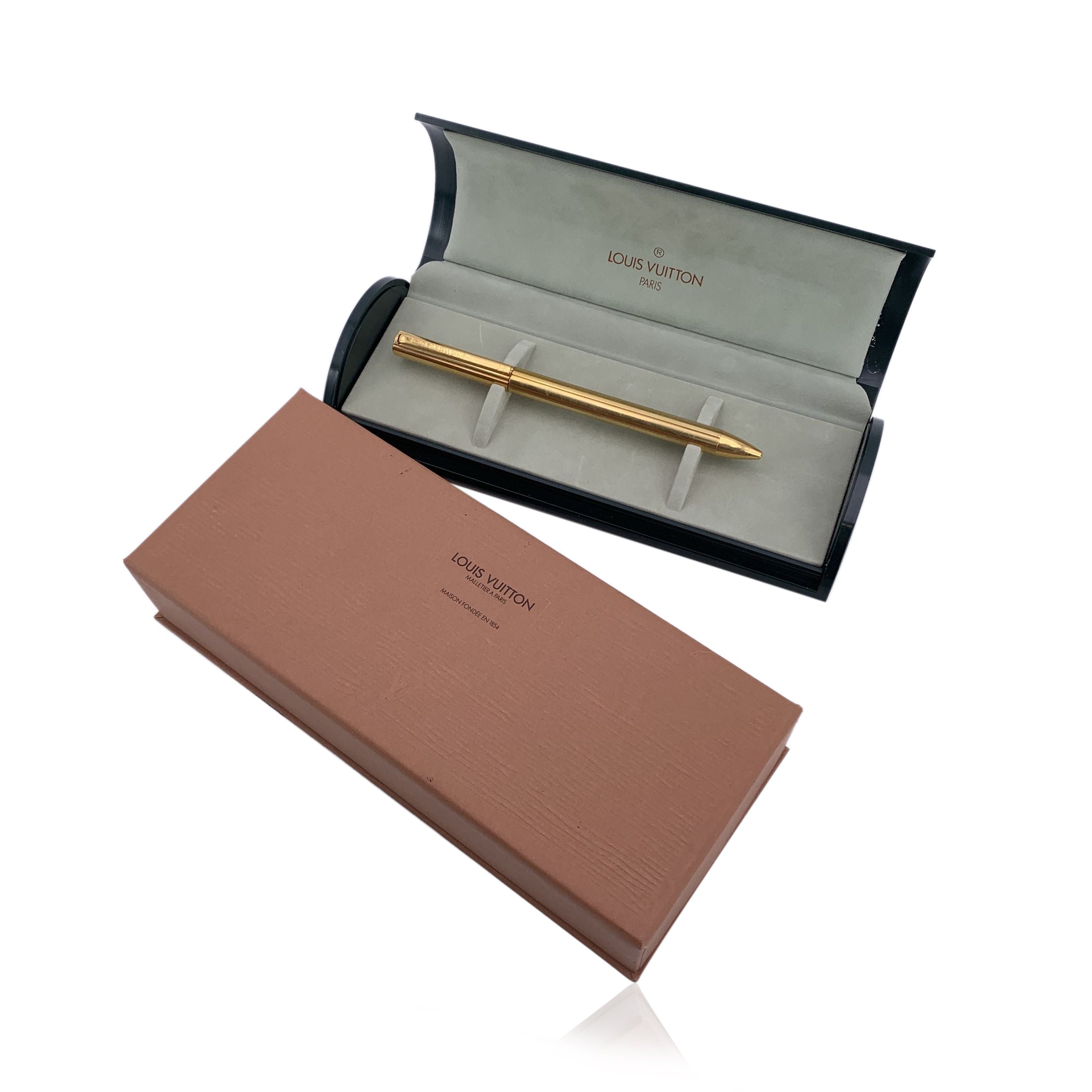 Add a Touch Of Sophistication To Your Writing With This Vintage Louis Vuitton Gold Metal Ballpoint Pen. A True Statement Of Style And Functionality, This Pen Is Crafted From Gold-tone Metal, Offering An Elegant Gleam That Commands Attention. The Sleek Design Is Complemented By The Signature Louis Vuitton Logo Subtly Embossed On The Pocket Clip-perfect For Flaunting Your Refined Taste. Whether Used For Signing Important Documents Or Simply As a Luxurious Accessory To Your Formal Ensemble, This Ballpoint Pen Elevates Any Occasion With Its Timeless Class. A Must-have For Collectors Or Anyone Seeking To Add a Dash Of Luxury To Their Everyday Essentials. Made In France. Lenght: 6 Inches - 15.2 Cm