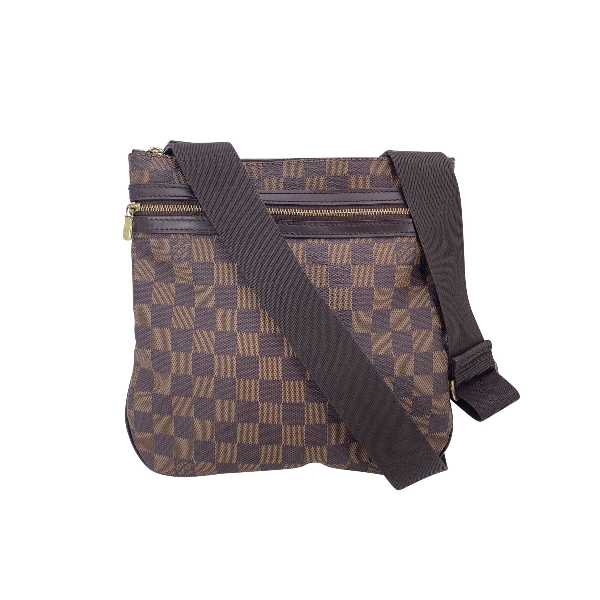 Step Into The World Of Louis Vuitton Luxury With The Iconic Pochette Bosphore Messenger Bag. Crafted In Brown Damier Ebene Canvas, This Piece Showcases The Perfect Blend Of Classic Elegance And Modern Practicality. The Brown Leather Trim Adds a Touch Of Refinement, While The Golden Brass Hardware Gleams With Understated Luxury. Designed For The Sophisticated Individual, The Pochette Bosphore Features a Convenient Zip Pocket On The Front, Ideal For Easy Access To Your Essentials. The Adjustable Canvas Shoulder Strap Ensures Comfort, Allowing You To Wear It As a Crossbody Or On The Shoulder, Making It Versatile For Both Day And Night. The Zip Closure On Top Secures Your Belongings With Ease, While The Interior, Lined In Soft Fabric, Offers Ample Space To Organize Your Must-haves. Inside, You'll Find The Embossed 'Louis Vuitton Paris - Made In France' Stamp, a Mark Of Authenticity That Reflects The Heritage Of This Storied Brand. Authenticity Serial Number Inside (Mi3048). Additionally, The Exterior Pocket Houses The Authenticity Serial Number, Ensuring Its Place As a Genuine Louis Vuitton Piece. The Pochette Bosphore Is More Than Just a Bag-it's a Testament To Louis Vuitton's Craftsmanship, Offering Both Functionality And Iconic Style. Whether You're Heading Out For a Casual Outing Or Need An Elegant Everyday Bag, This Beauty Stands Ready To Complement Your Every Move.