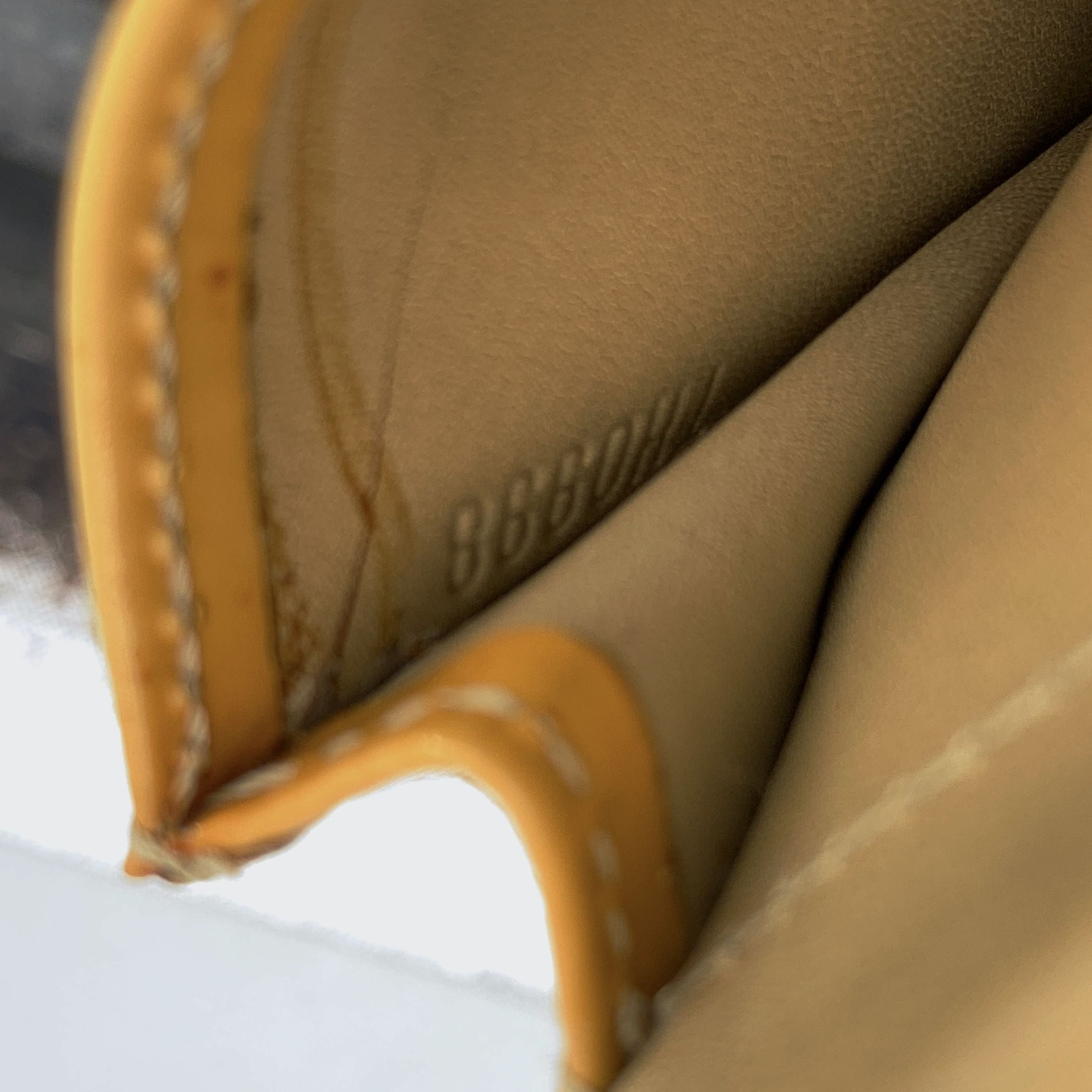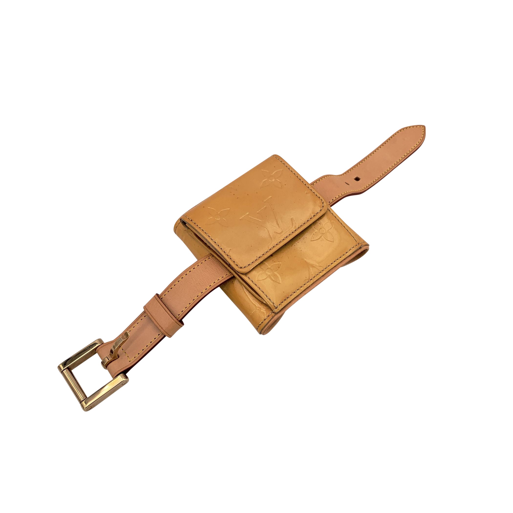 A Rare And Collectible Louis Vuitton Accessory, This Lafayette Street Coin Purse Bracelet Is Crafted In Beige Monogram-embossed Vernis Patent Leather, Showcasing The House's Signature Glossy Finish. It Features a Front Flap Pocket Perfect For Small Essentials And a Vachetta Cowhide Leather Wrist Strap With An Adjustable Buckle Closure, Allowing It To Be Worn As a Chic Mini Wristlet Or Statement Bracelet. Material: Monogram Vernis Patent Leather With Vachetta Cowhide Strap Color: Beige Features: Front Flap Coin Pocket, Adjustable Wrist Strap Hardware: Gold-tone Metal Origin: Made In France A Playful Yet Refined Piece That Embodies Louis Vuitton's Creativity And Craftsmanship - Perfect For Adding a Touch Of Parisian Luxury To Your Look.