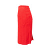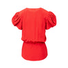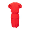 This set by Mimmina features a red skirt and blouse with black polka dots, shoulder pads, and pleated sleeves. A beautifully tailored fit that elevates the figure.