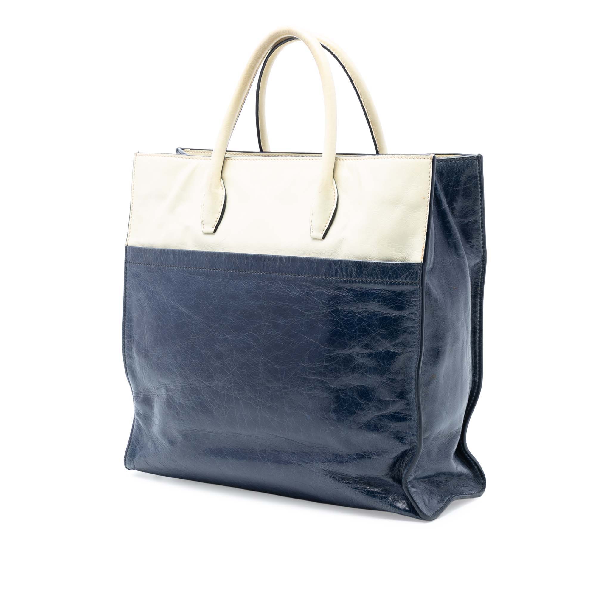 This satchel features a goatskin leather body, rolled leather handles, a detachable flat leather strap, an open top with magnetic closure, and interior zip and slip pockets. Retail Price: 840.00