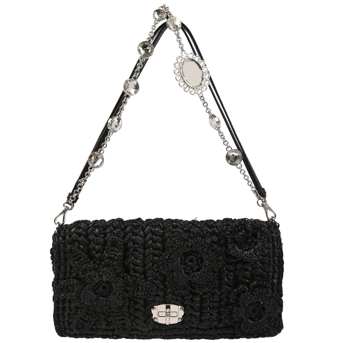 Miu Miu Crystal Clutch Crochet Raffia