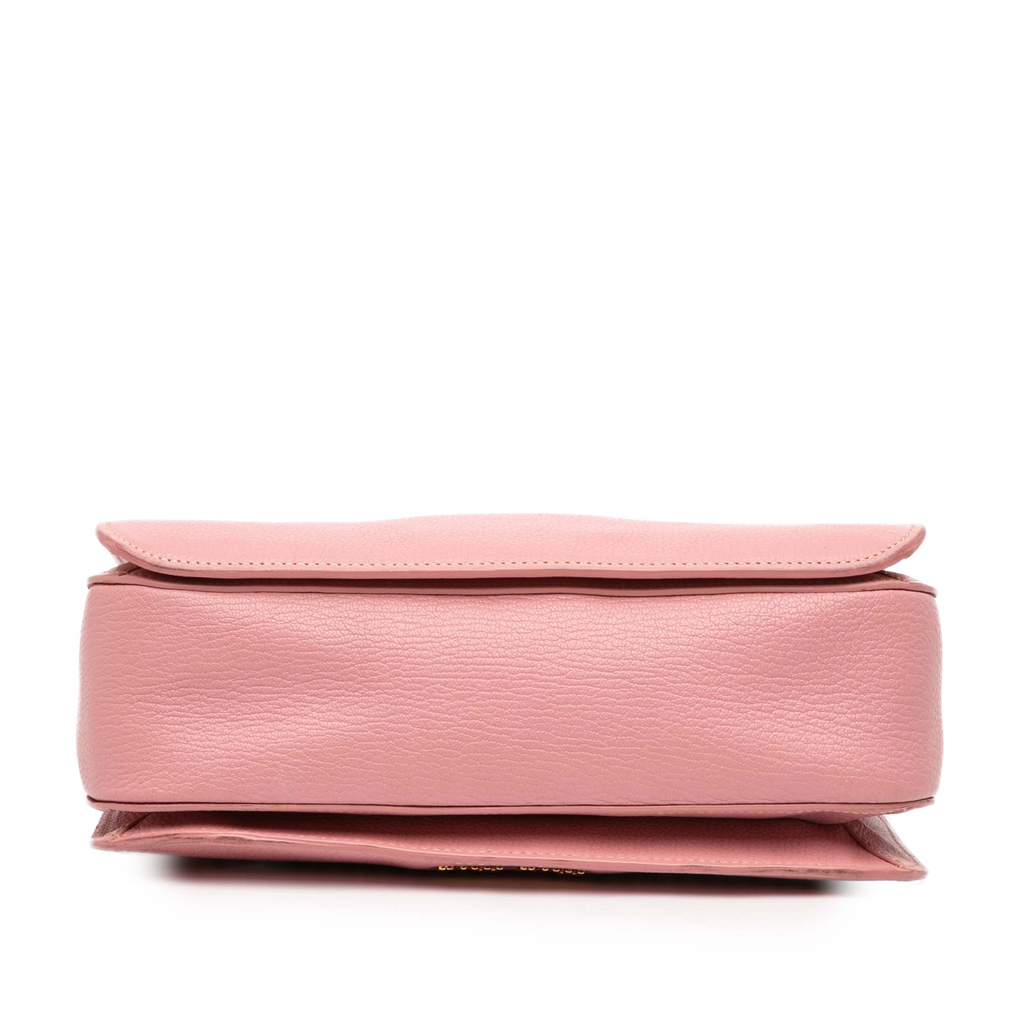This satchel features a goatskin body, rolled leather handles, a detachable flat strap, a top strap with S-lock closure, and interior zip and slip pockets. Retail Price: 1695.00