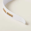 White rigid plexiglass headband. miu miu logo in black and gold metal. very good condition. sold with miu miu dustbag