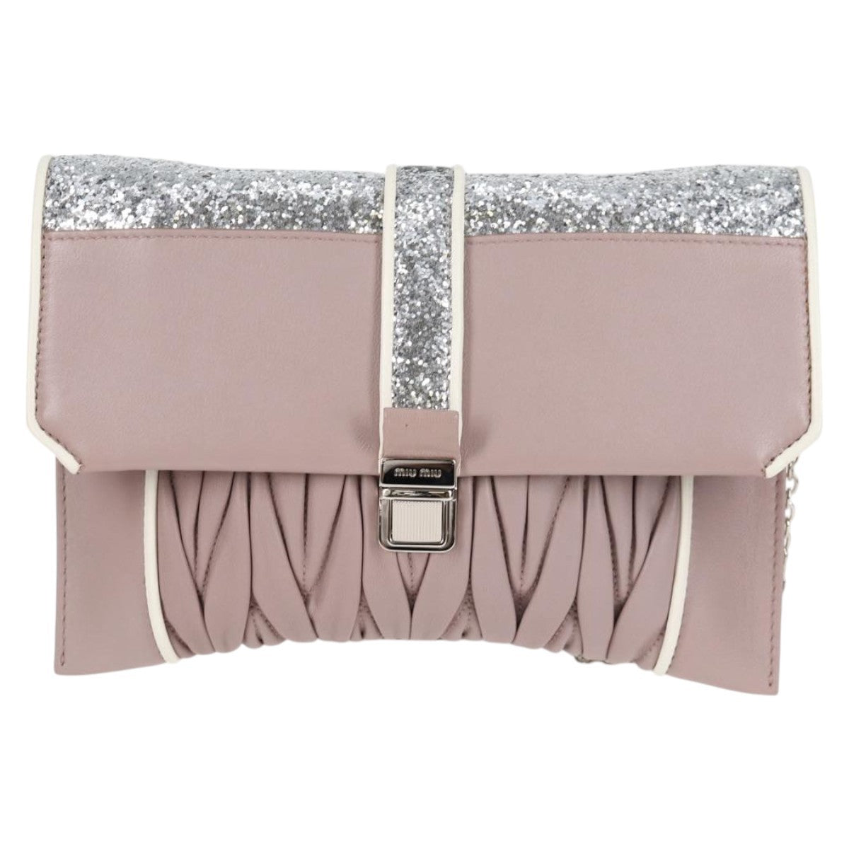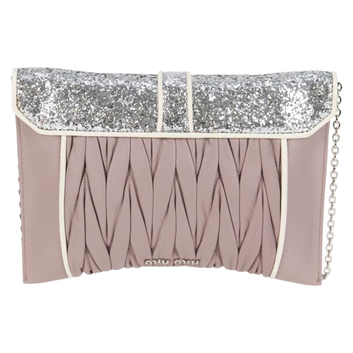 Miu Miu Madras Chain Clutch Matelasse Leather with Glitter
