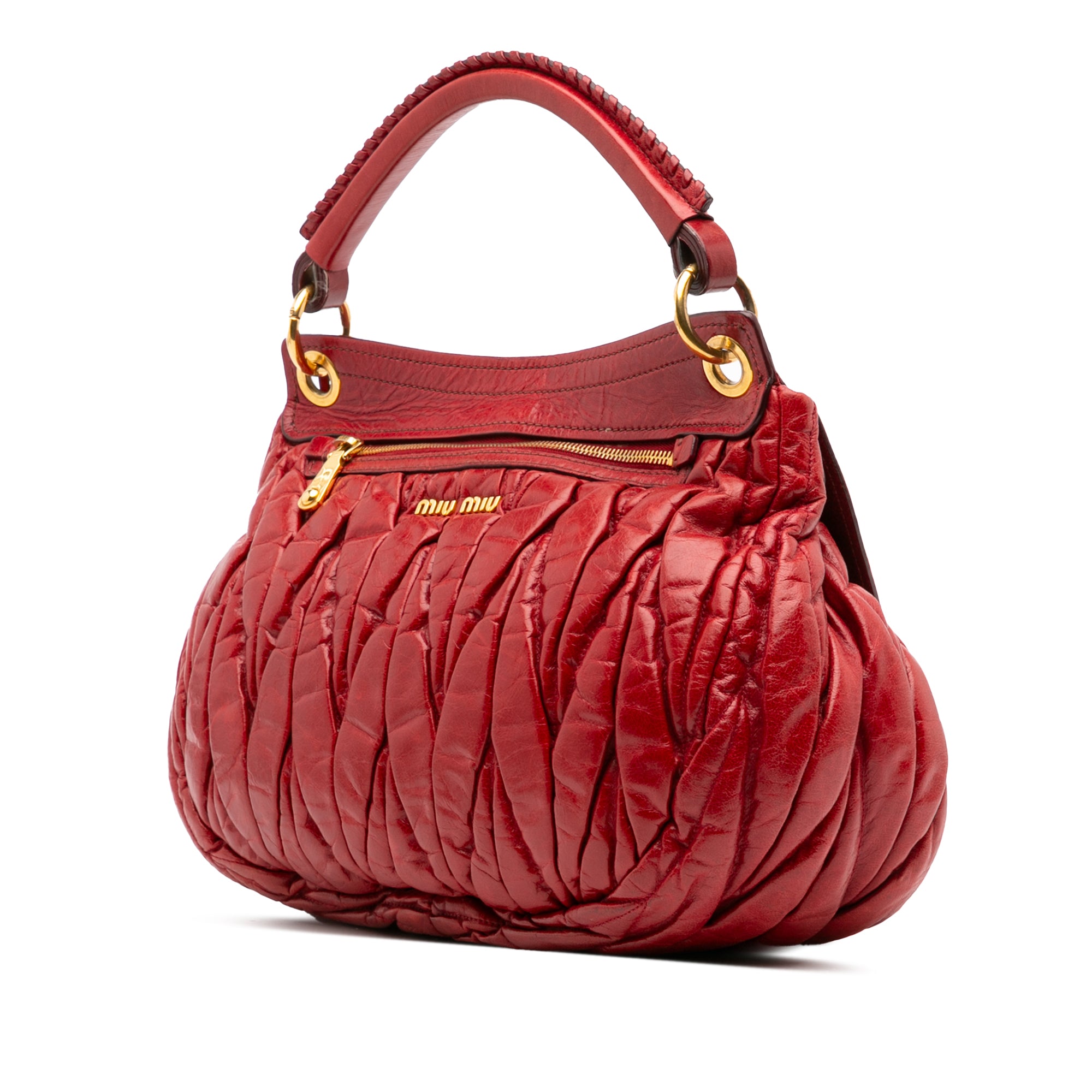 The Coffer features a pleated nappa leather body, a braided leather handle, a detachable flat leather strap, a front flap with push lock closure, an exterior back zip pocket, and interior zip and slip pockets. Retail Price: 2060.00