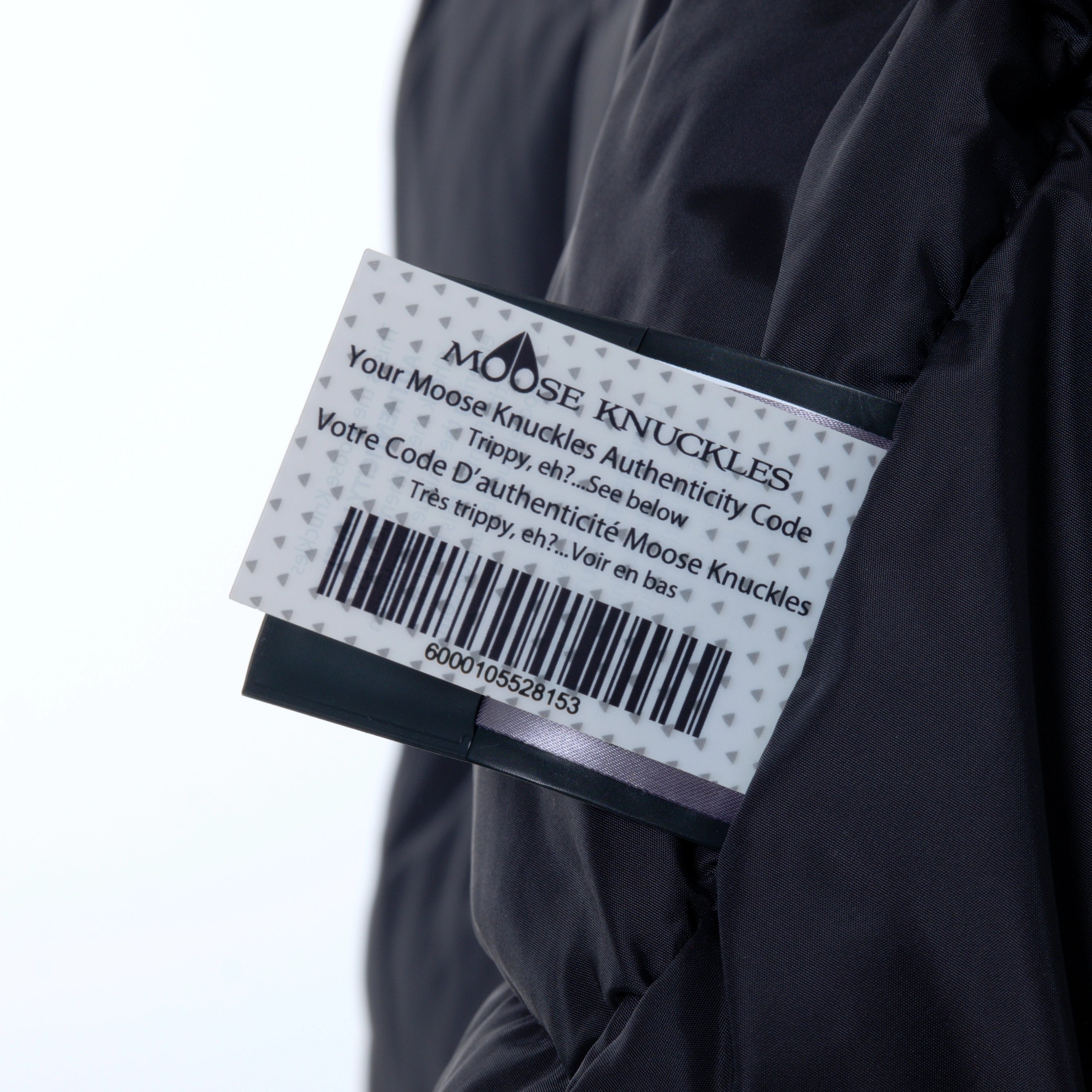 The jacket comes with the original Moose Knuckles authenticity code.