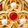 Step up your accessory game with this vintage find: the Chanel Necklace With Medallion from the 90s. Made with gold plating, a chain-link design, and a gothic style medallion featuring a red gemstone surrounded by pearls, this necklace will add a touch of retro flair to any outfit.