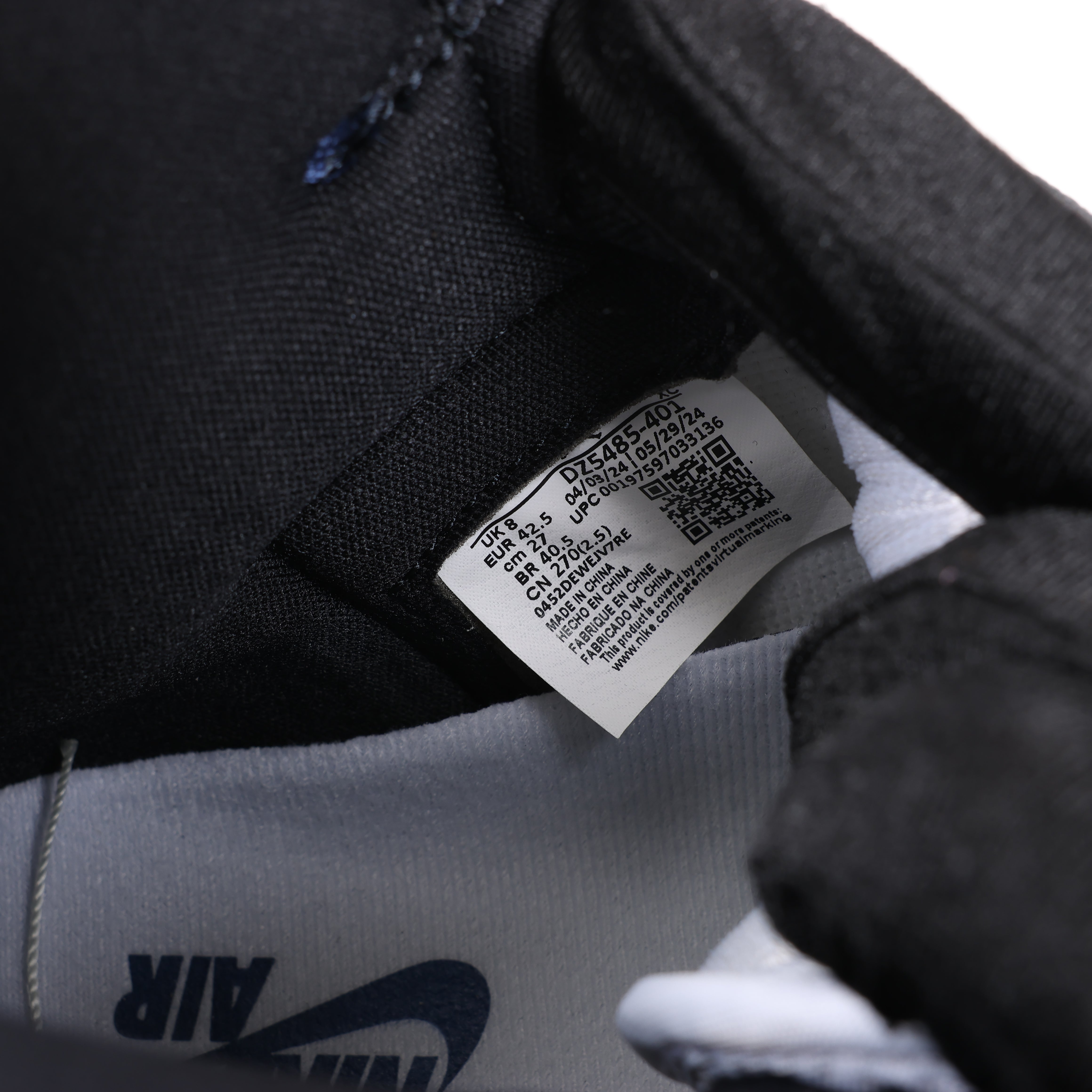 The Nike Air Jordan High-Top Sneakers in White and Navy (DZ5485-401) offer a bold, classic look with premium leather construction. Featuring the iconic Air Jordan design and high-top silhouette, they provide both style and support for everyday wear or athletic activity.