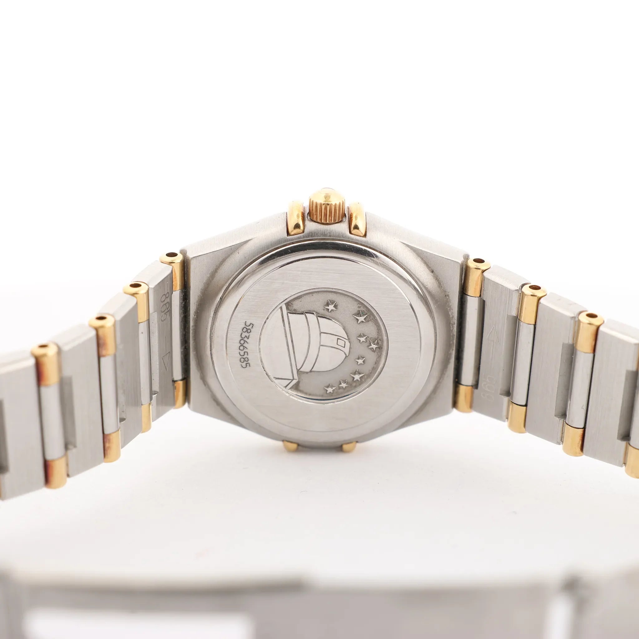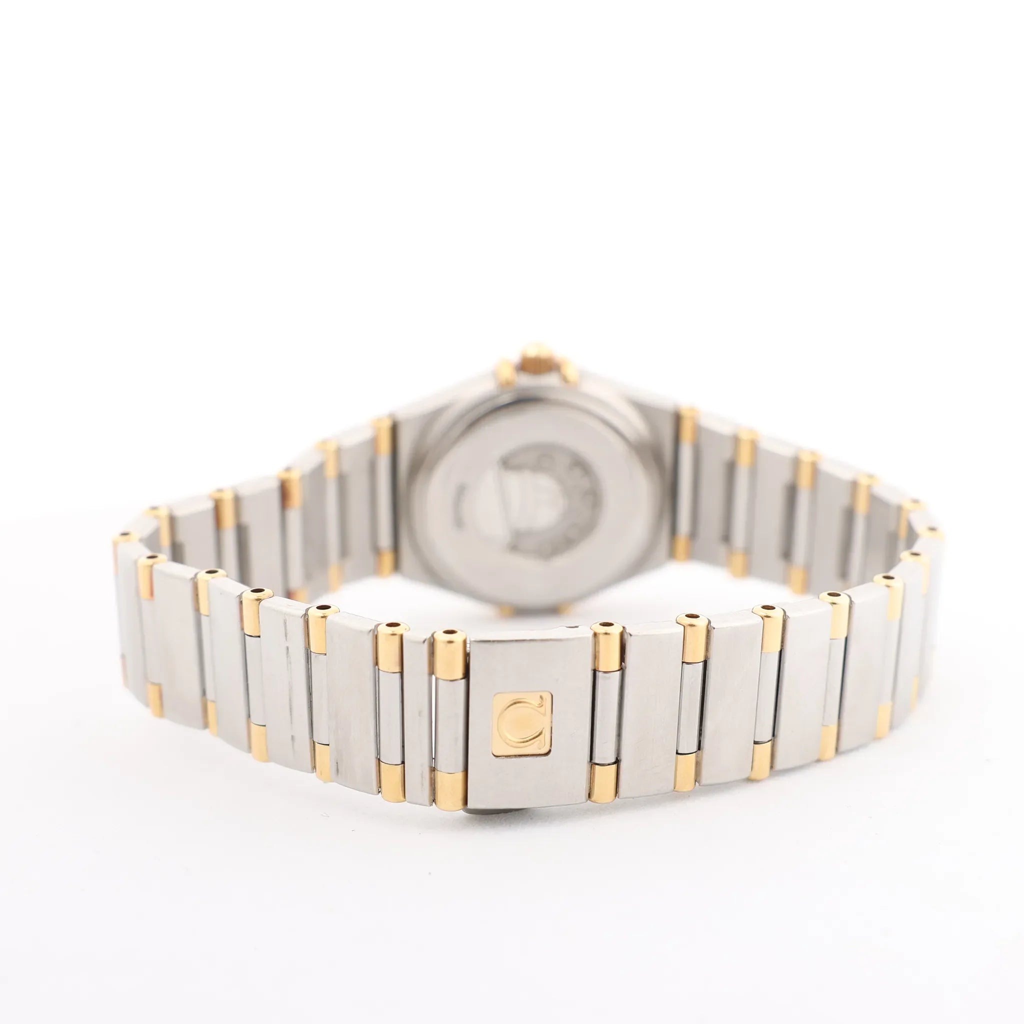 The Omega Constellation 1362.30 58366585 features a classic beige dial, Roman numeral bezel, and a stainless steel and gold-toned bracelet—precision meets timeless elegance.